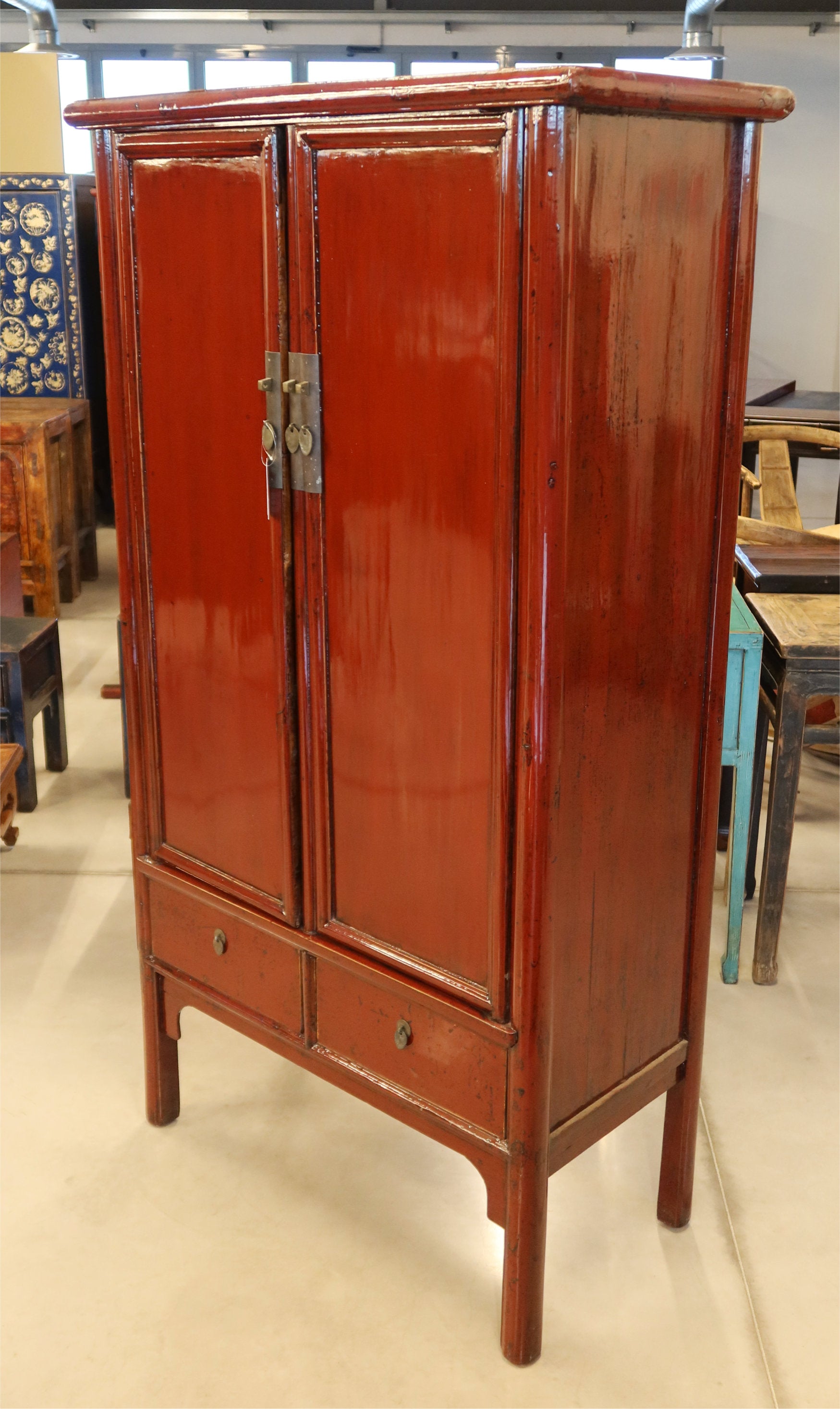 ARMADIO CINESE A TRAPEZIO IN LACCA BORDEAUX