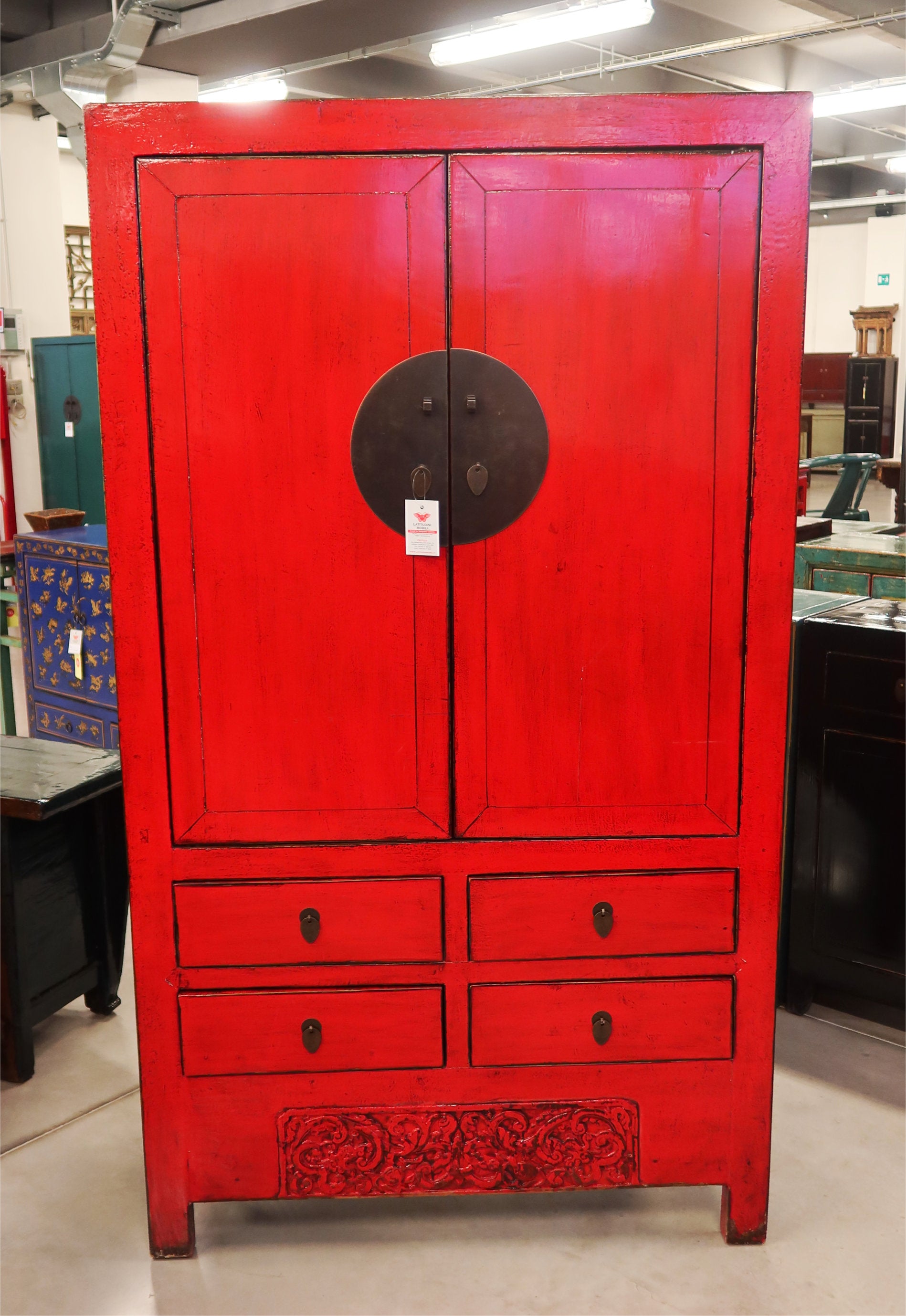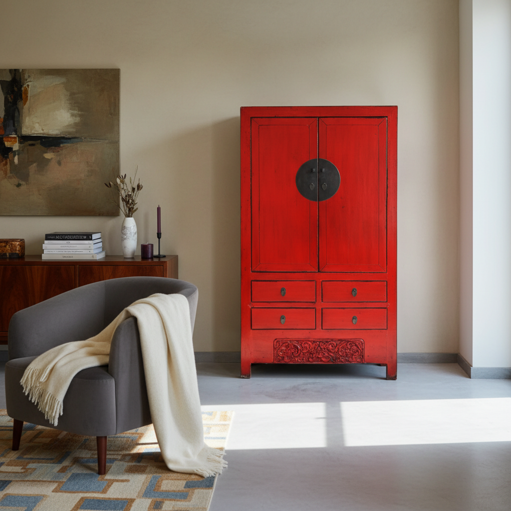 ARMADIO CINESE DELLO SHANDONG IN LACCA ROSSA