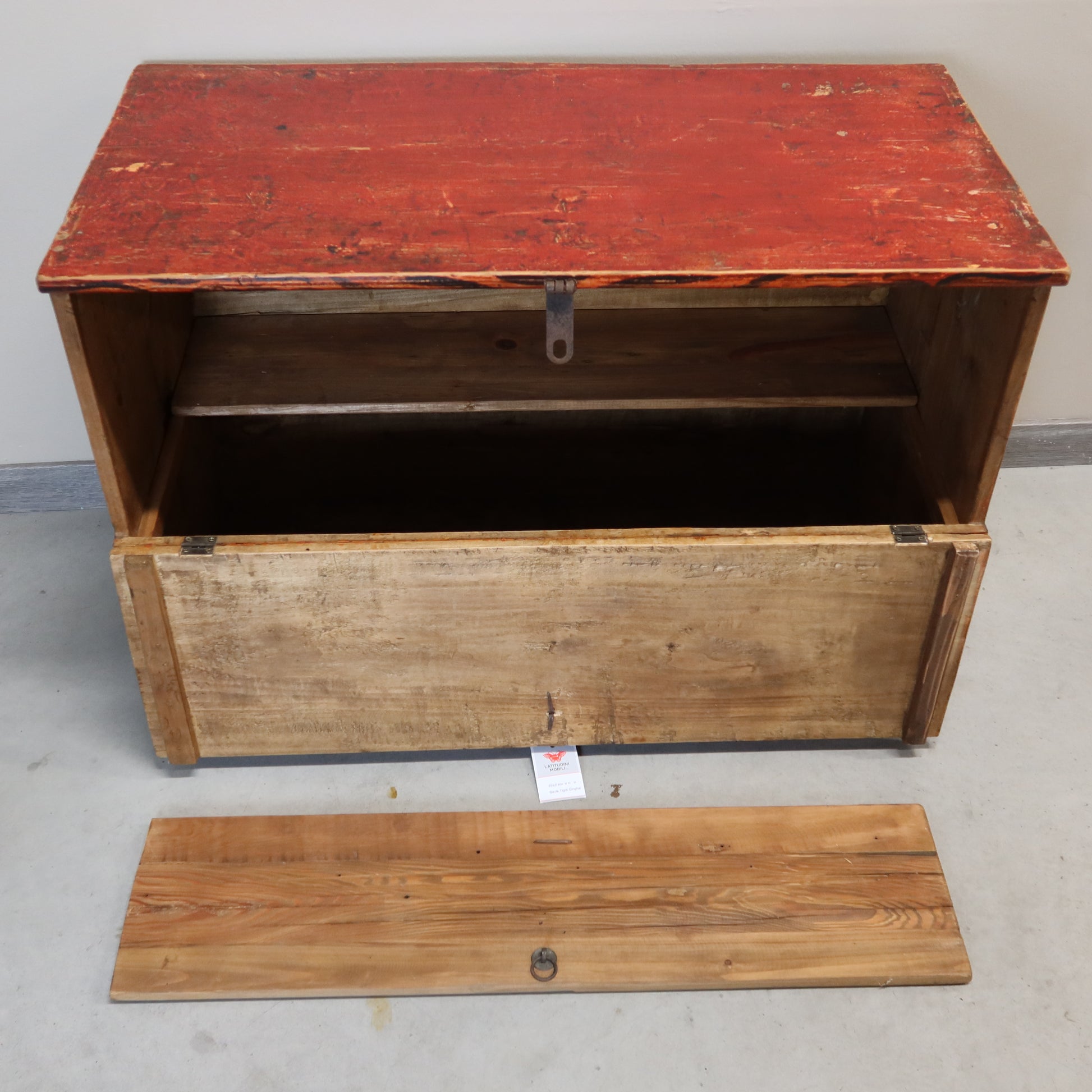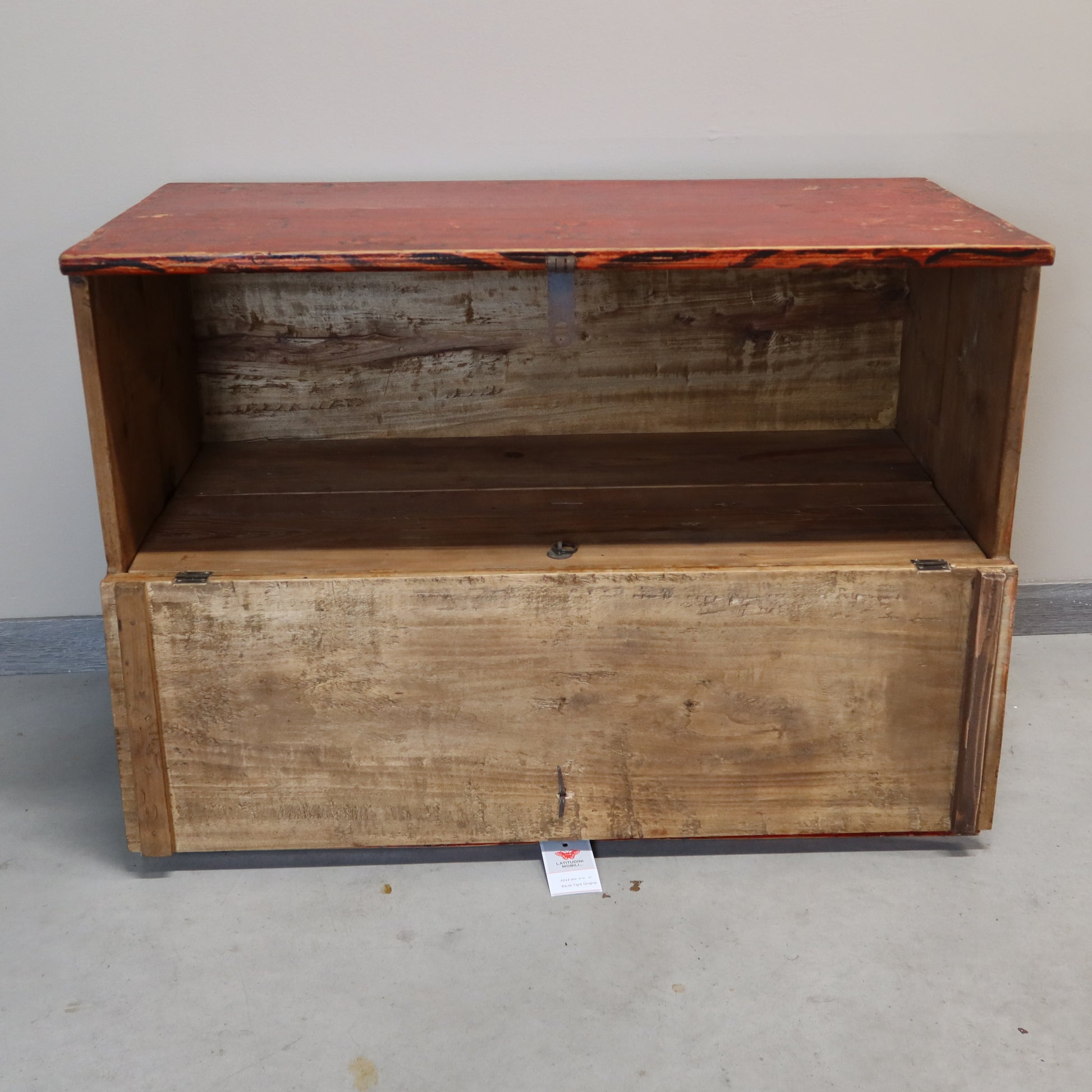 Bellissimo baule in lacca policroma decorata con raffigurazione della tigre. Apertura frontale di una sola metà dell'altezza. L'interno ha un ripiano rimovibile diviso in due per sfruttare appieno la parte inferiore e in generale tutta l'altezza qualora si volesse togliere il doppio ripiano.