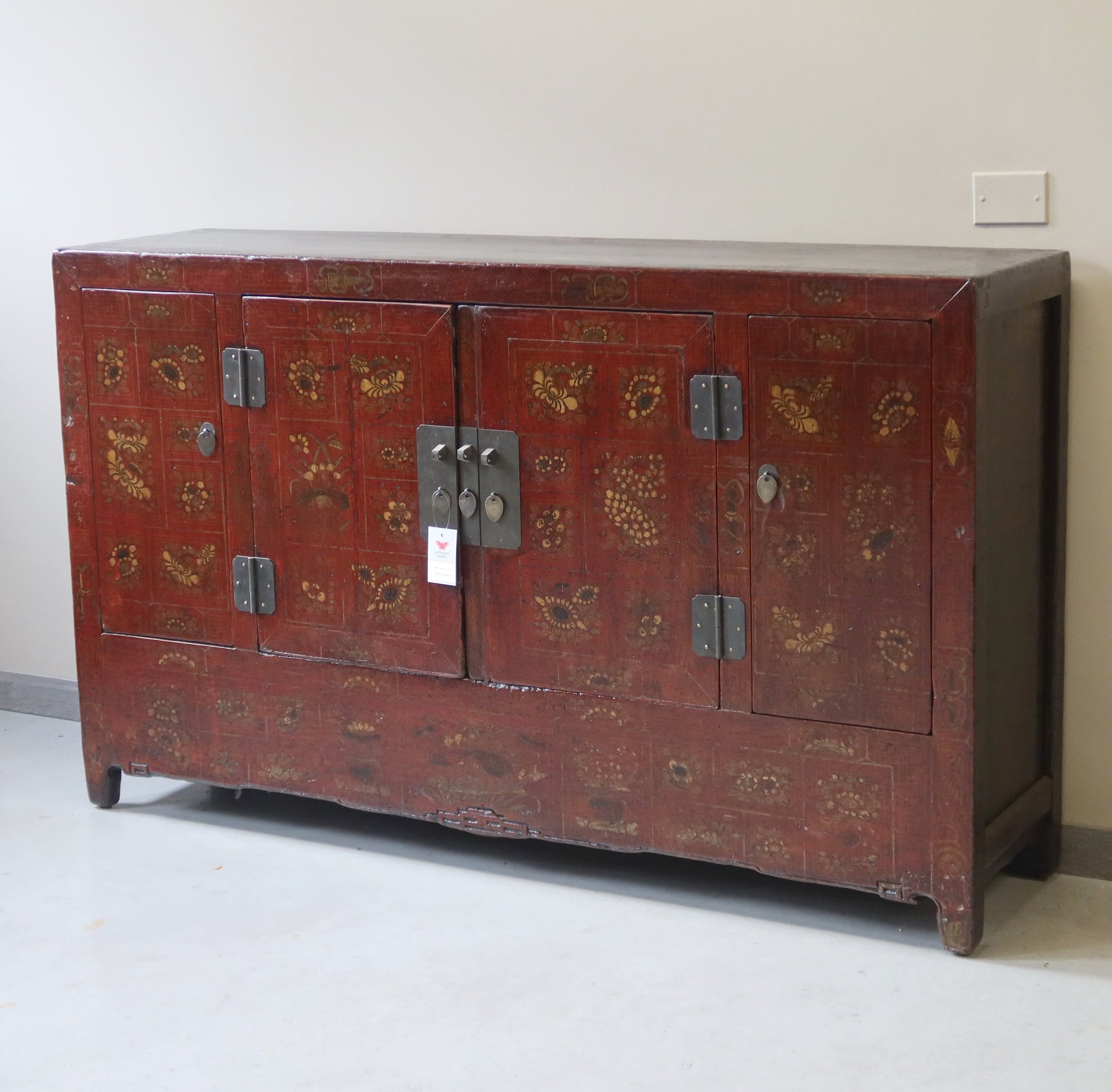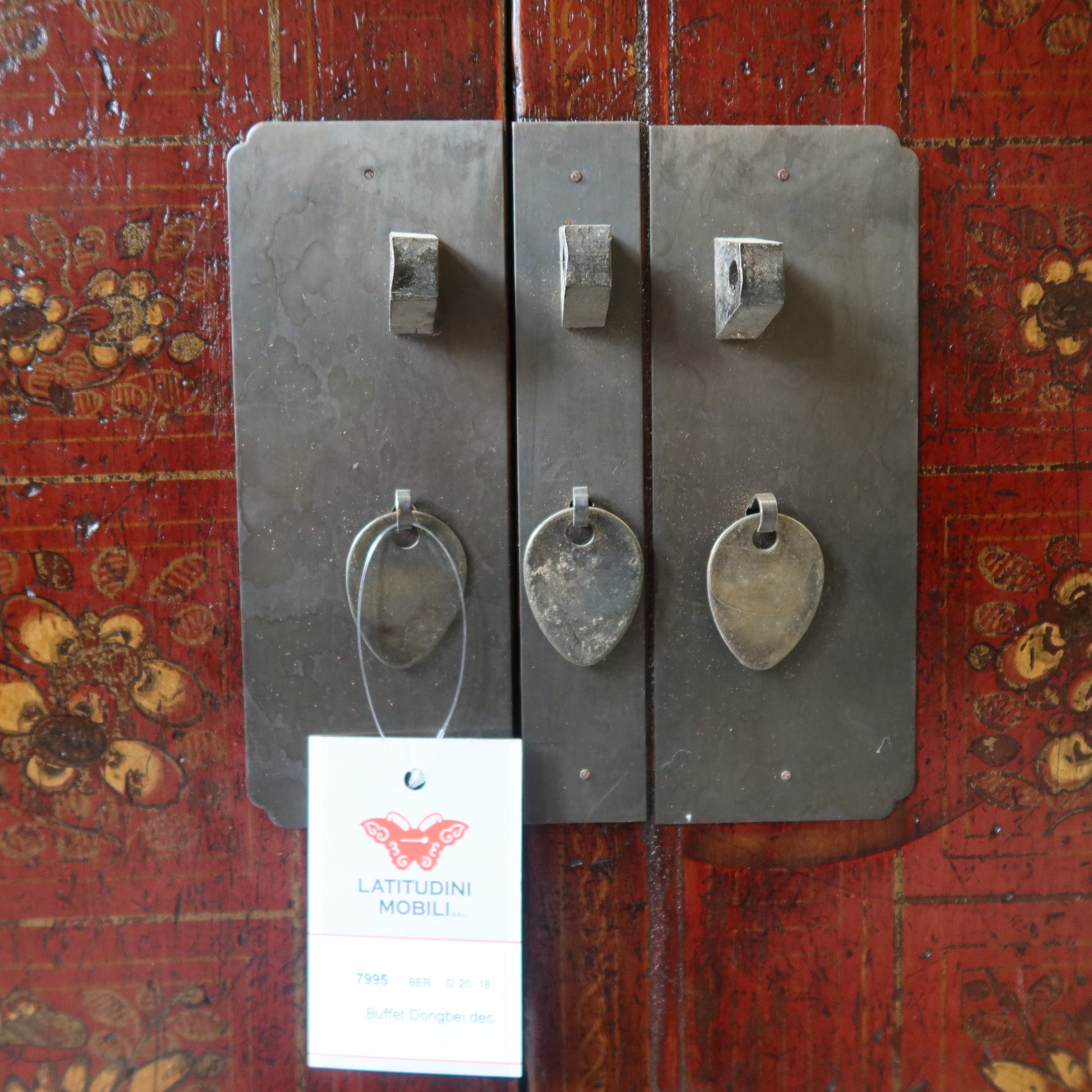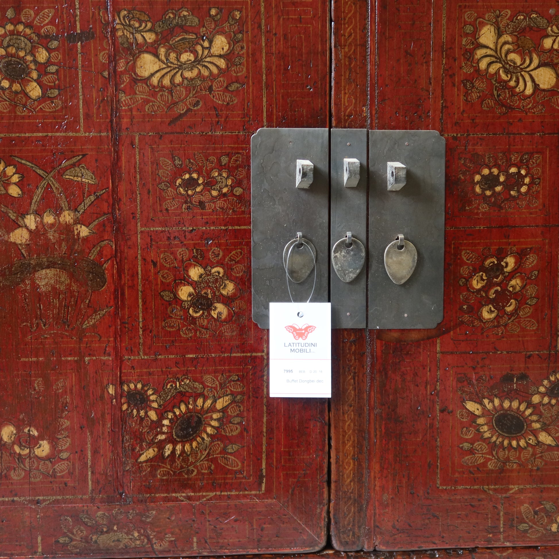 Particolare credenza buffet dal fronte ad apertura a 4 ante. Le tonalità del decoro del fronte rendono questa credenza molto originale. Provenienza provincia di Dongbei.