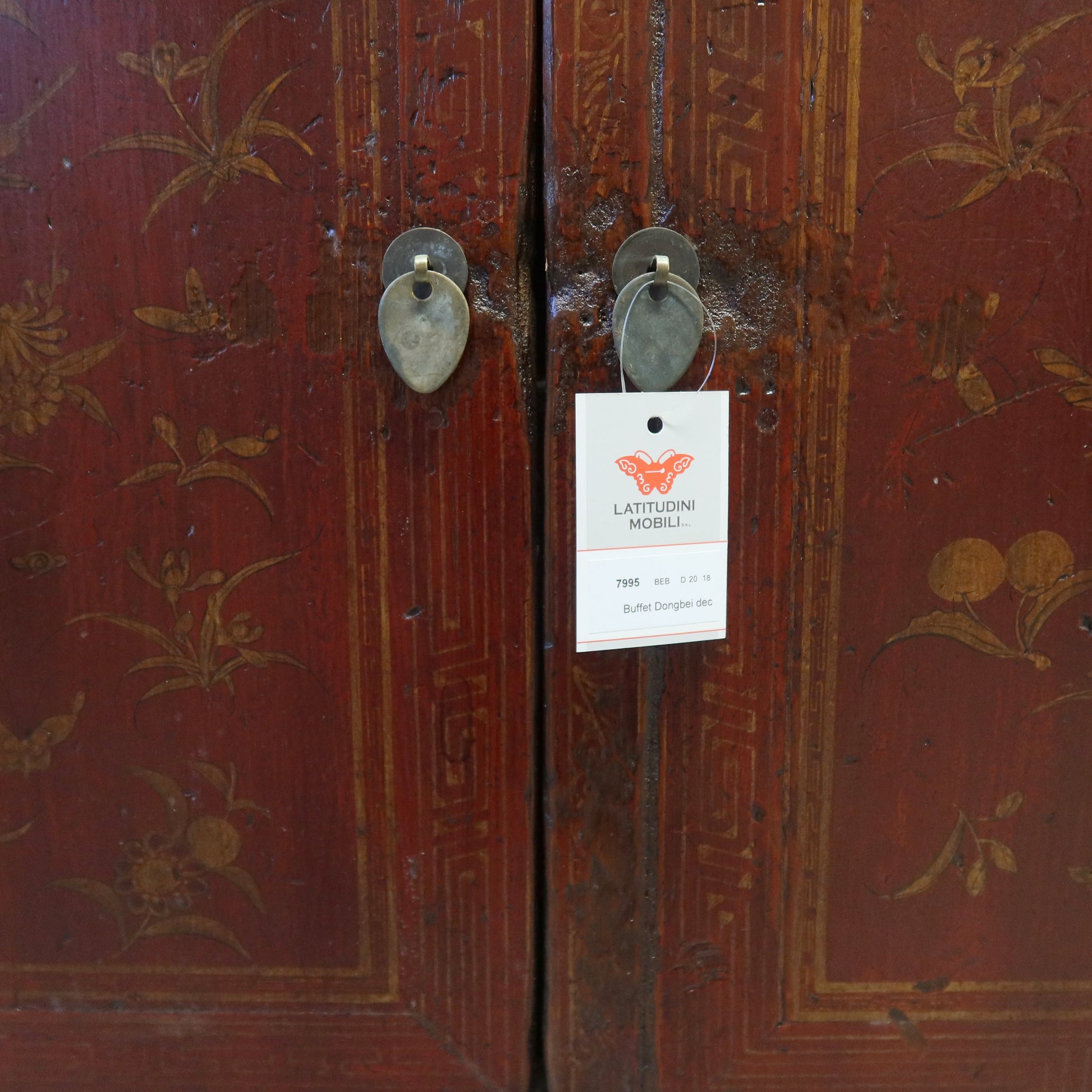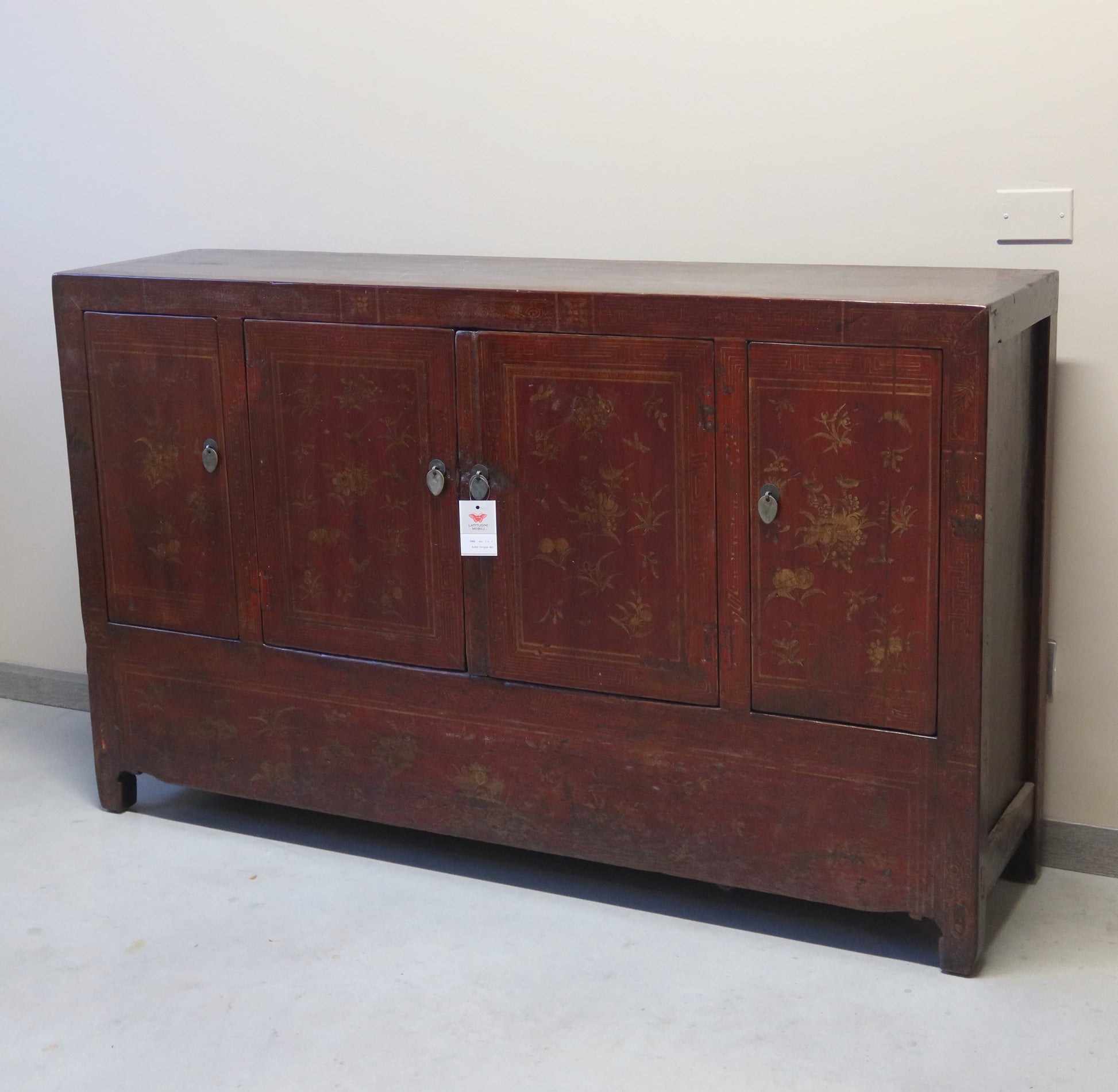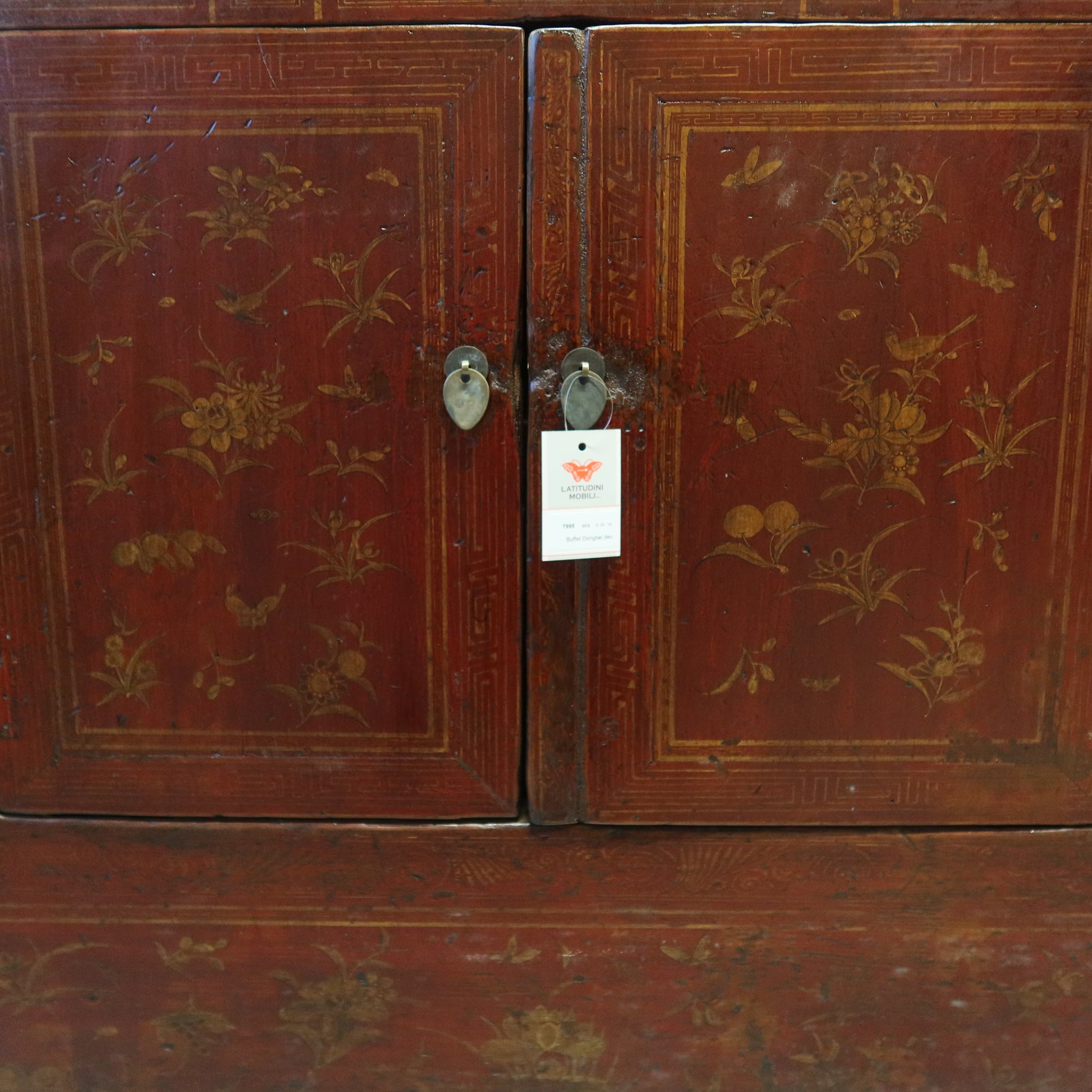 Particolare credenza buffet dal fronte ad apertura a 4 ante. Le tonalità del decoro del fronte rendono questa credenza molto originale. Provenienza provincia di Dongbei.