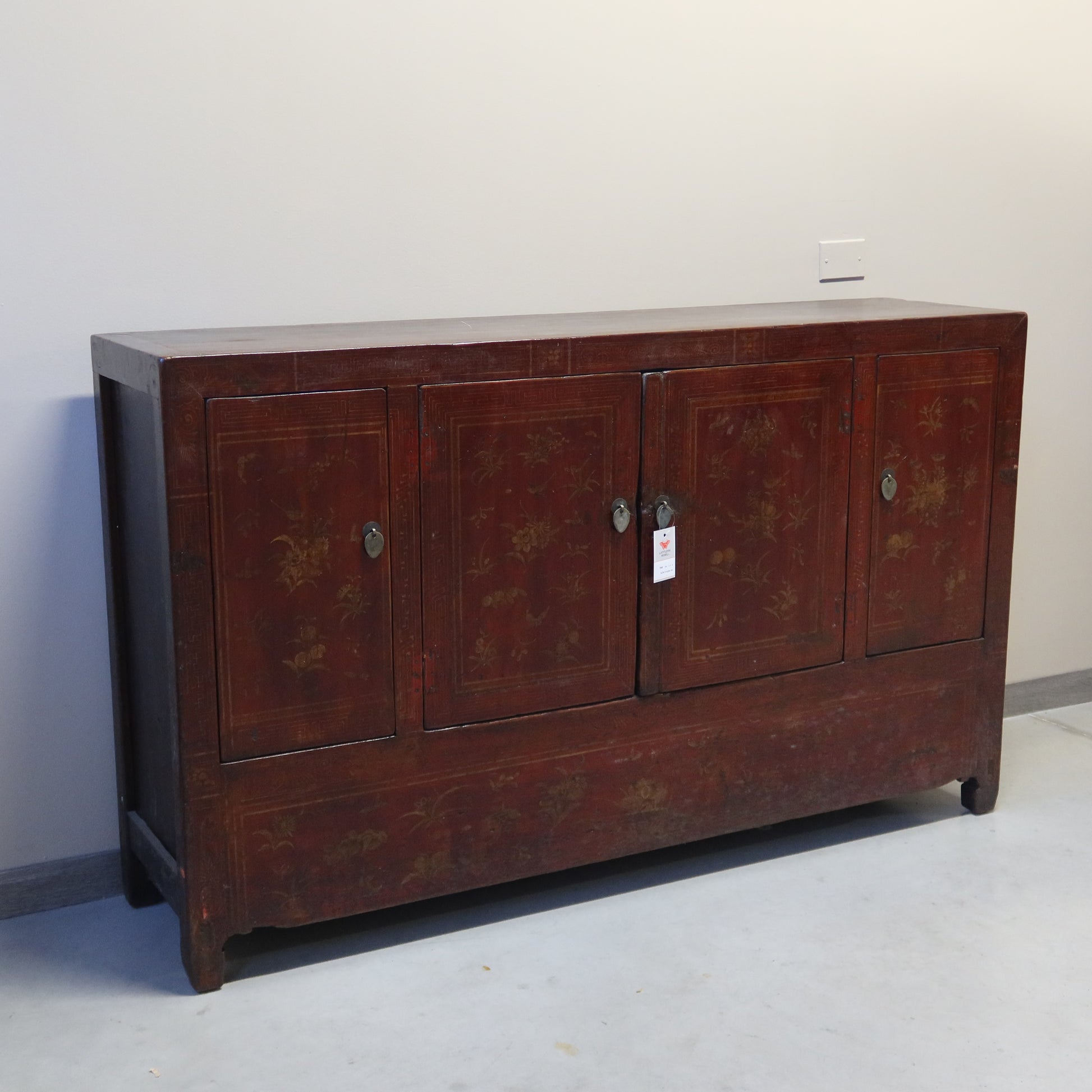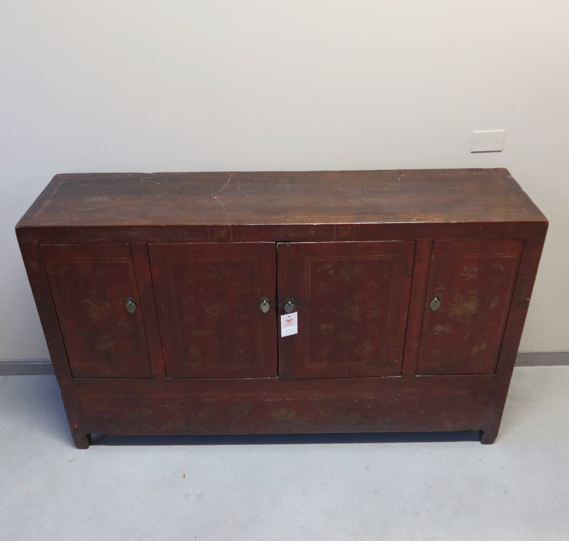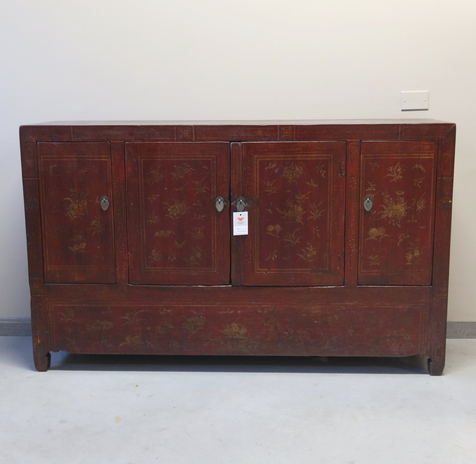 Particolare credenza buffet dal fronte ad apertura a 4 ante. Le tonalità del decoro del fronte rendono questa credenza molto originale. Provenienza provincia di Dongbei.