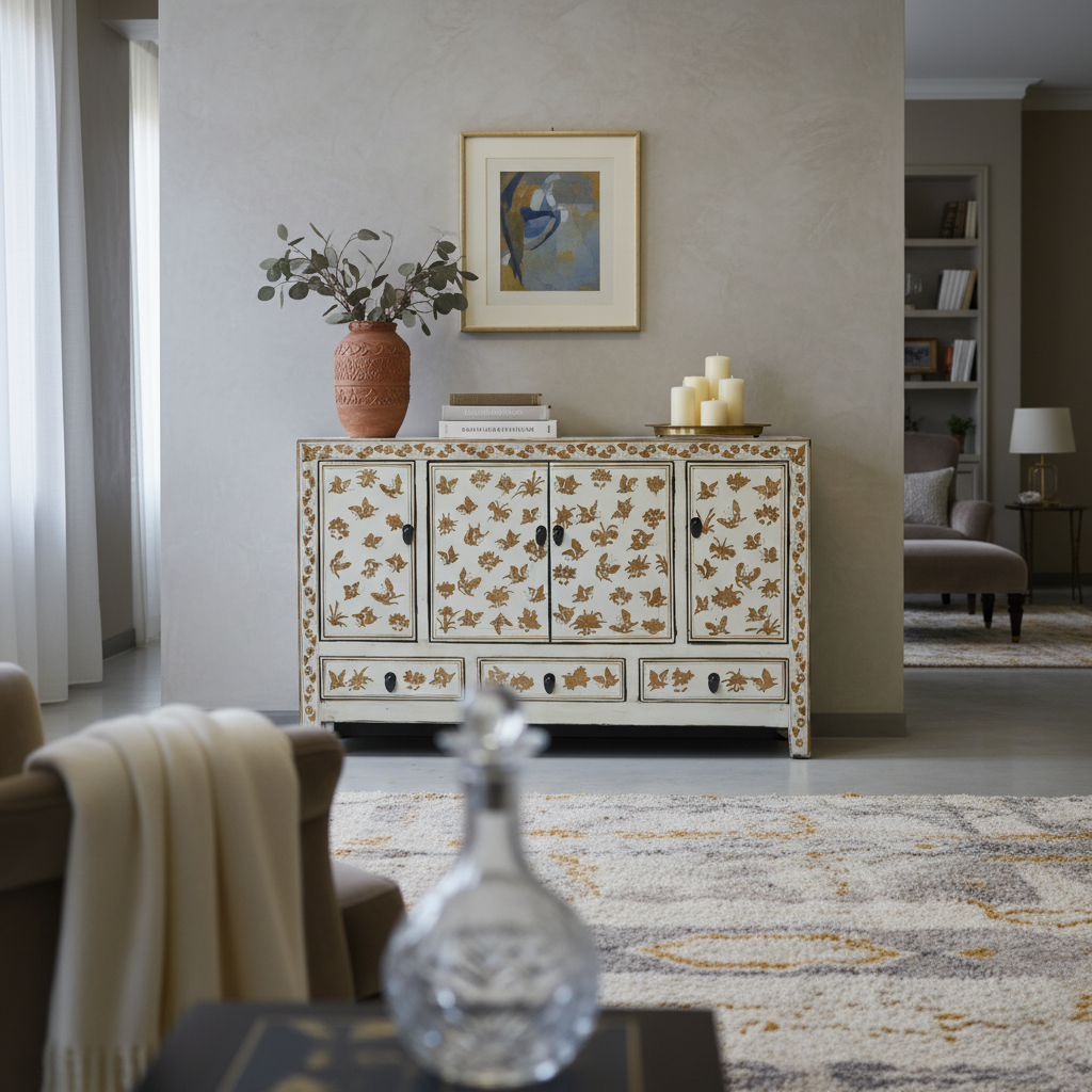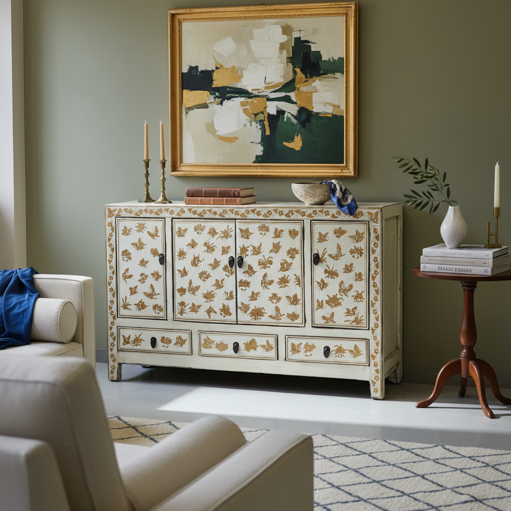 BUFFET SHANXI LACCA BIANCA DECORATA