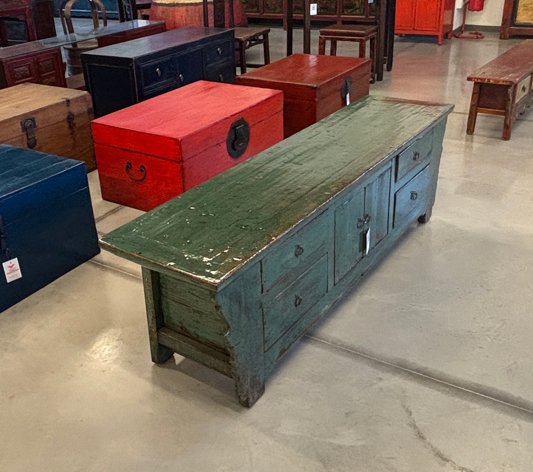 Bassa cassapanca in lacca dalla forma ad altare: rigorosa e fantasiosa al tempo stesso questa cassapanca etnica arreda con la sua presenza qualsiasi ambiente.