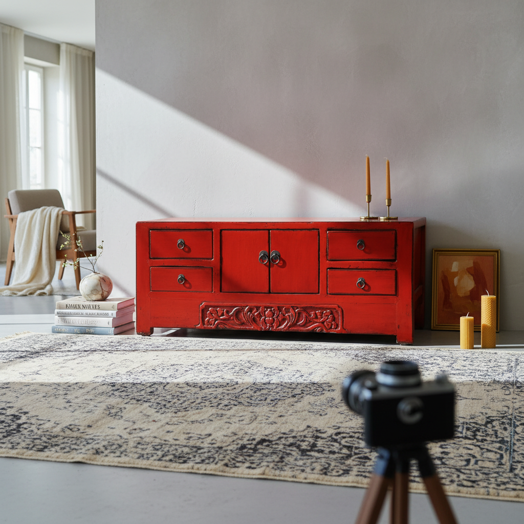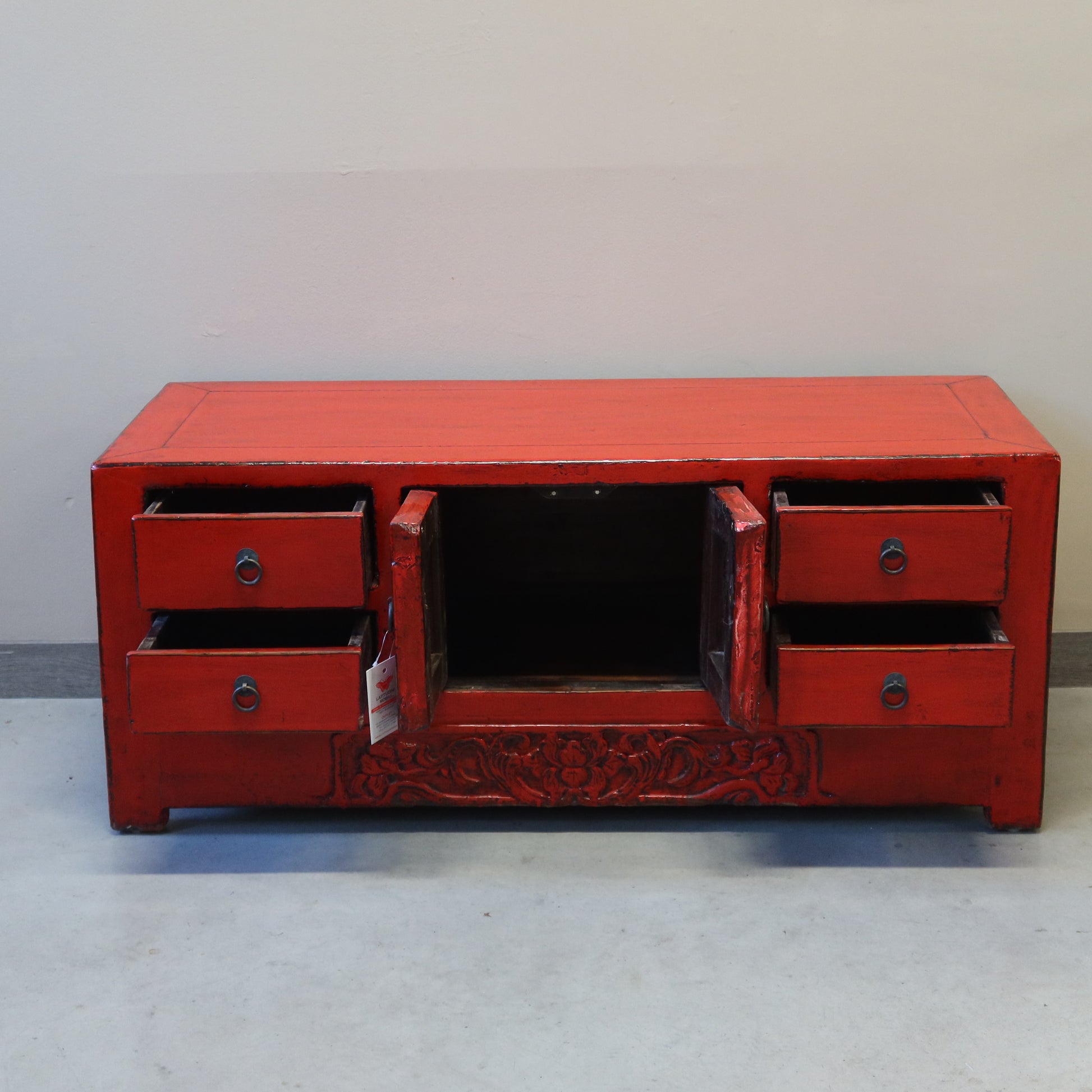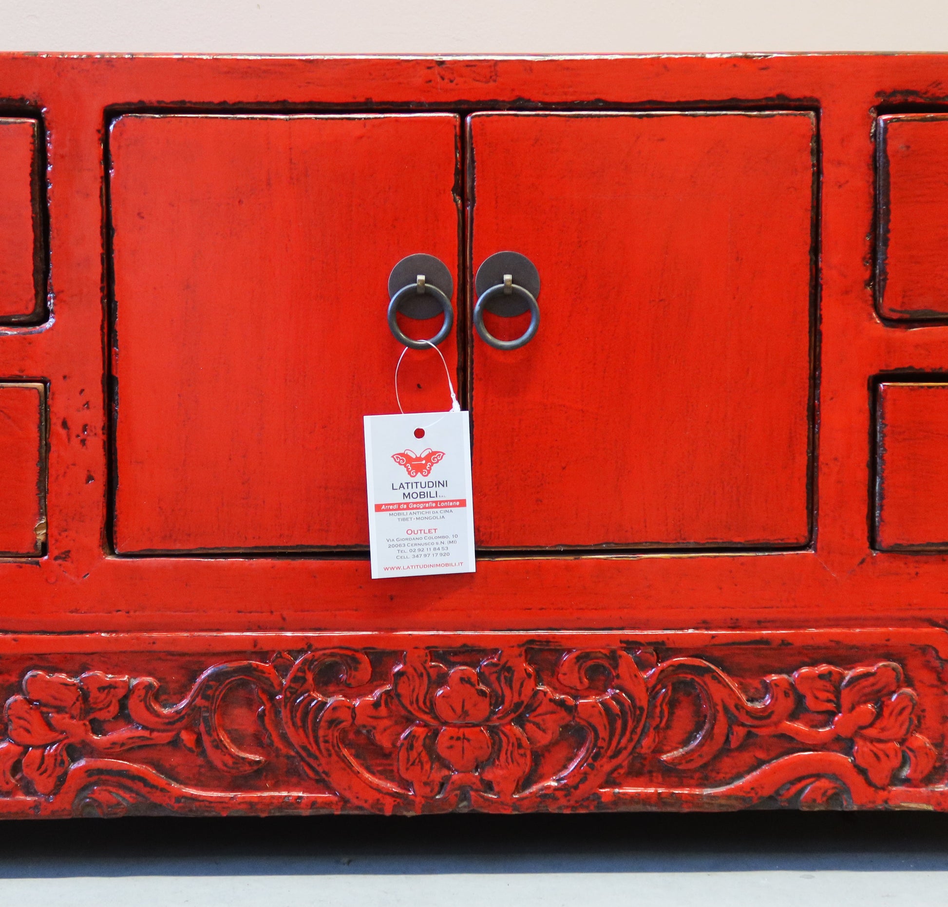 Questa cassapanchina cinese porta nella vostra casa un tocco di eleganza per chi ama i colori. La rigorosa struttura, la successione simmetrica di antine e cassetti, la rendono un mobile etnico dalle caratteristiche assolutamente uniche.