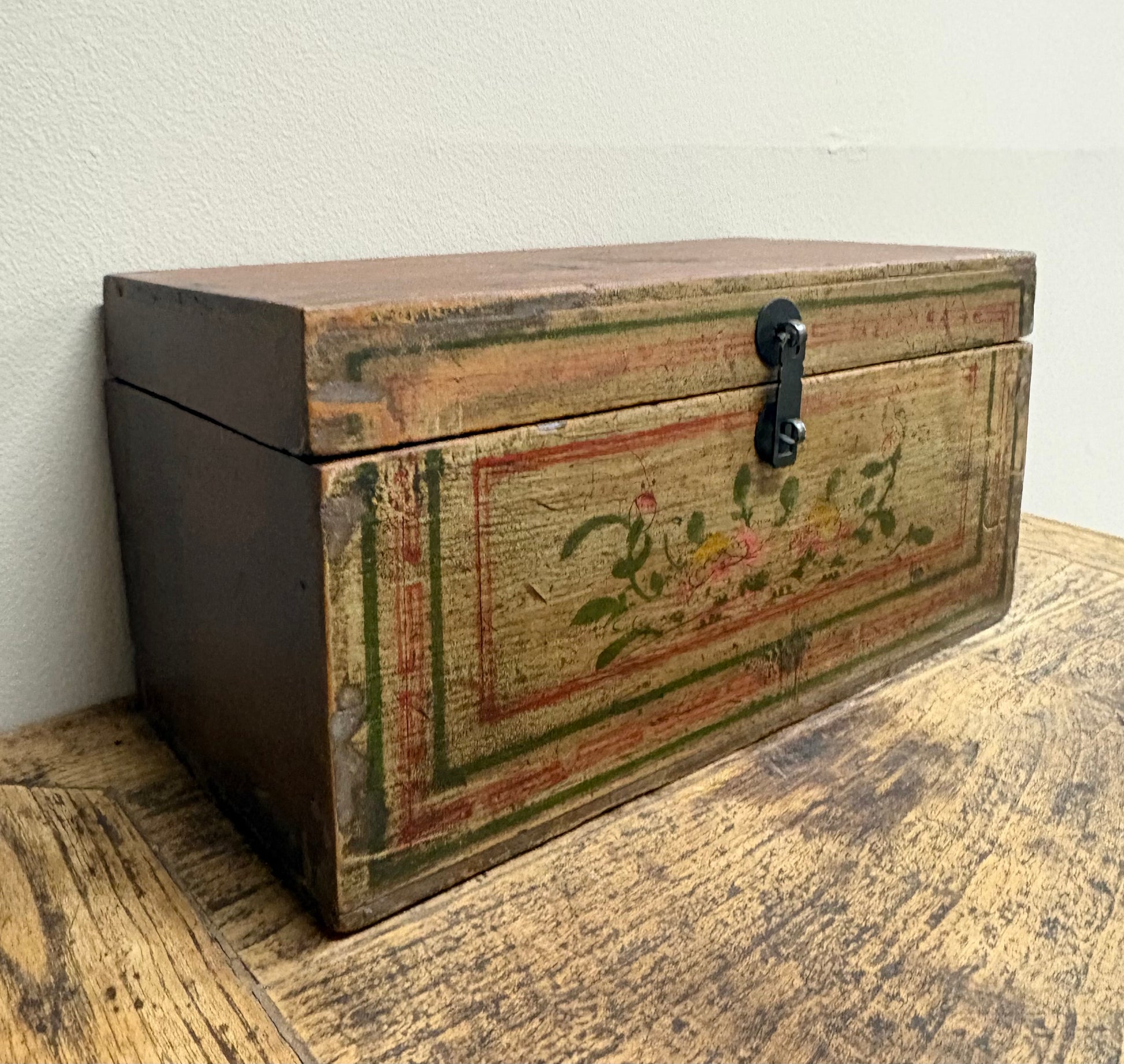 Elegante scatola antica, proveniente dalla Mongolia Interna, con un decoro lieve.