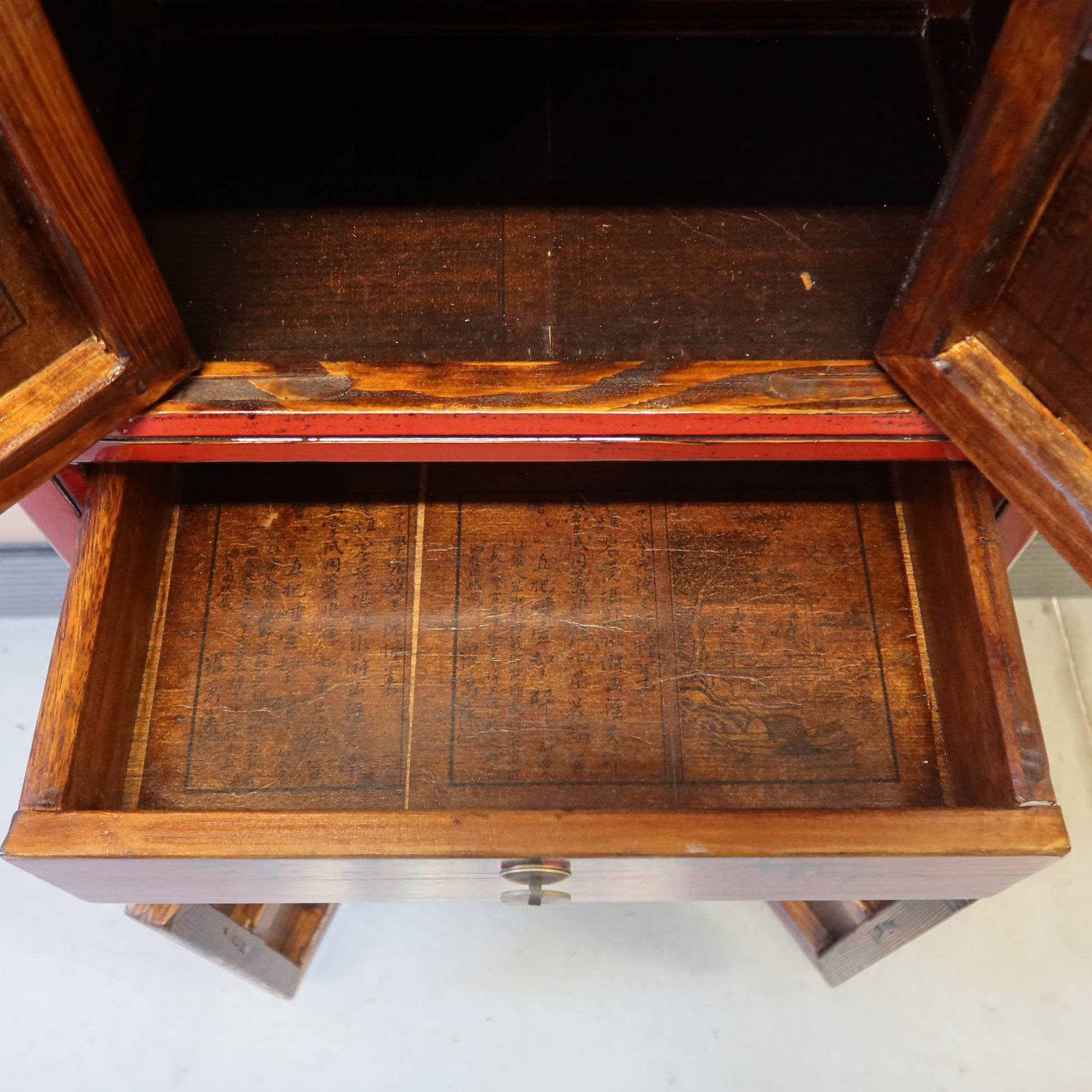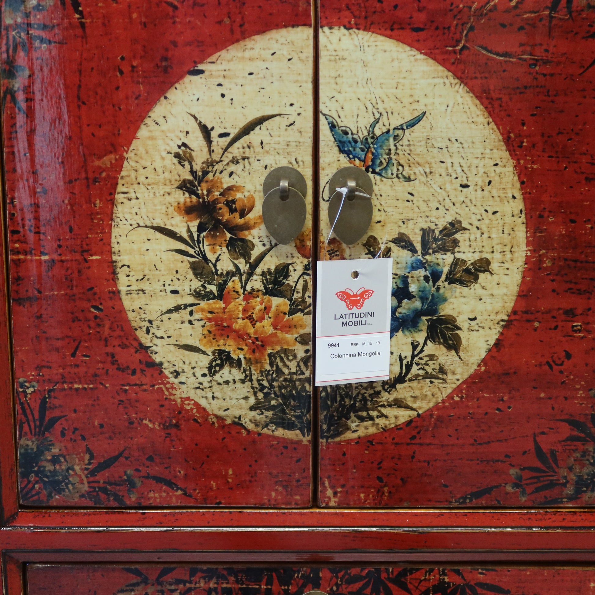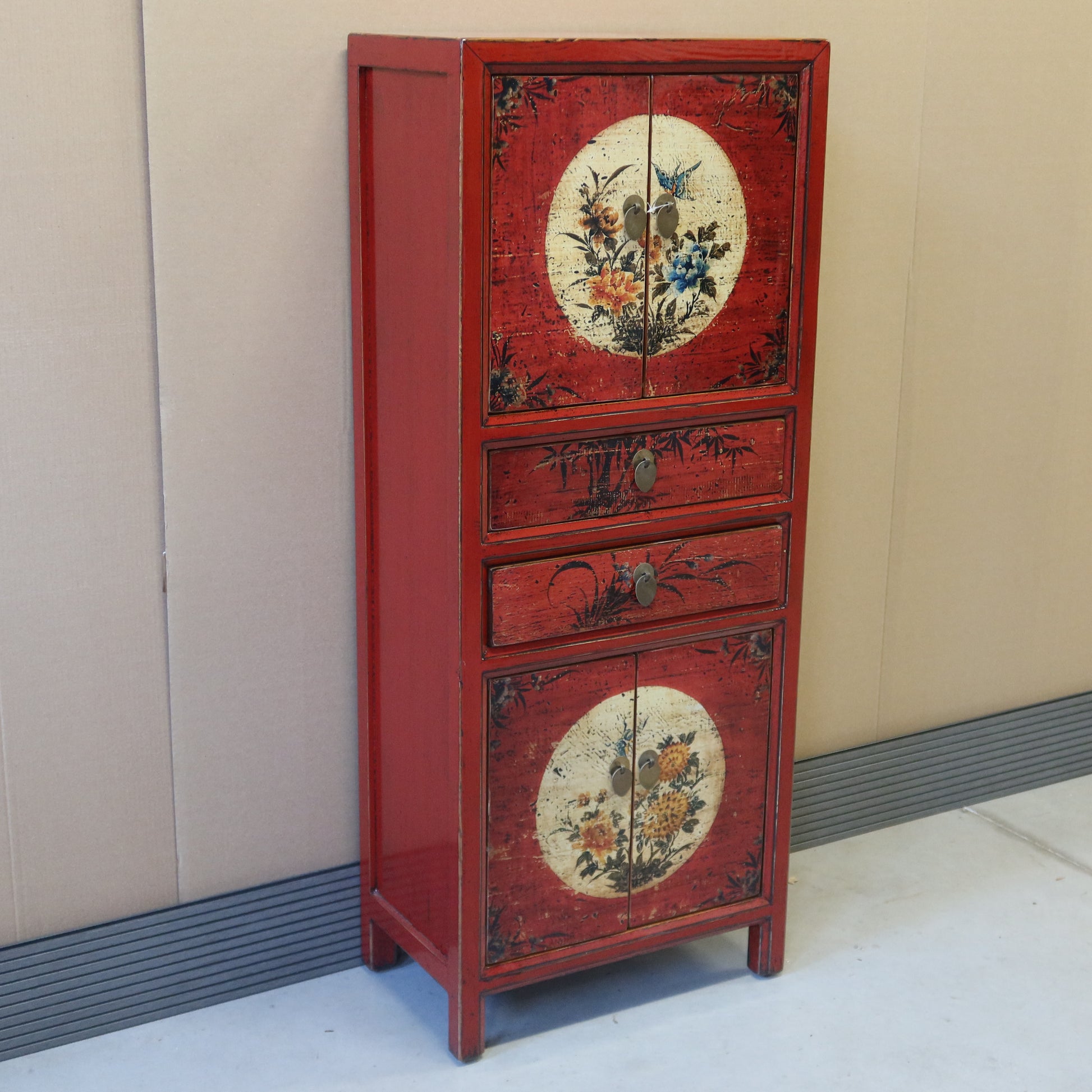 Elegante armadietto stretto cinese a colonna, a doppio vano e doppi cassetti: un graziosissimo mobile adatto sia a contenere sia anche a impreziosire quell'angolino della casa che ha dimensioni troppo ridotte e in cui non possono stare mobili più grandi