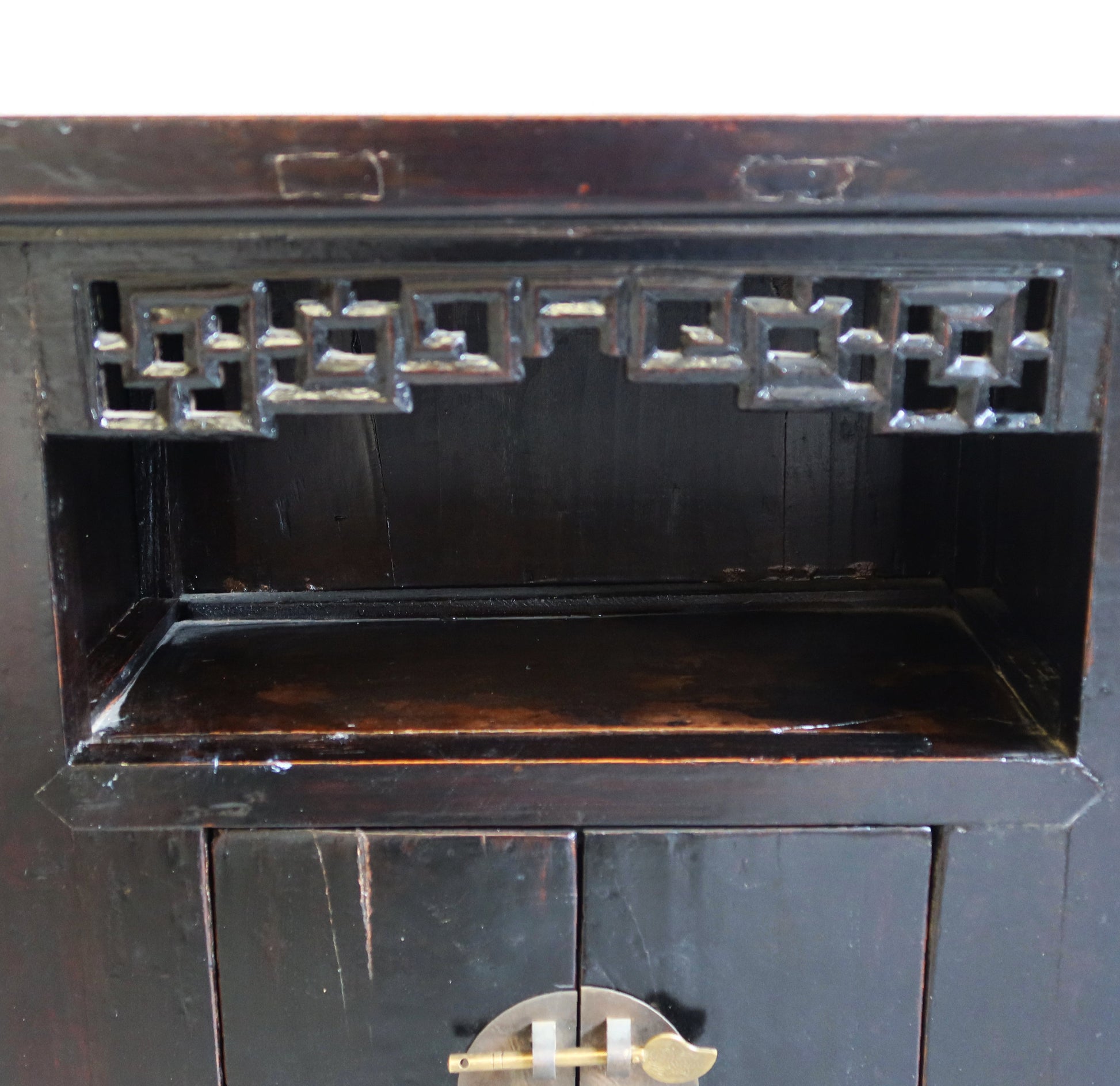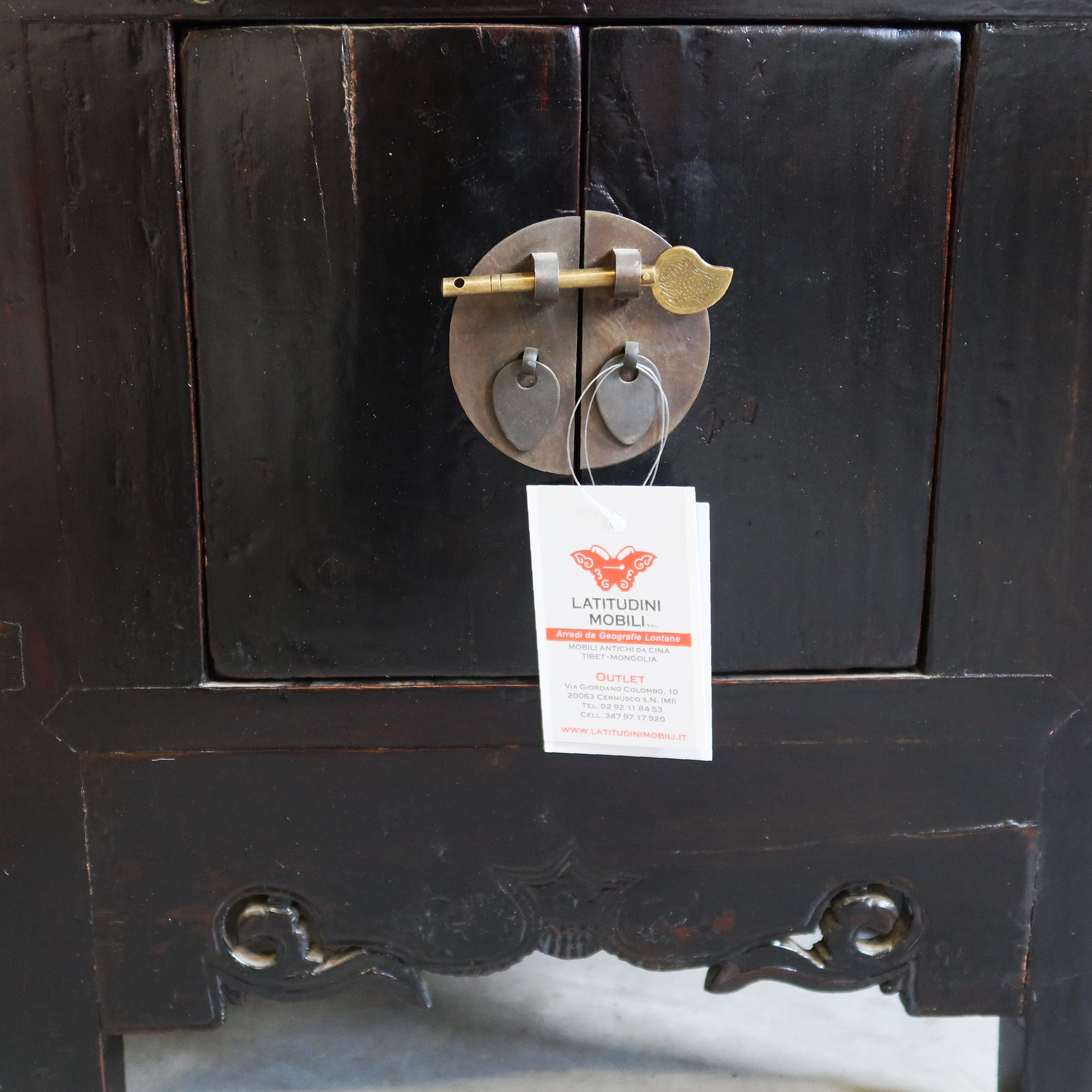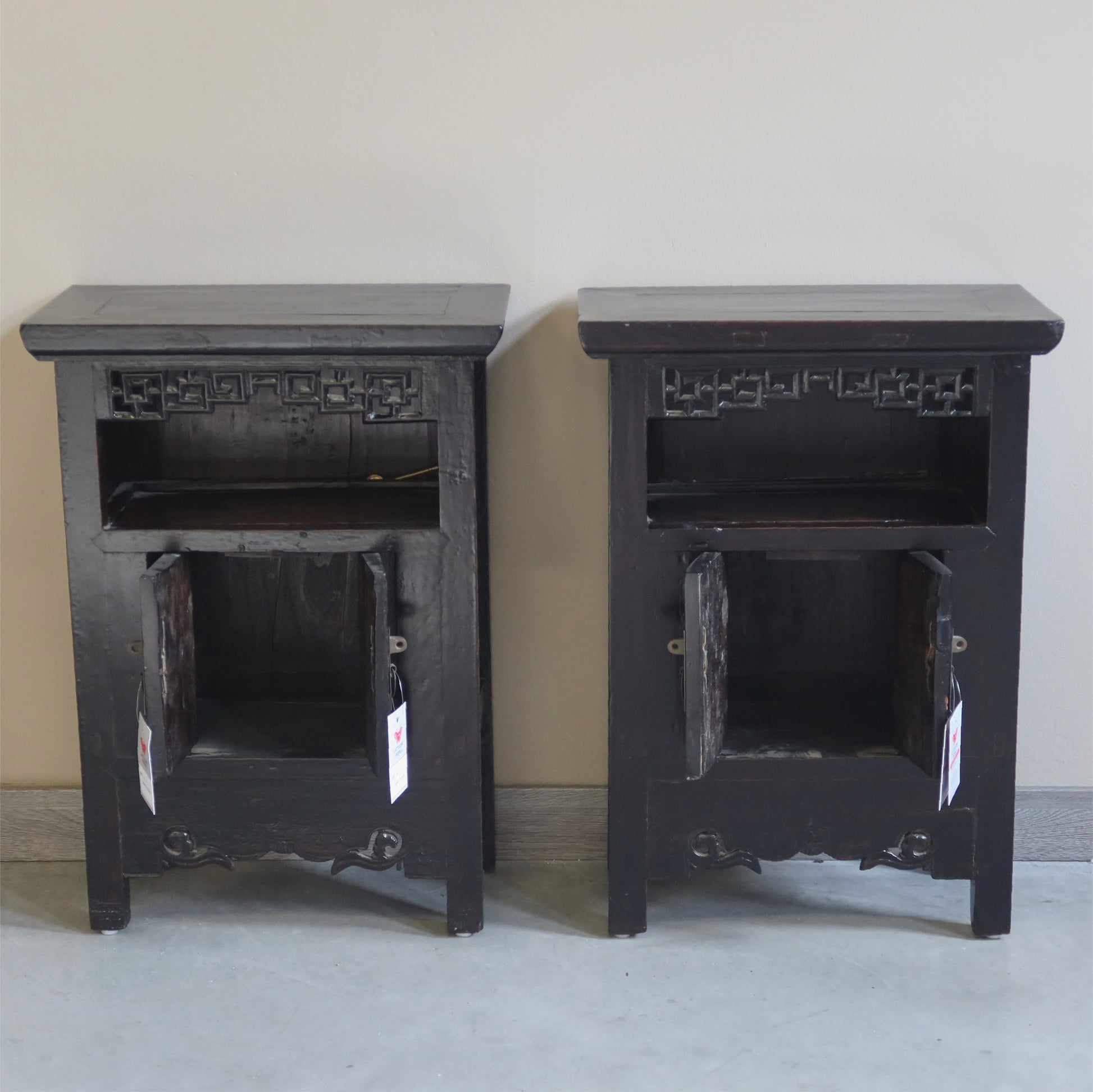 Grazioso stipetto in olmo scuro con vano giorno e intaglio. Il prezzo indicato è per singolo oggetto.