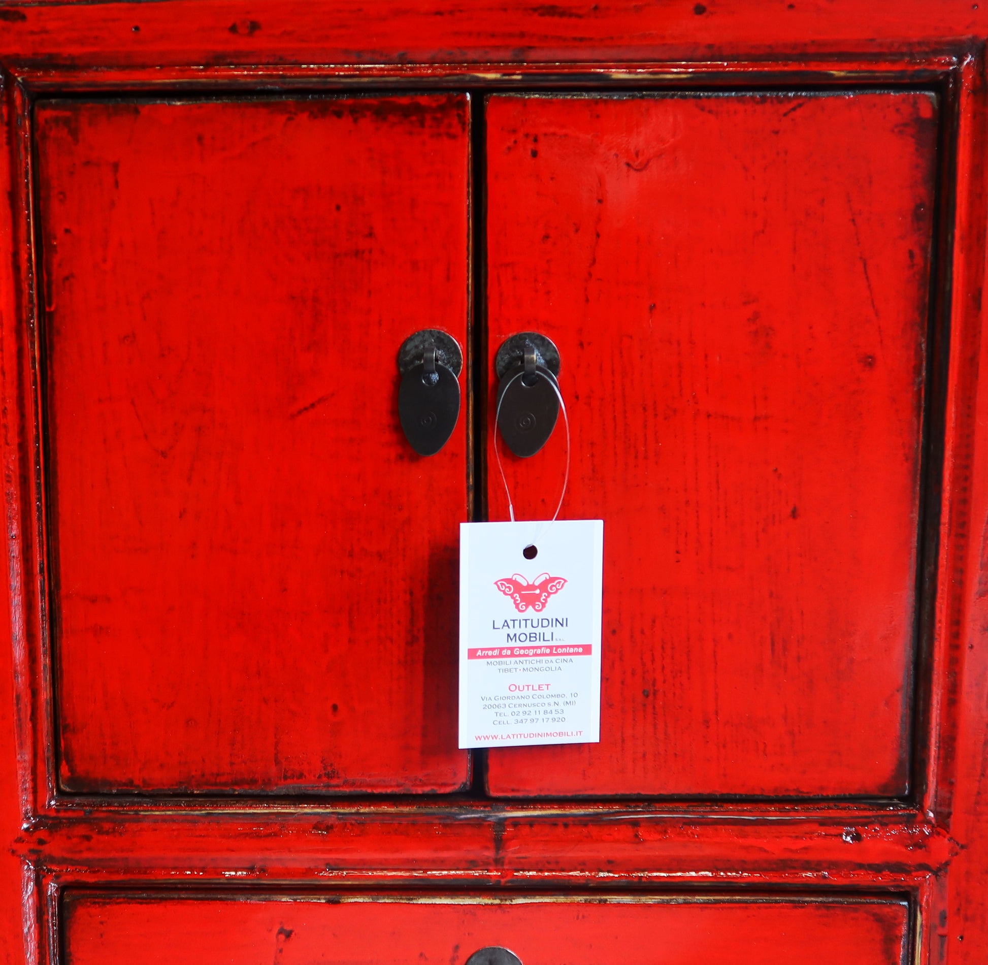 COMODINO LACCA ROSSA 2 ANTE E CASSETTO