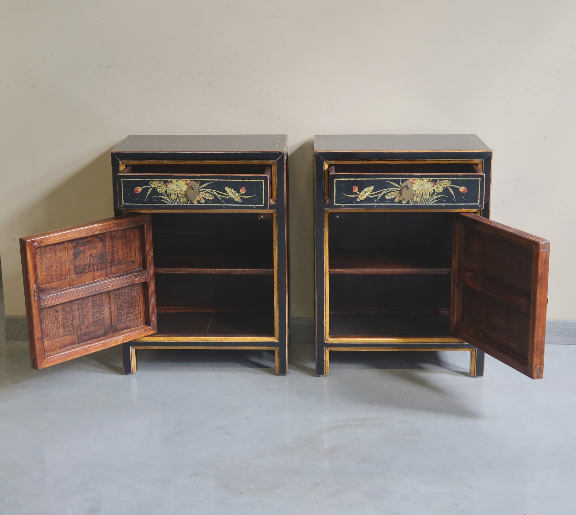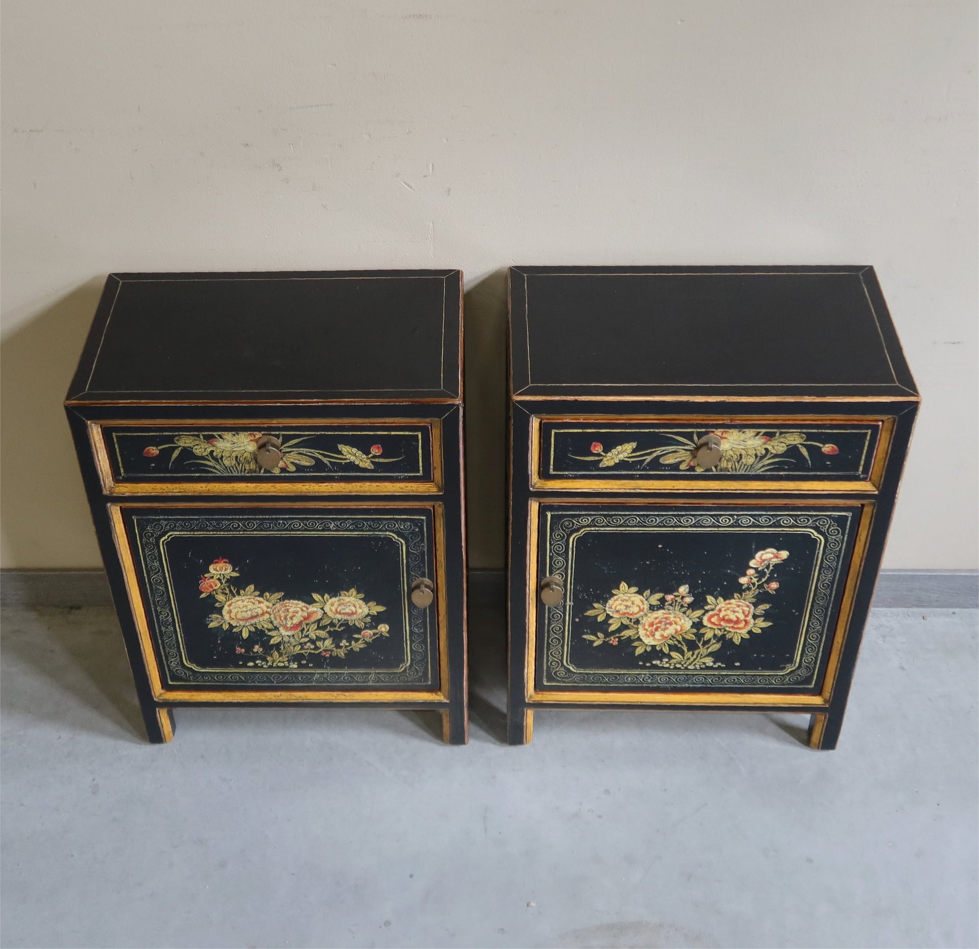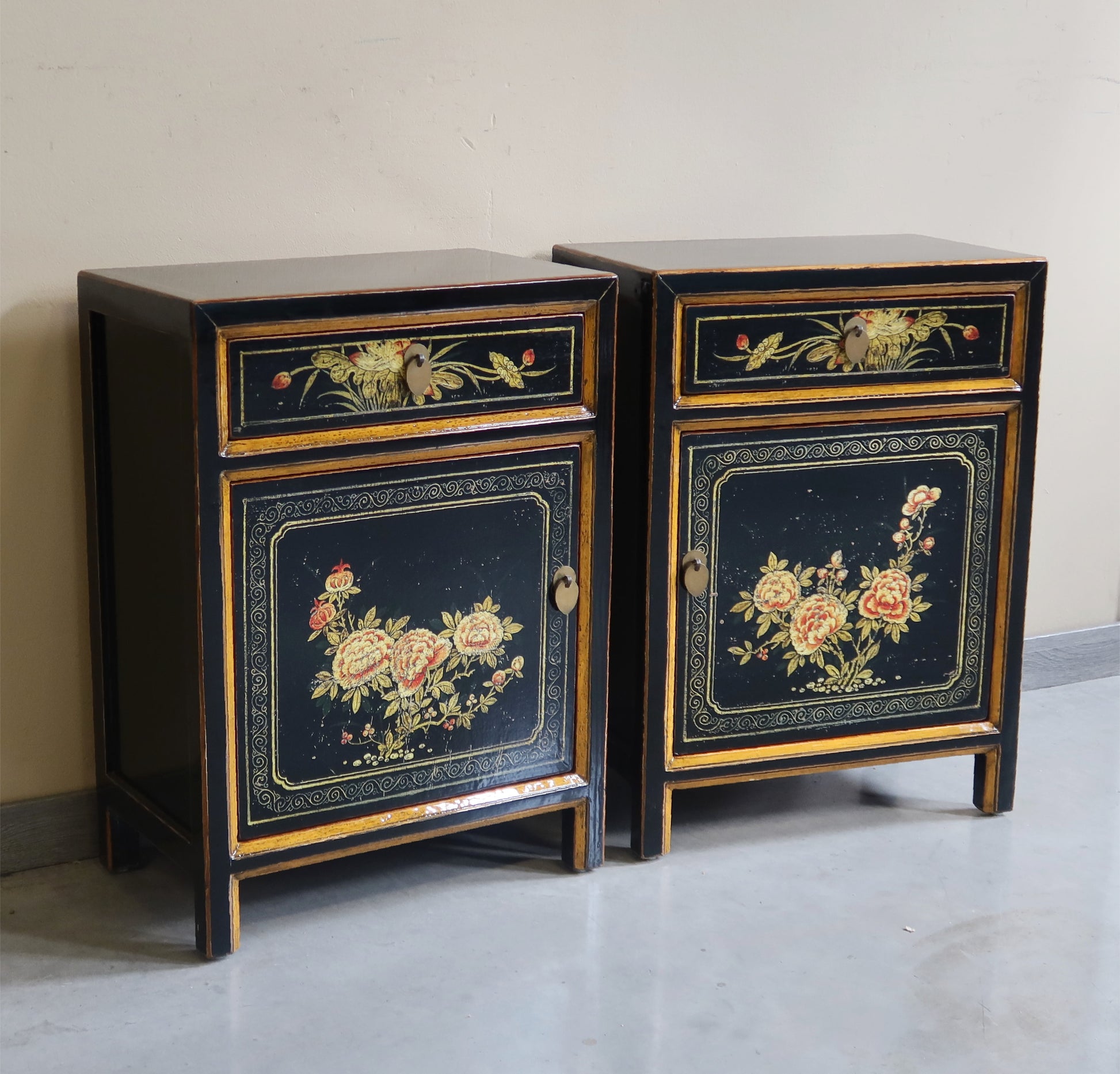 Stipetto mongolo in lacca decorata: il prezzo indicato è per singolo comodino.