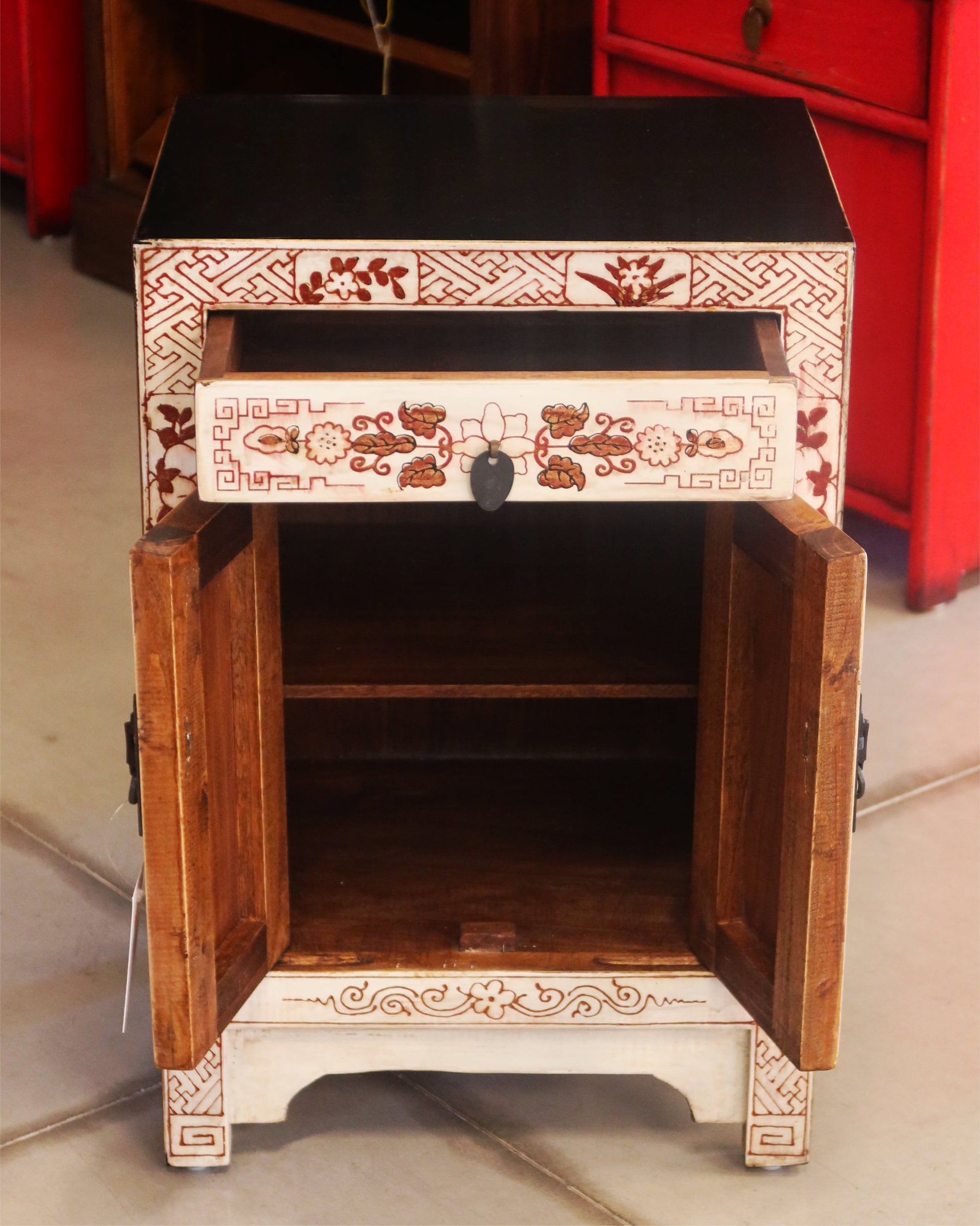 COMODINO SHANXI LACCA BIANCA DECORATA