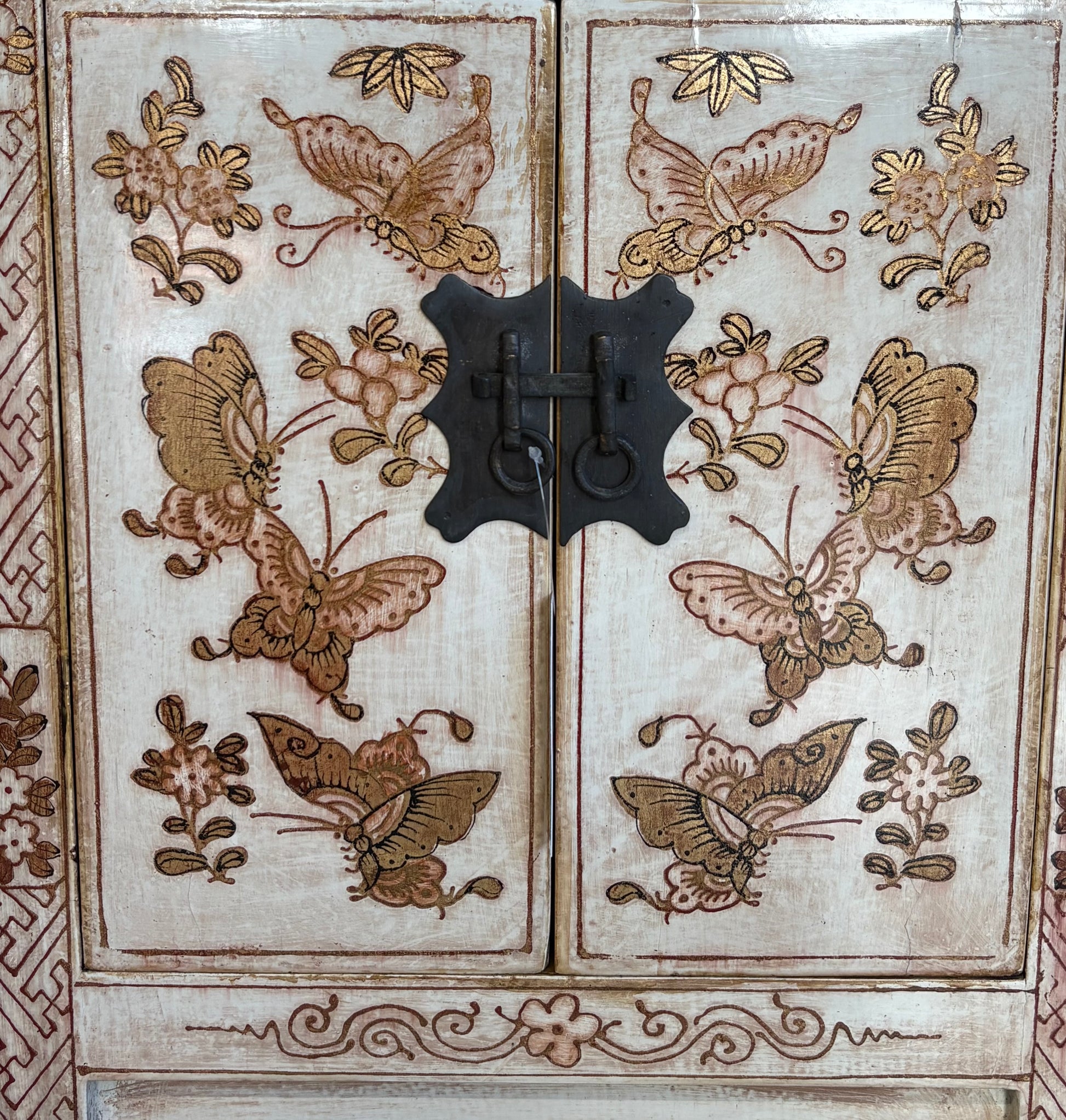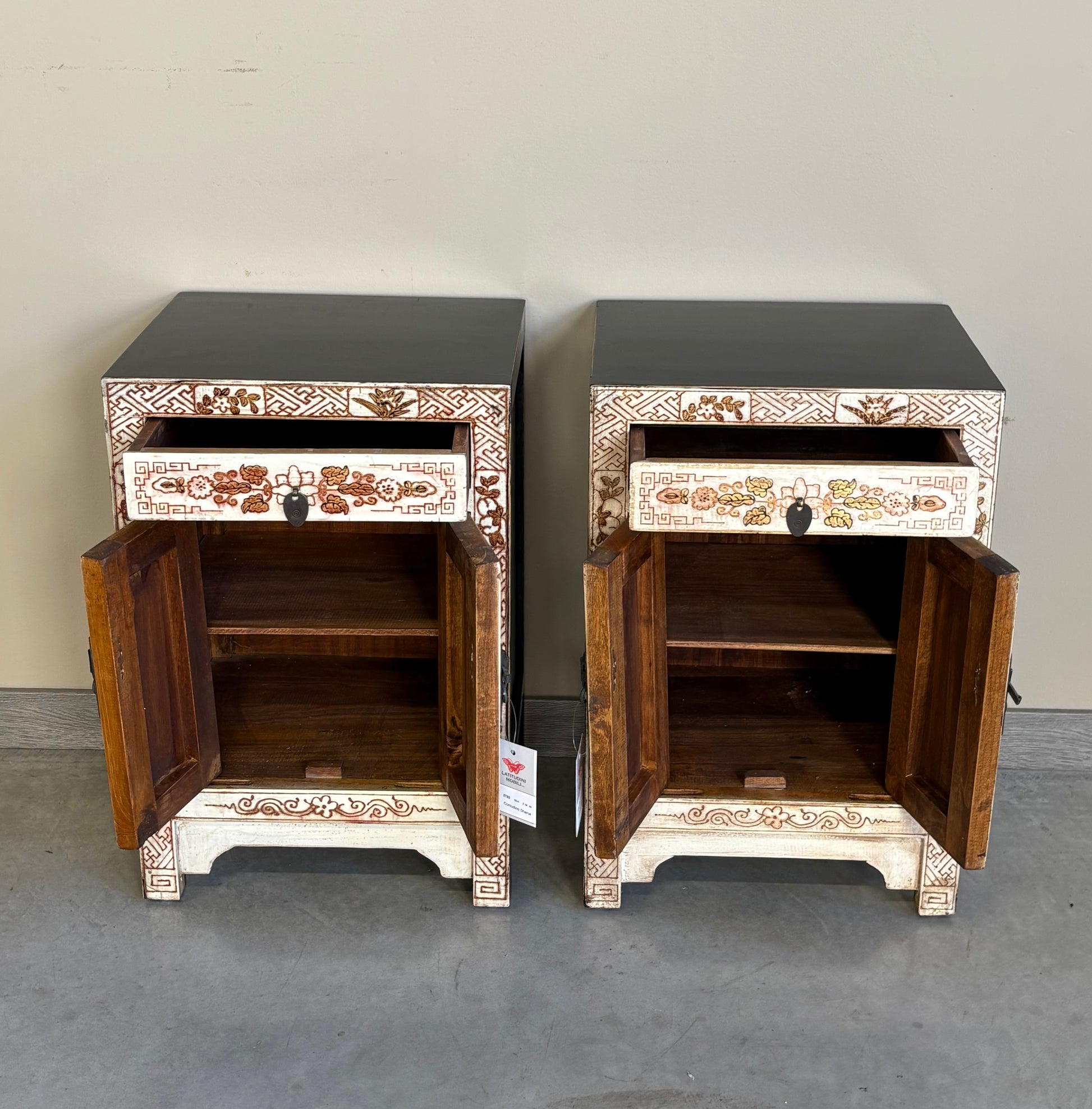 COMODINO SHANXI LACCA BIANCA DECORATA