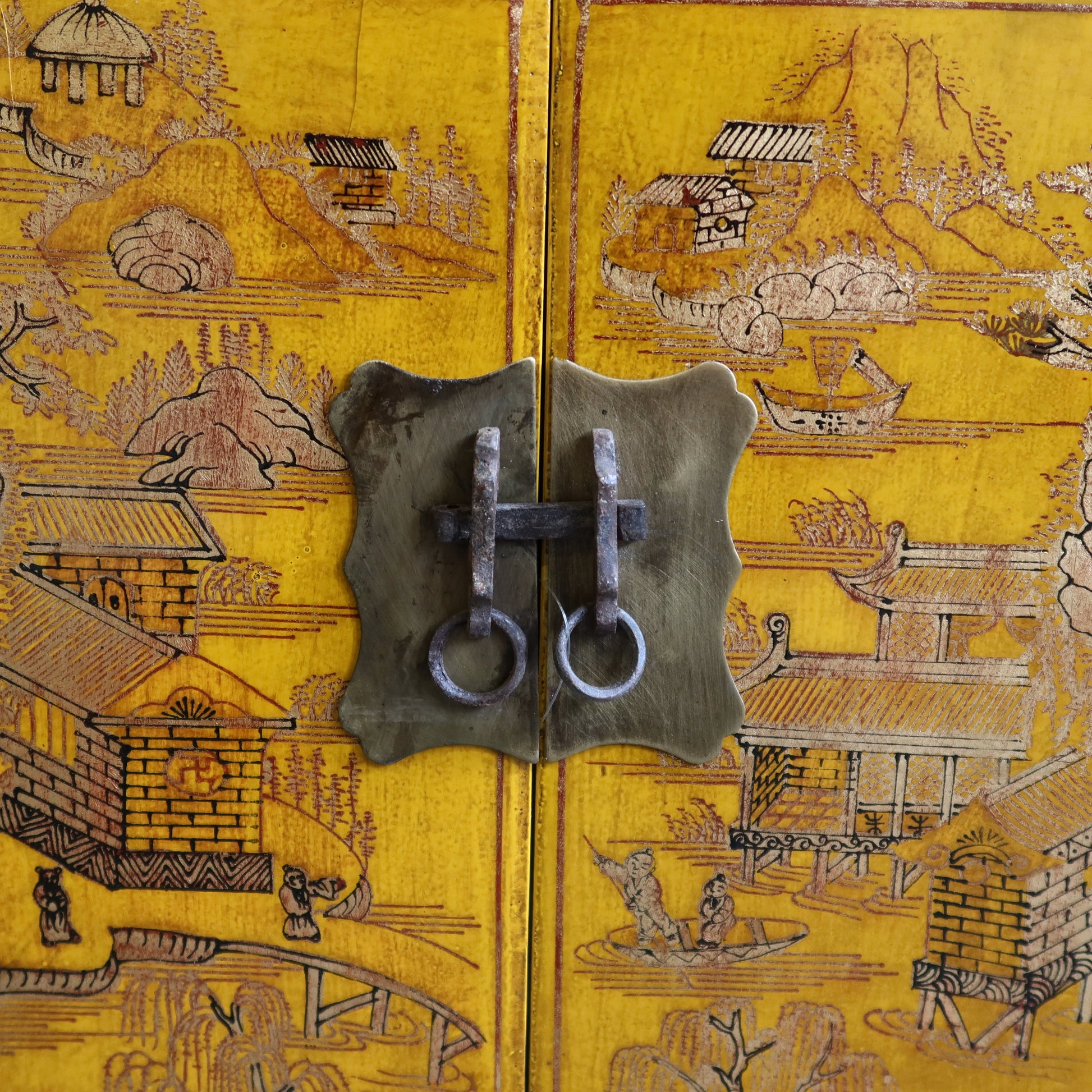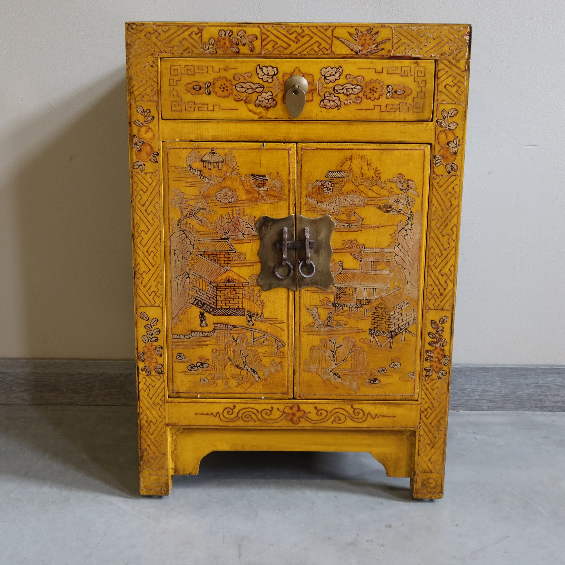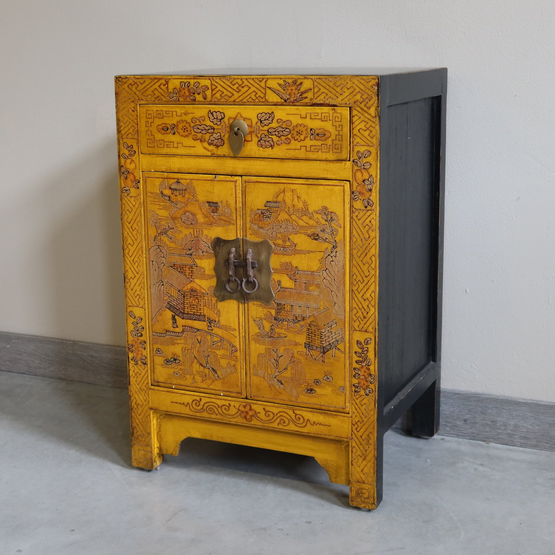 COMODINO SHANXI LACCA GIALLA DECORATA