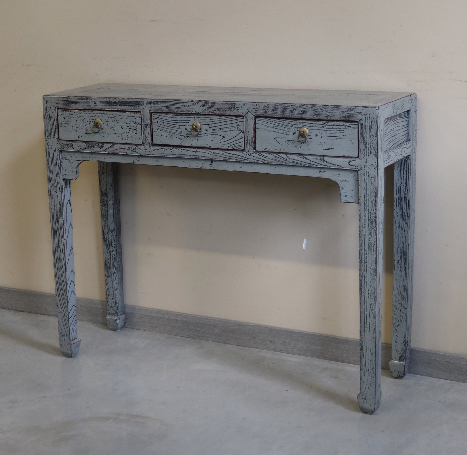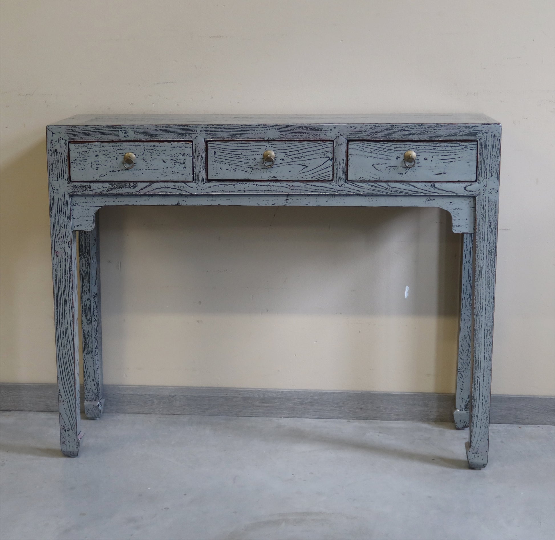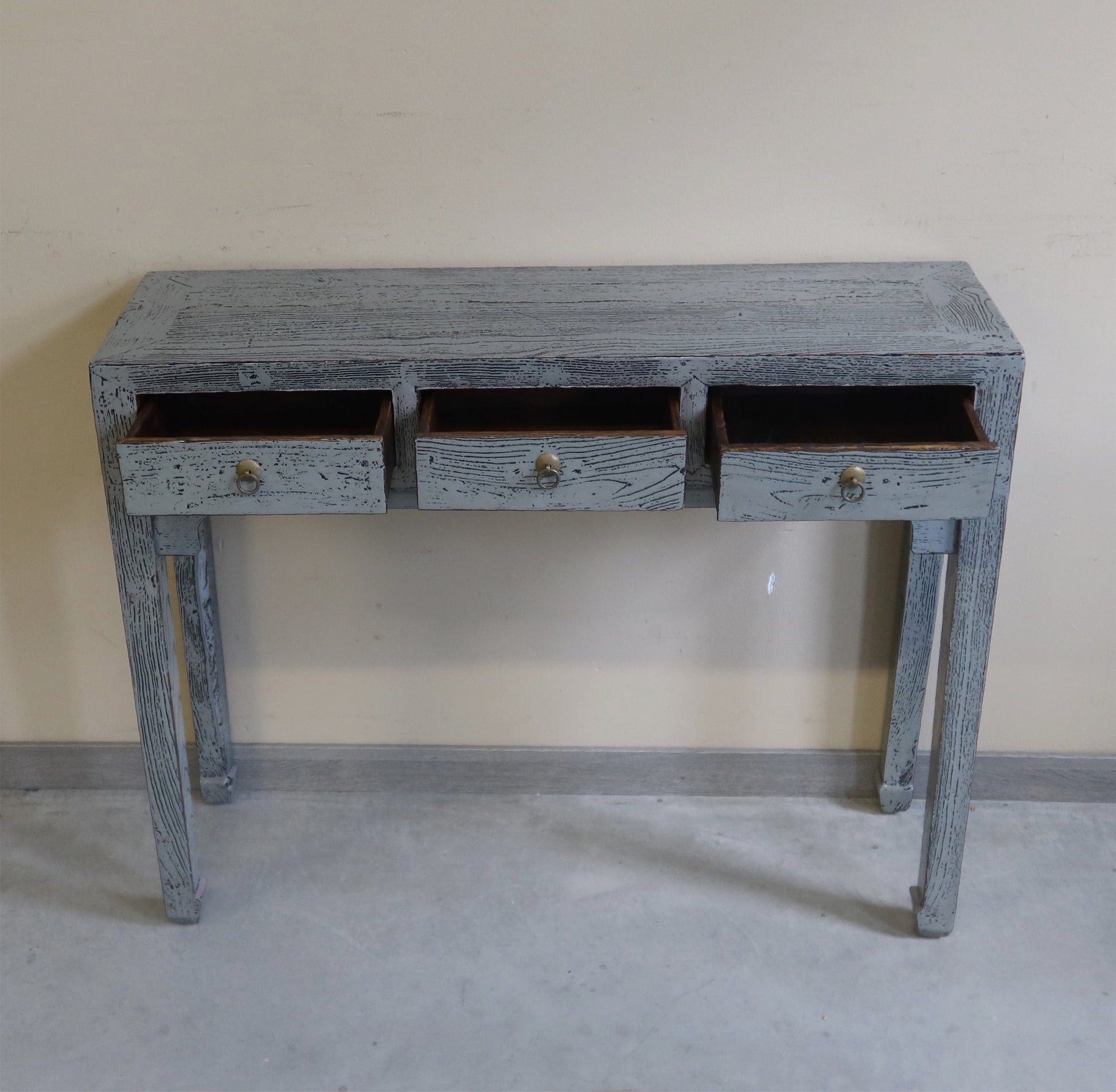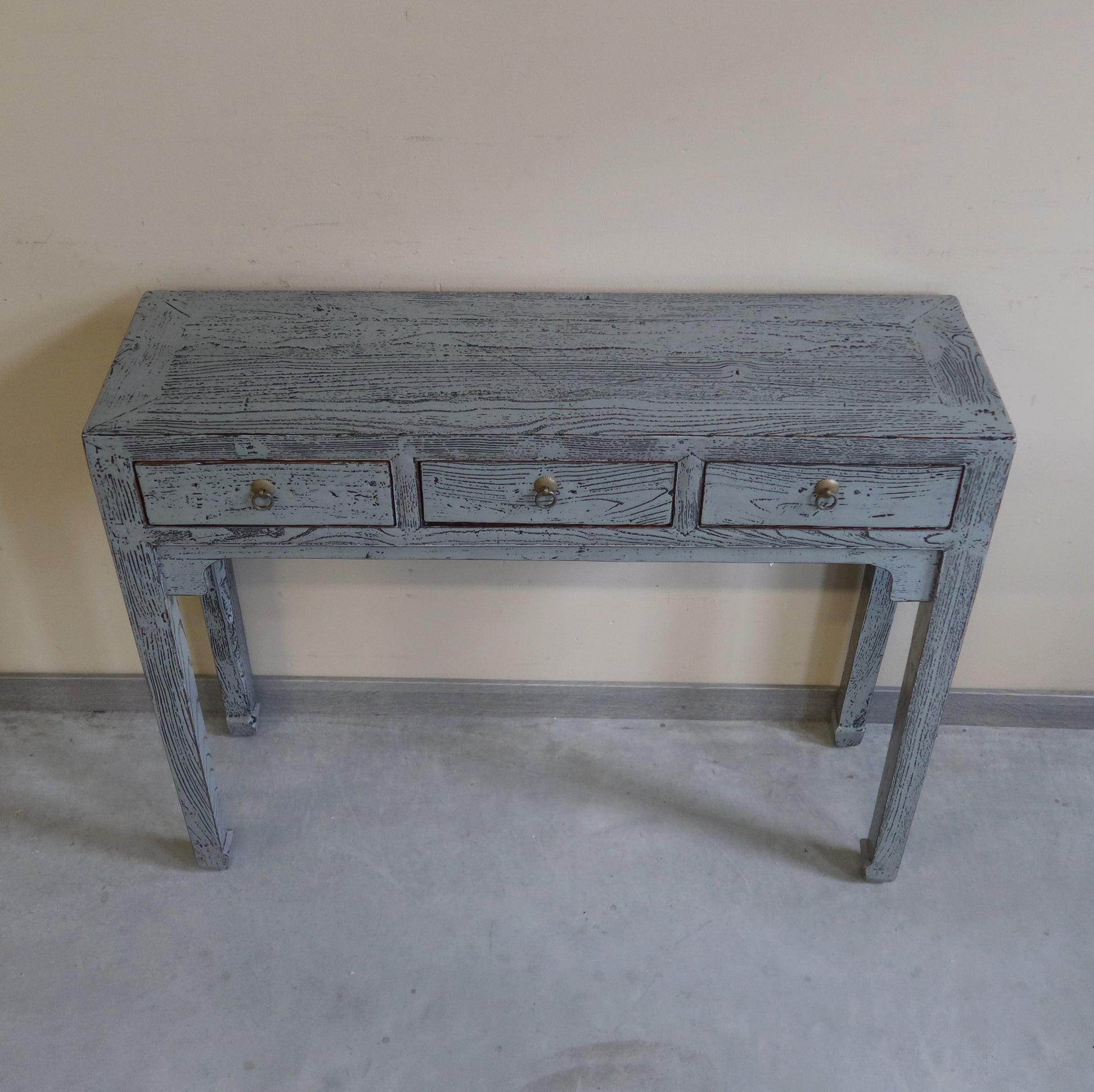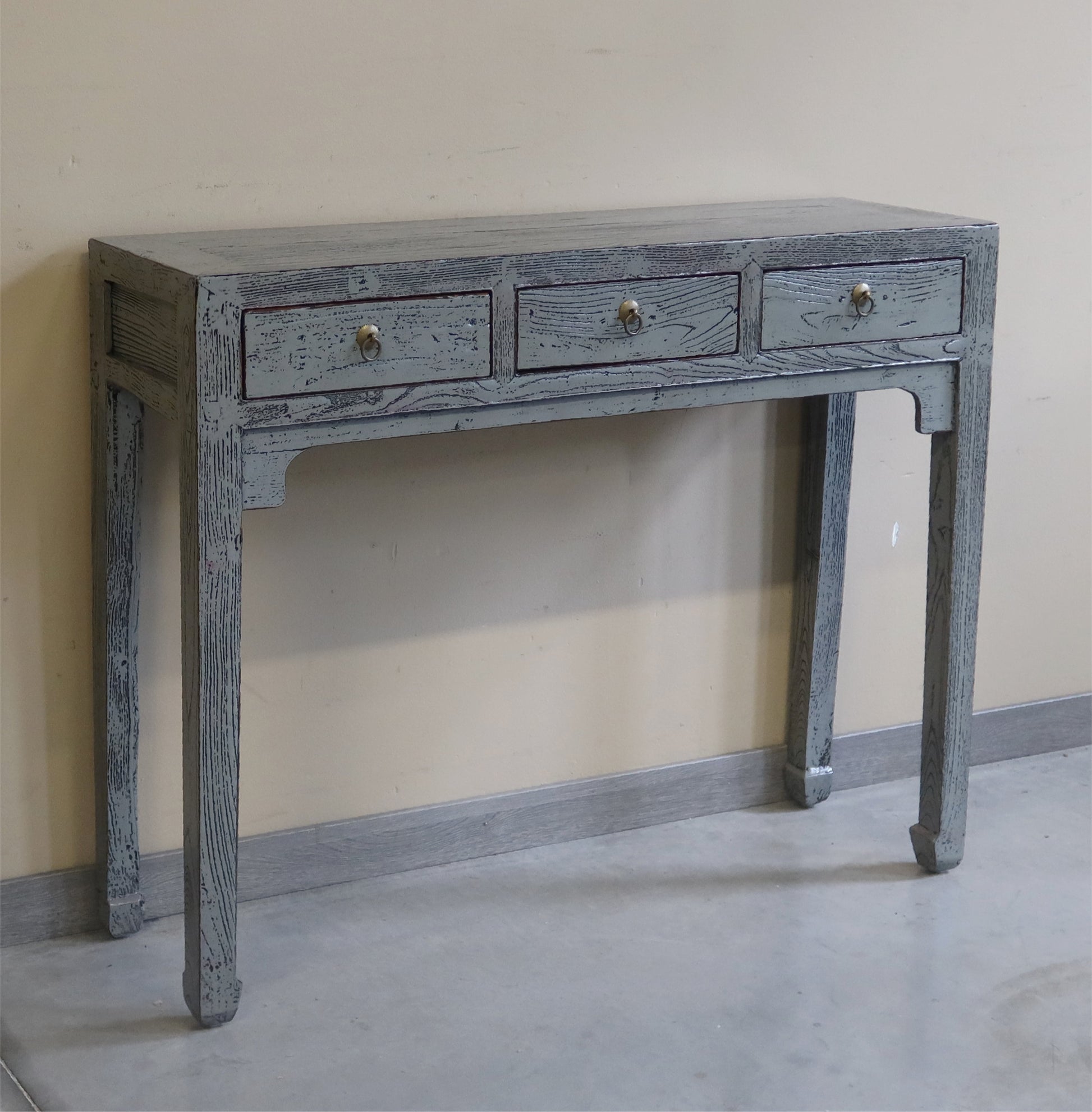 Elegante consolle in lacca grigia con caratteristiche venature del legno