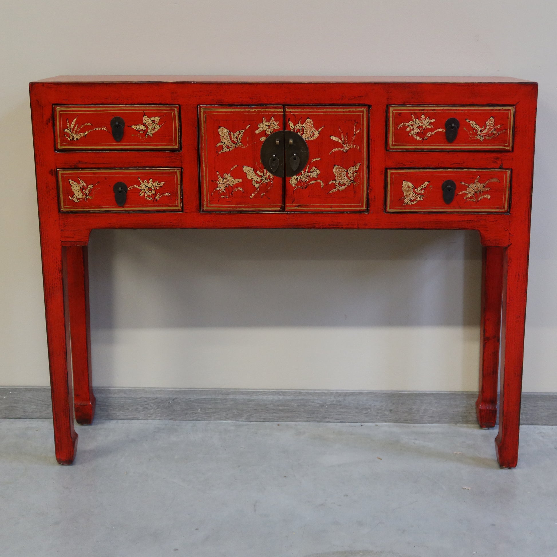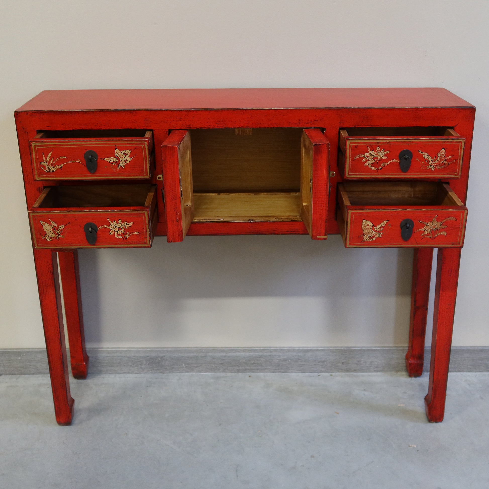 CONSOLLE SHANXI ROSSA DECORI ORO