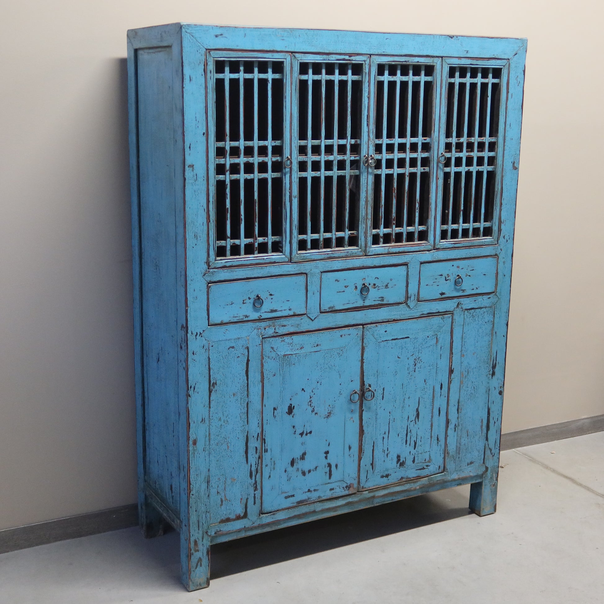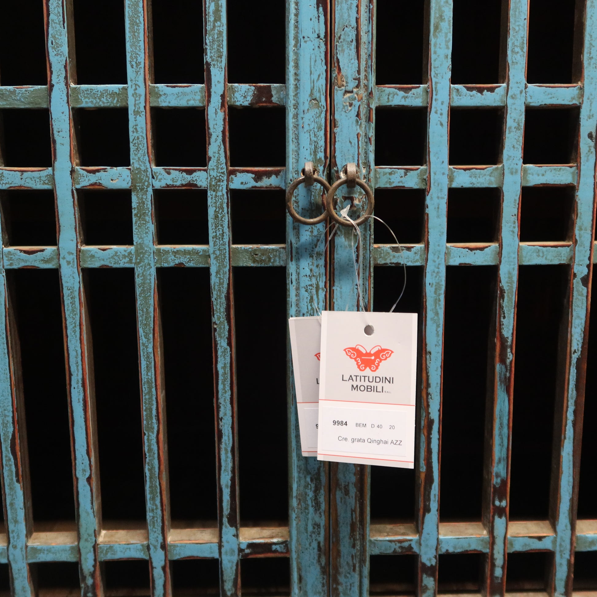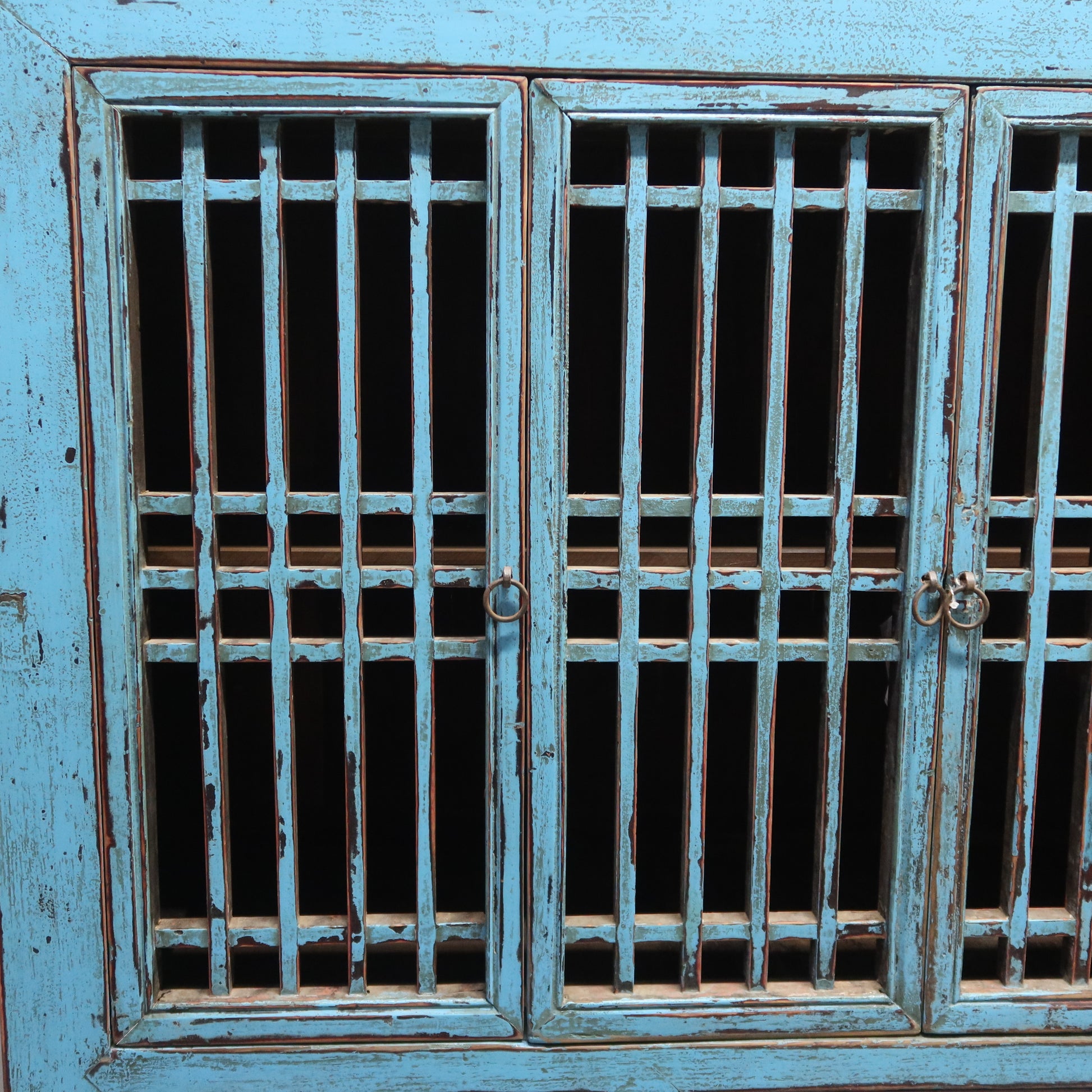 CREDENZA CINESE LACCA AZZURRA CON ANTE A GRATA