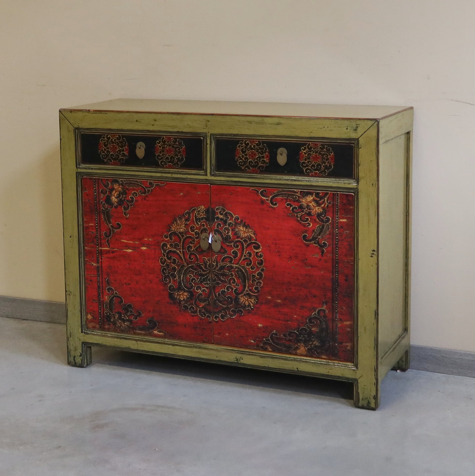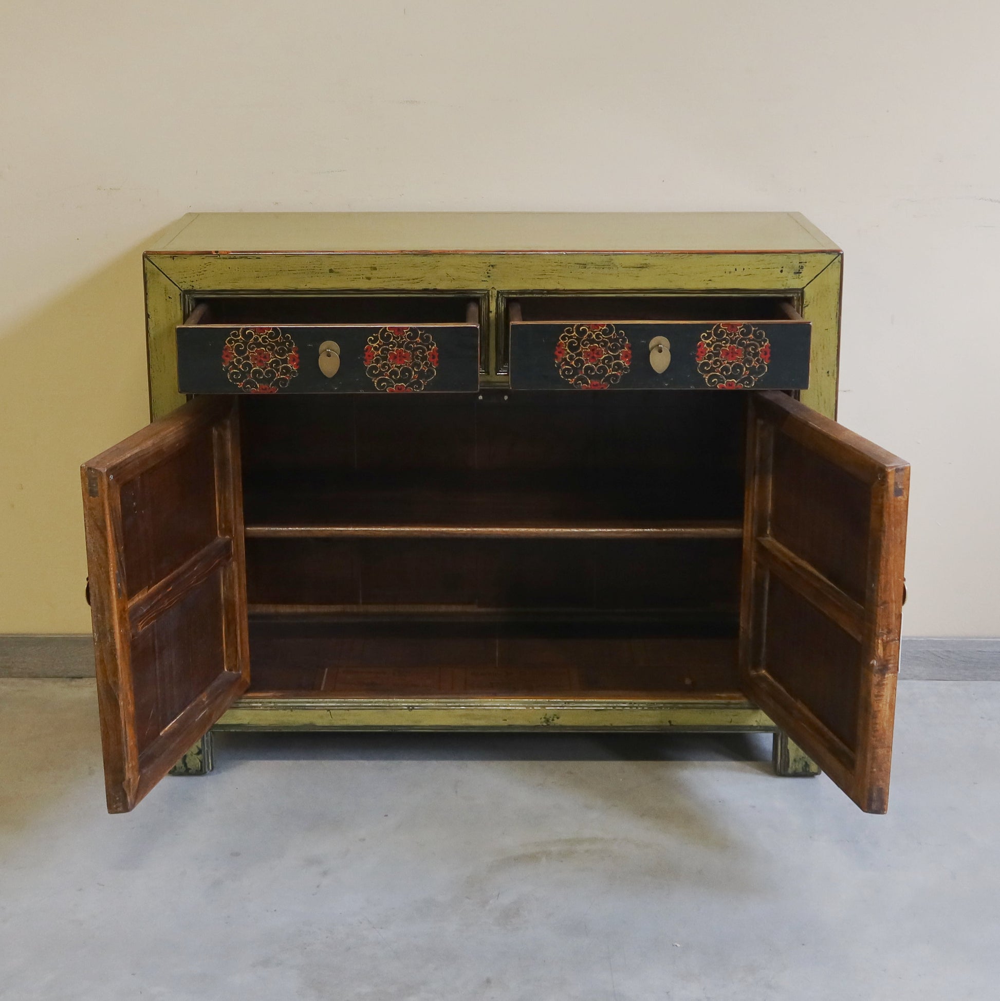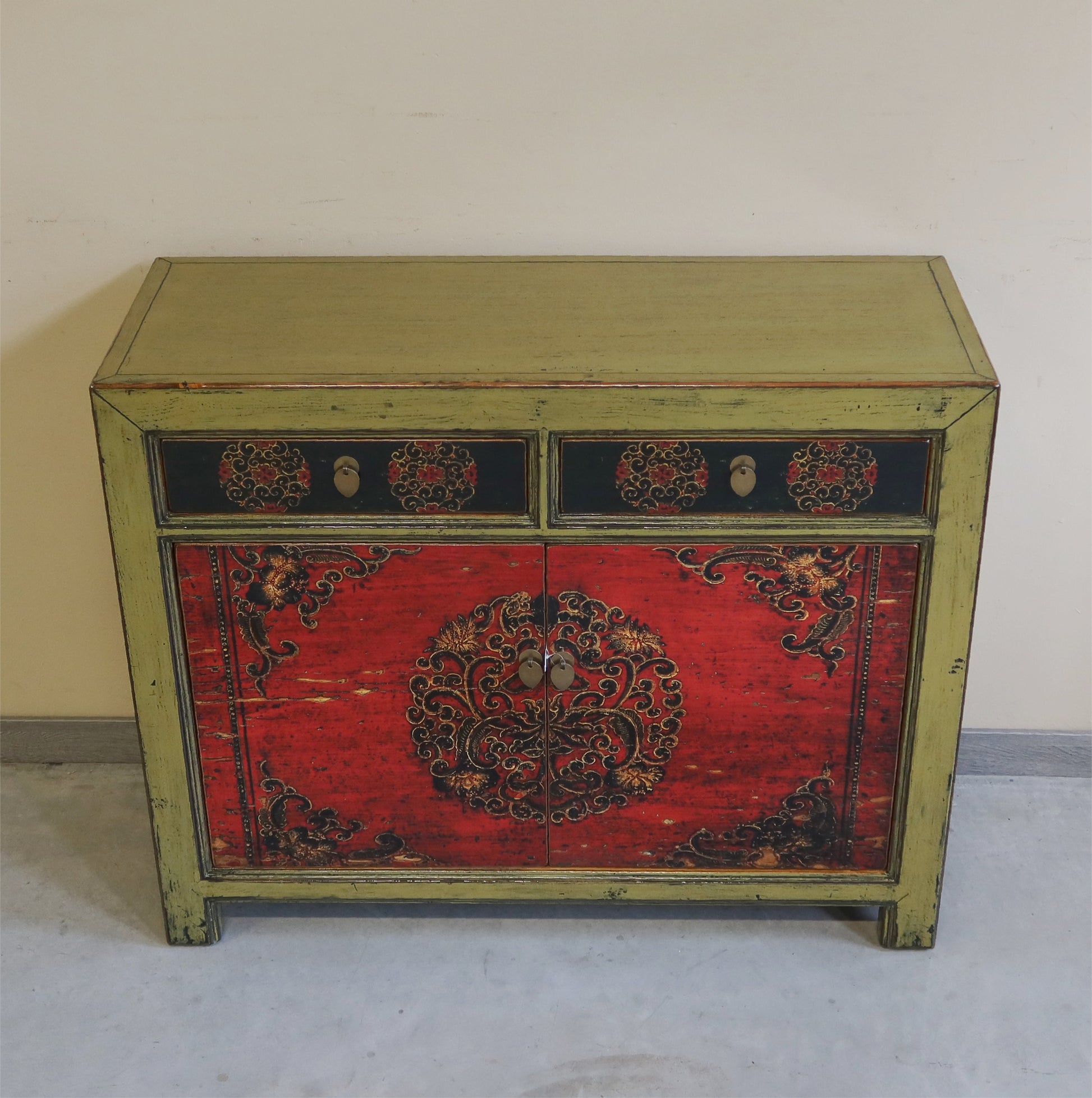 Credenza ad un vano e doppi cassetti caratterizzata da caratteristica decorazione.