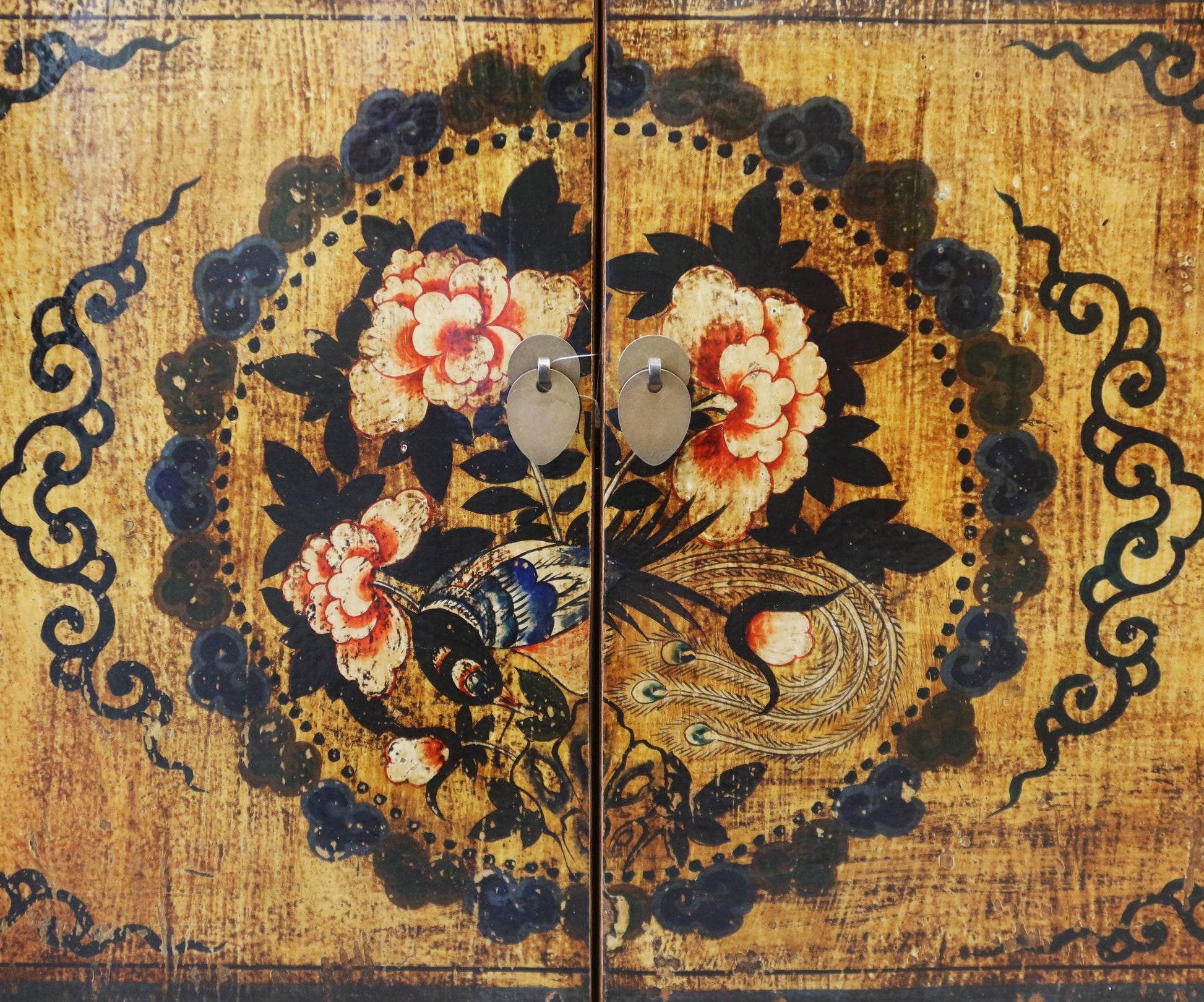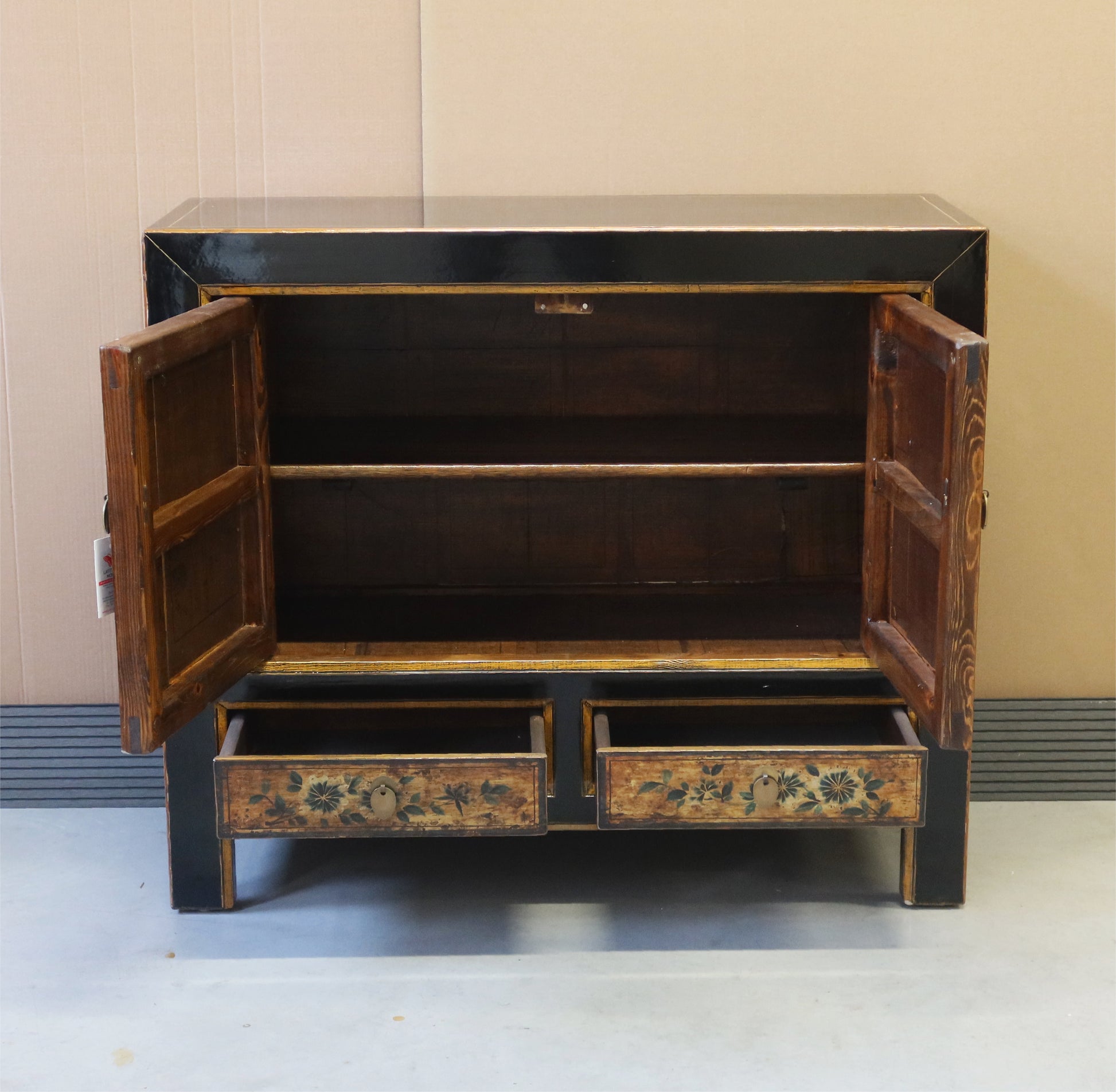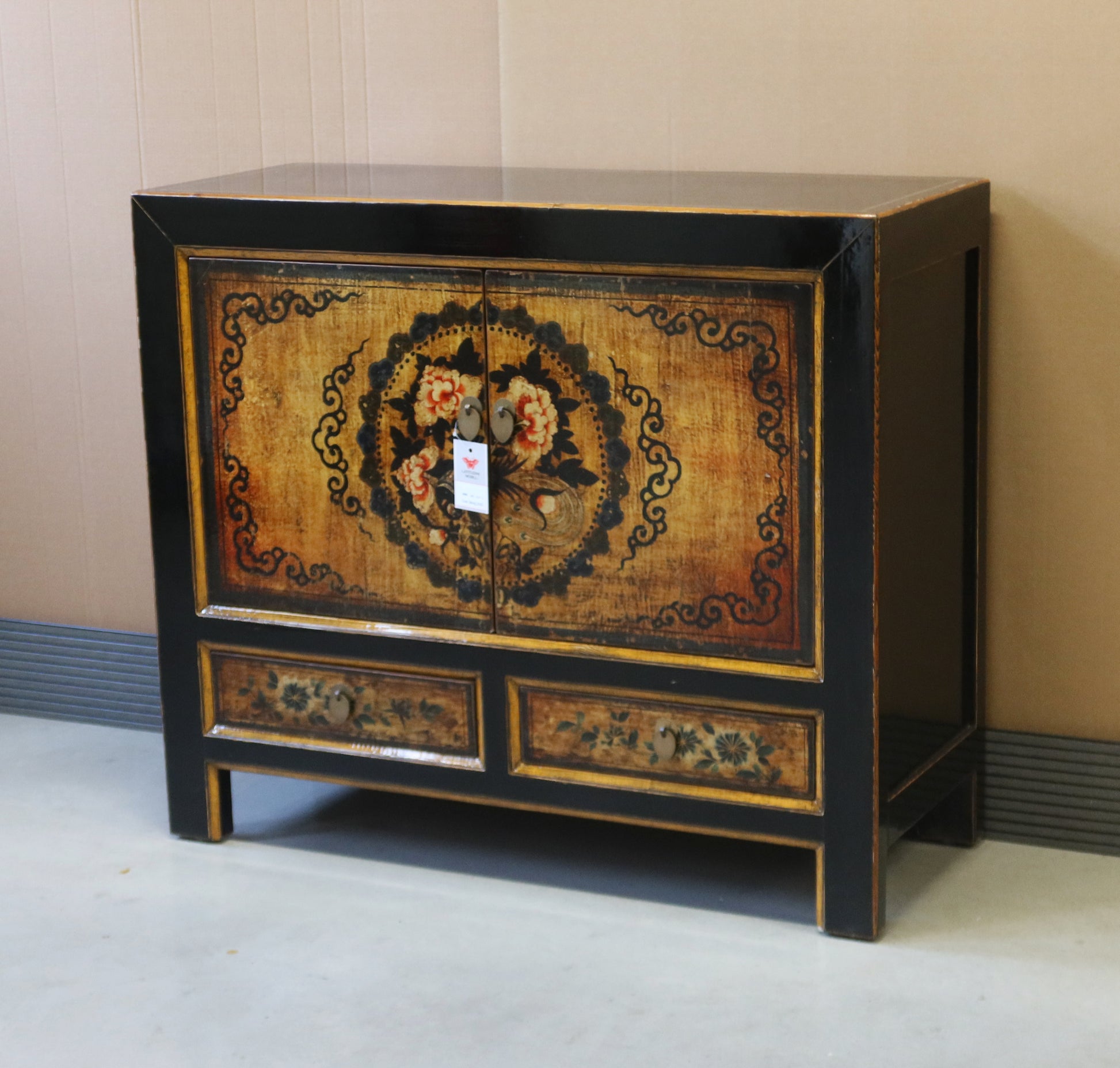 Credenza ad un vano e doppi cassetti caratterizzata da caratteristica decorazione.