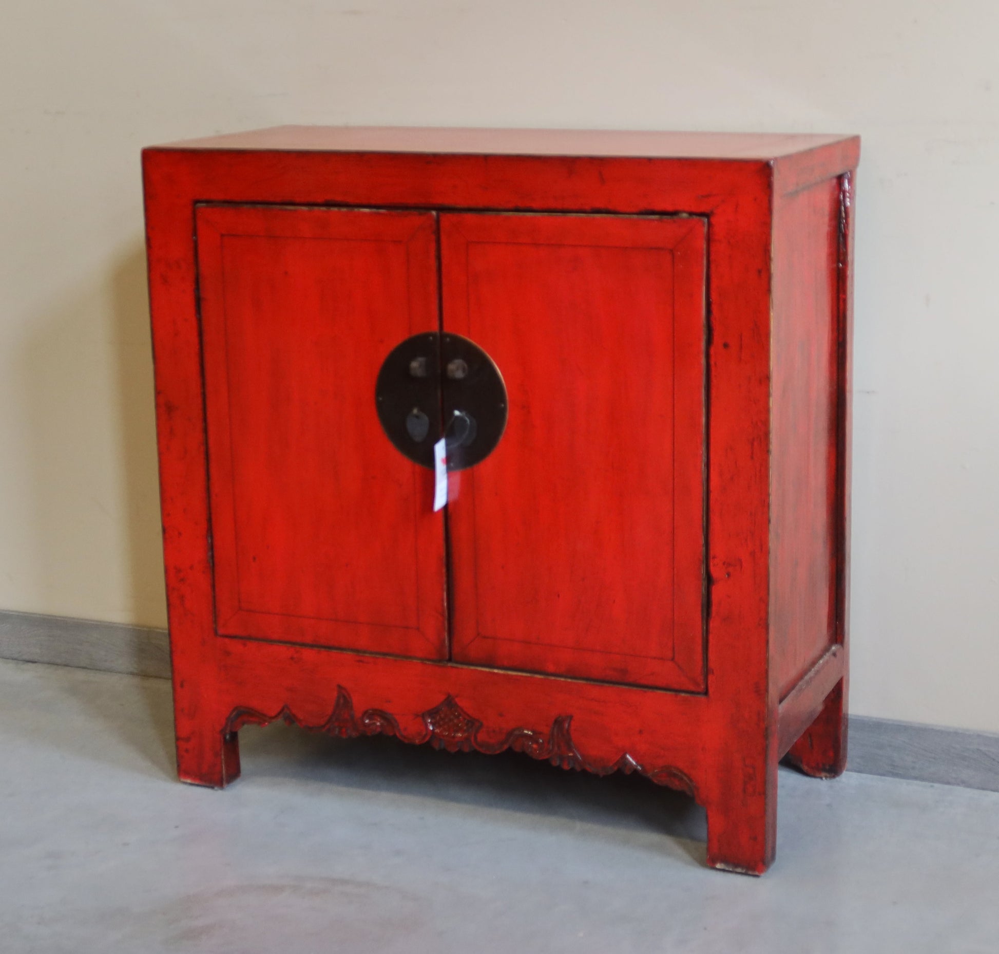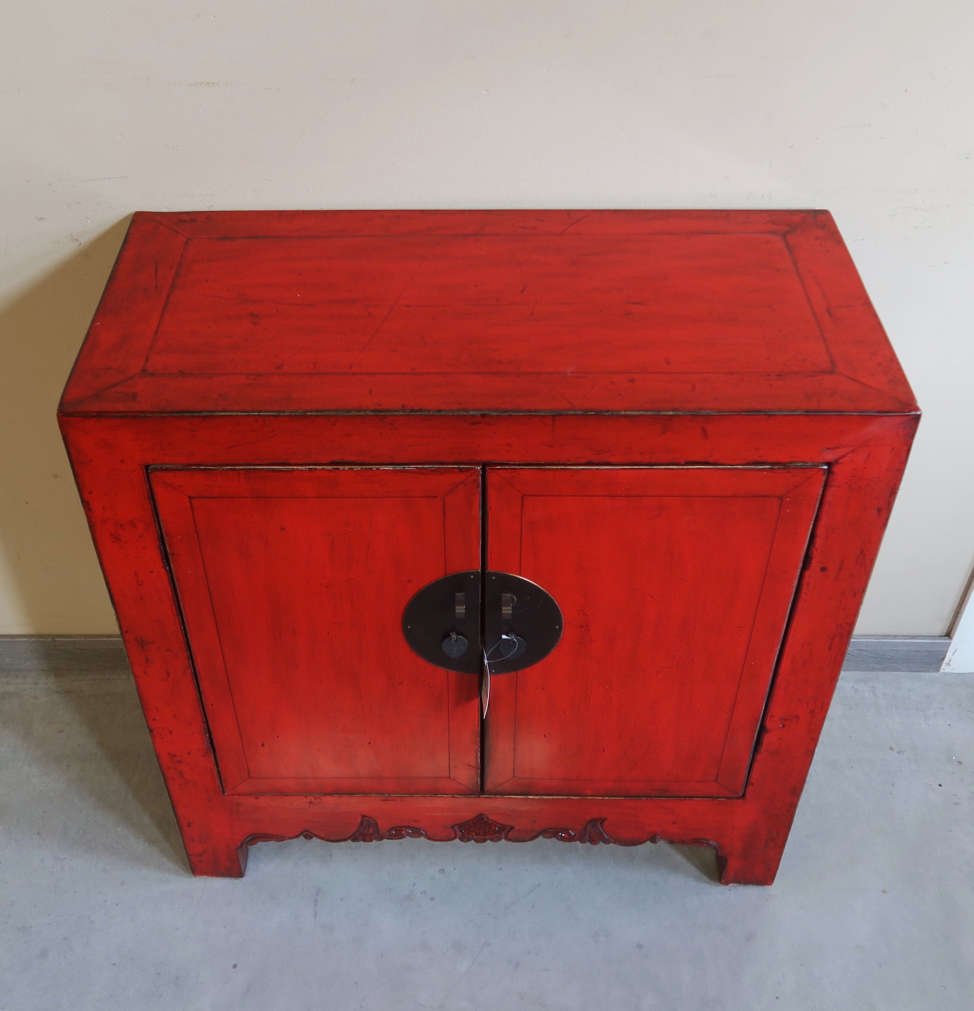 CREDENZINA CINESE LACCA ROSSA CON GREMBIULE INTAGLIATO
