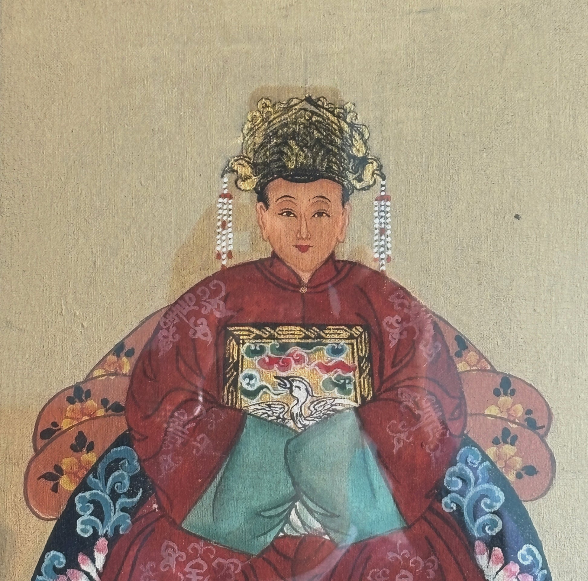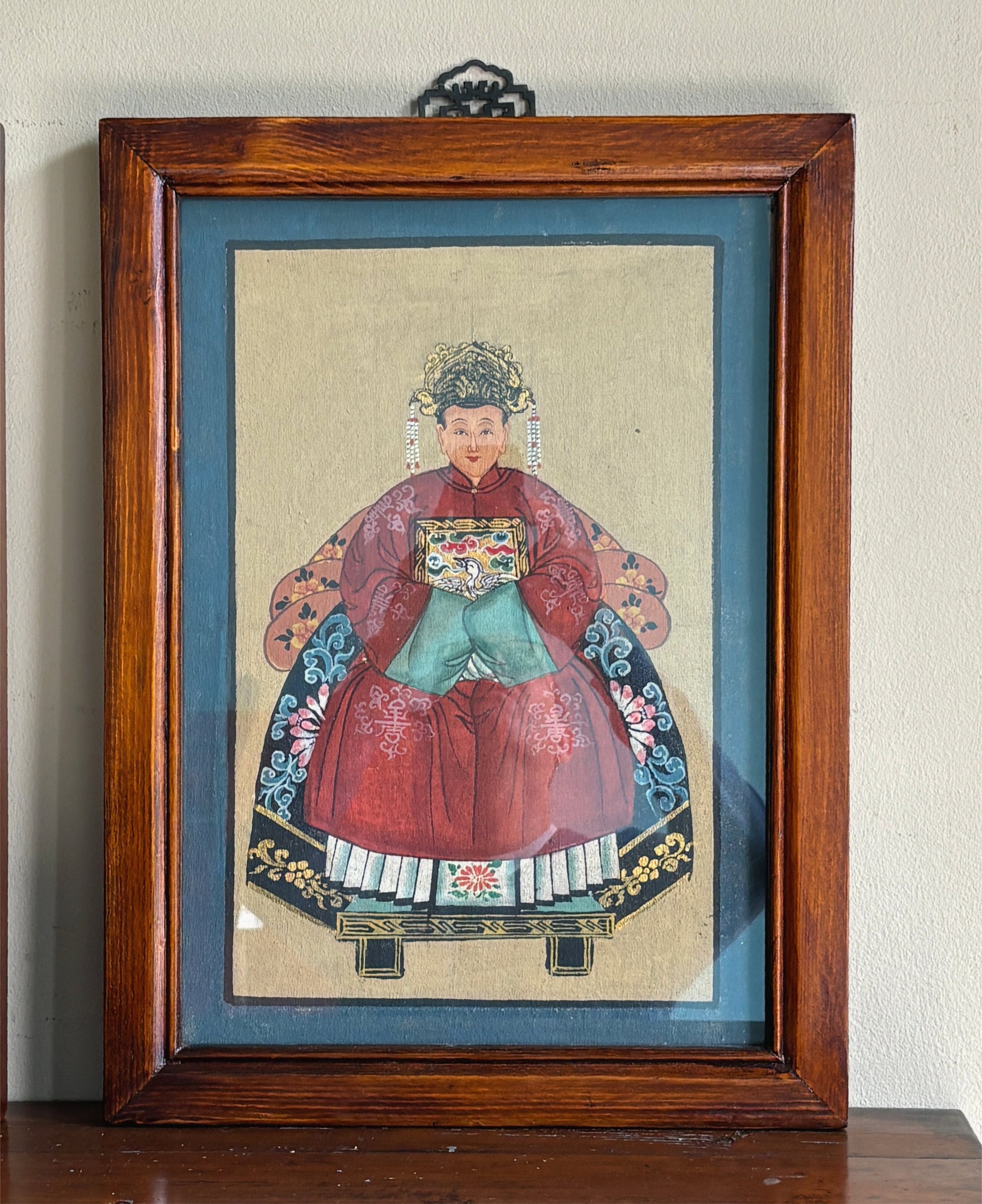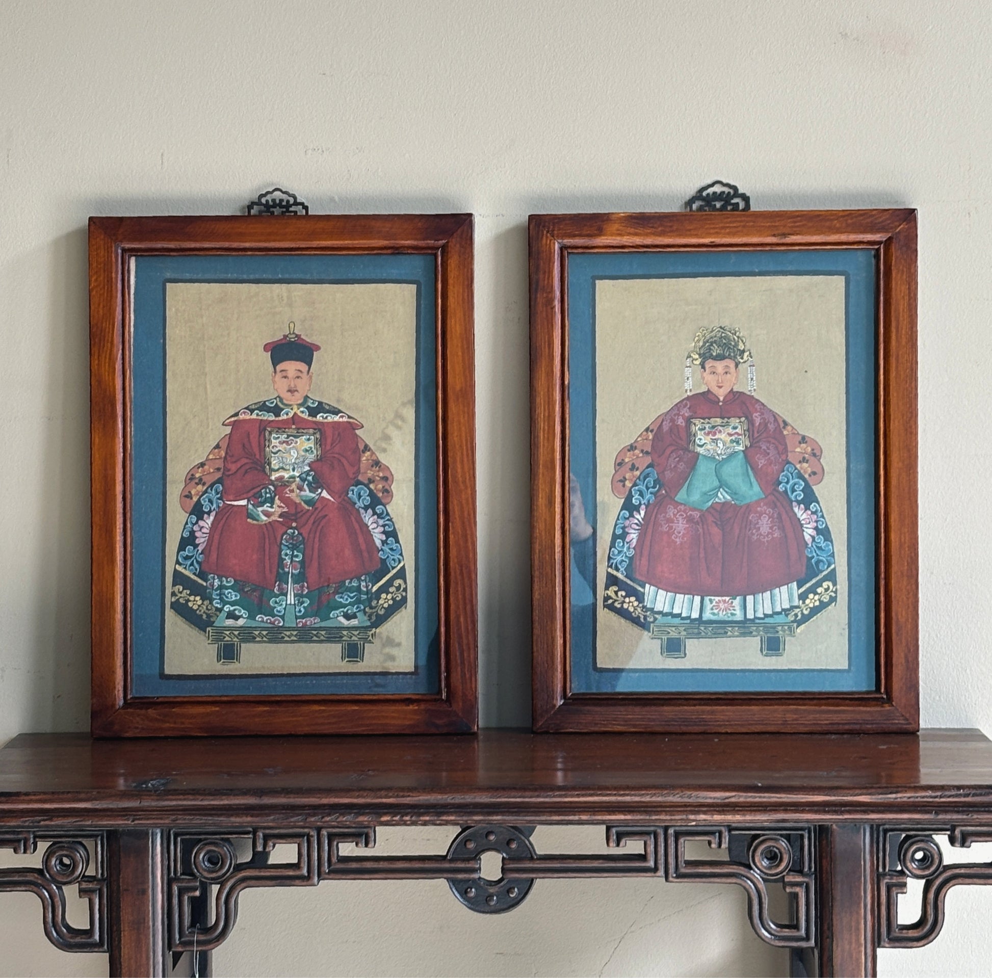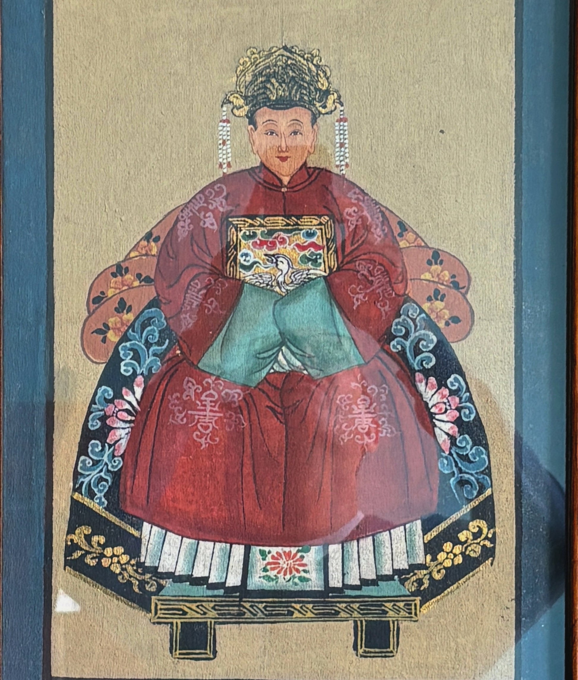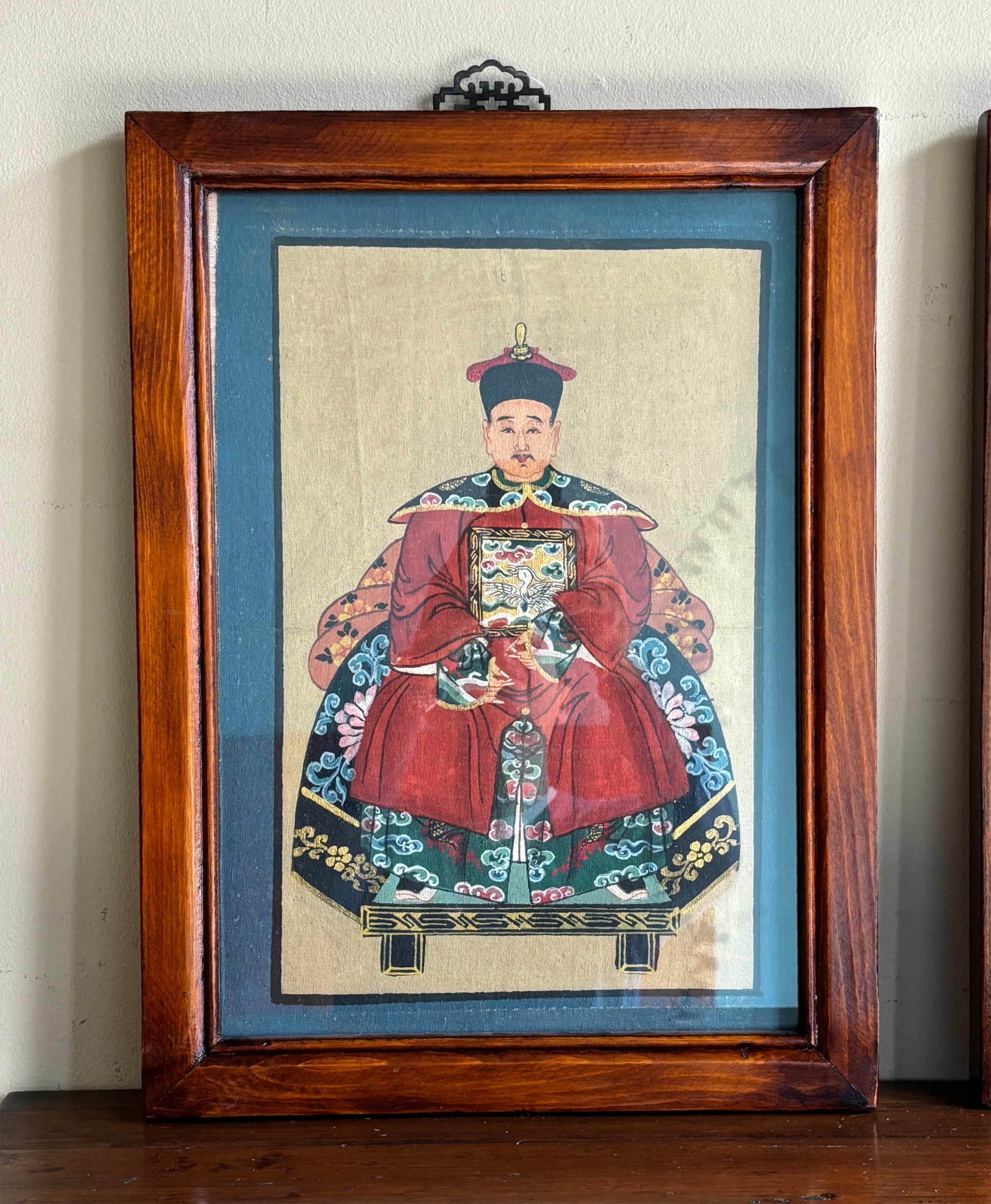 Delizioso dipinto cinese con raffigurazione dell'imperatore e dell'imperatrice, incorniciato in semplice quadretto. Il prezzo indicato è per singolo quadro.