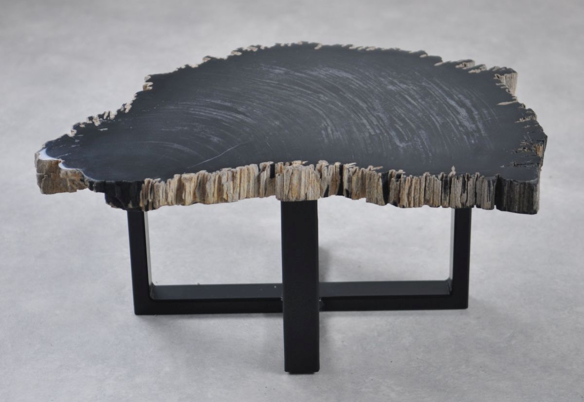 Questo tavolino in legno pietrificato unisce design e storia. Il piano, ricavato da un albero vissuto 20 milioni di anni fa, mostra colori unici frutto della naturale mineralizzazione nel tempo.