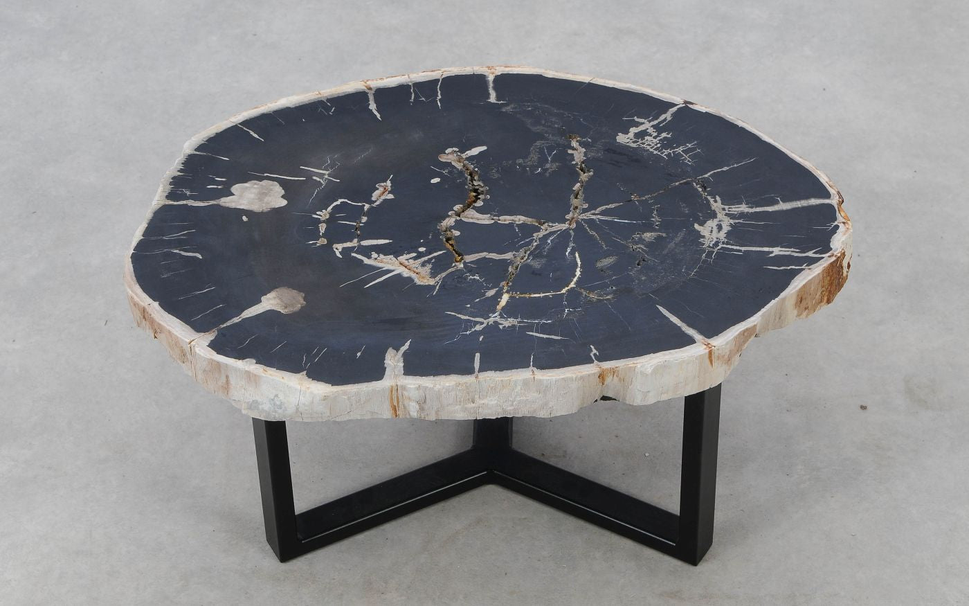 Questo tavolino in legno pietrificato unisce design e storia. Il piano, ricavato da un albero vissuto 20 milioni di anni fa, mostra colori unici frutto della naturale mineralizzazione nel tempo.