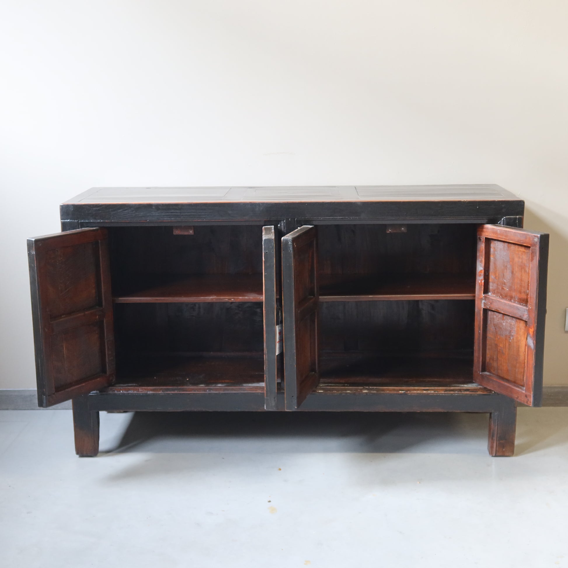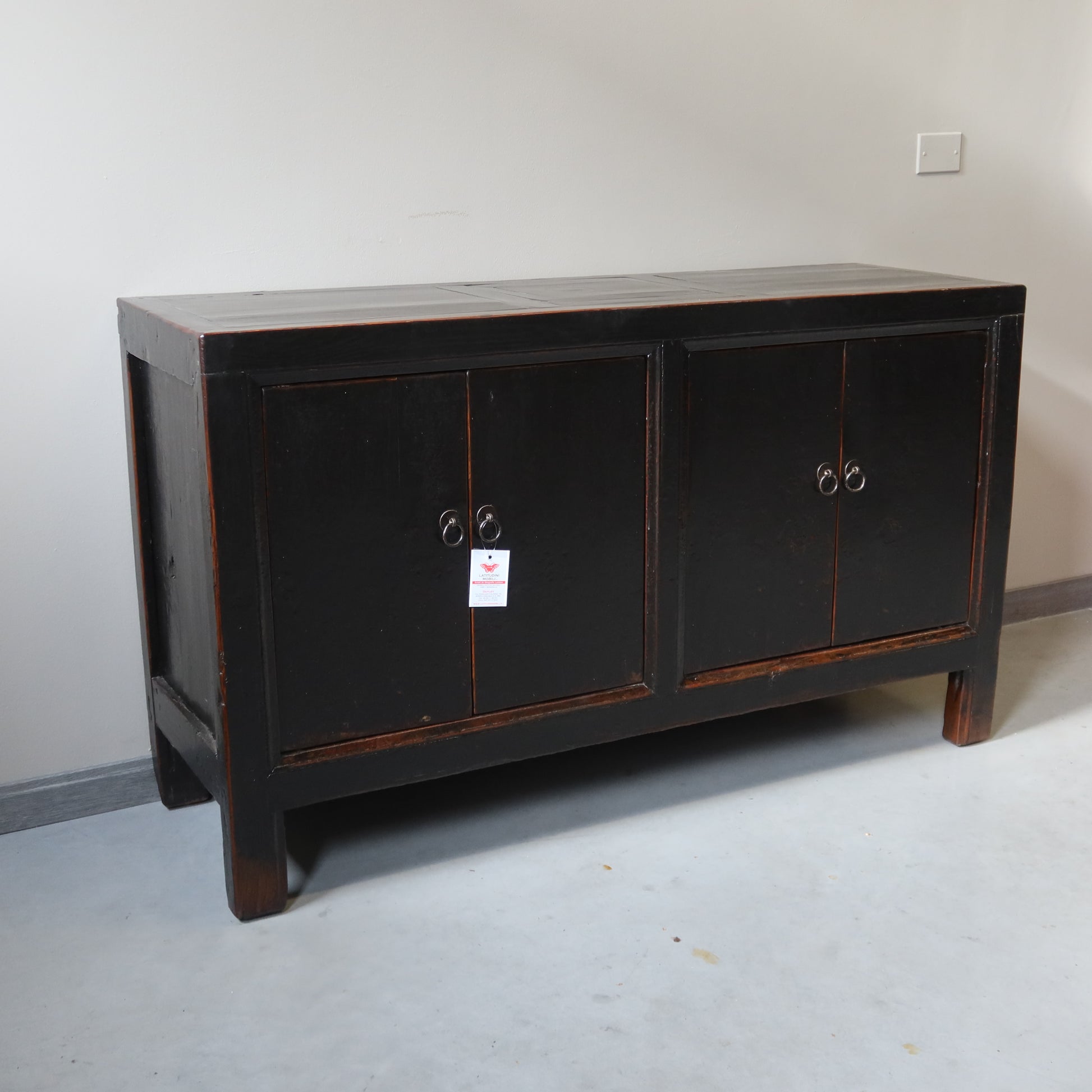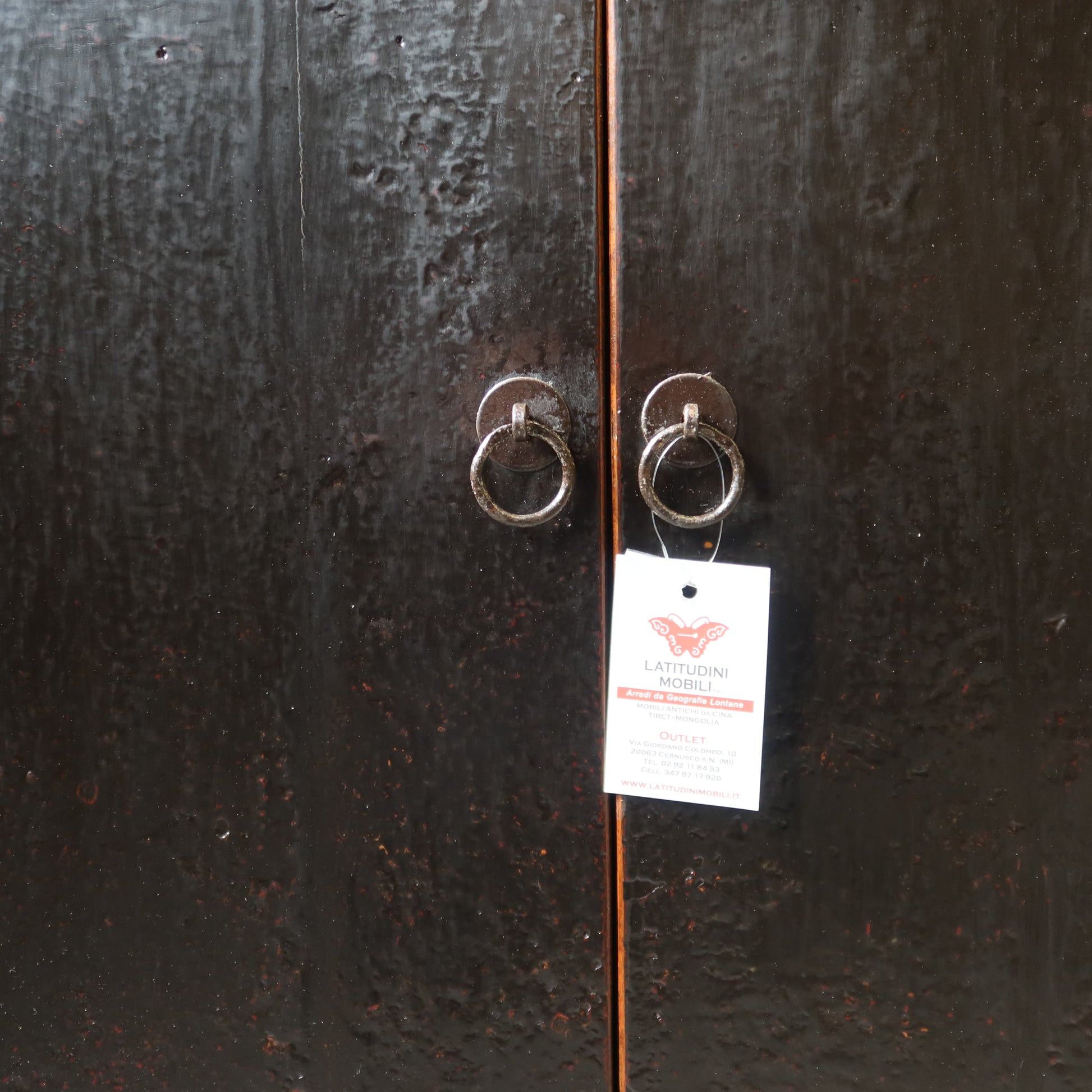 Rigorosa madia etnica in lacca scura testa di moro a quattro ante.