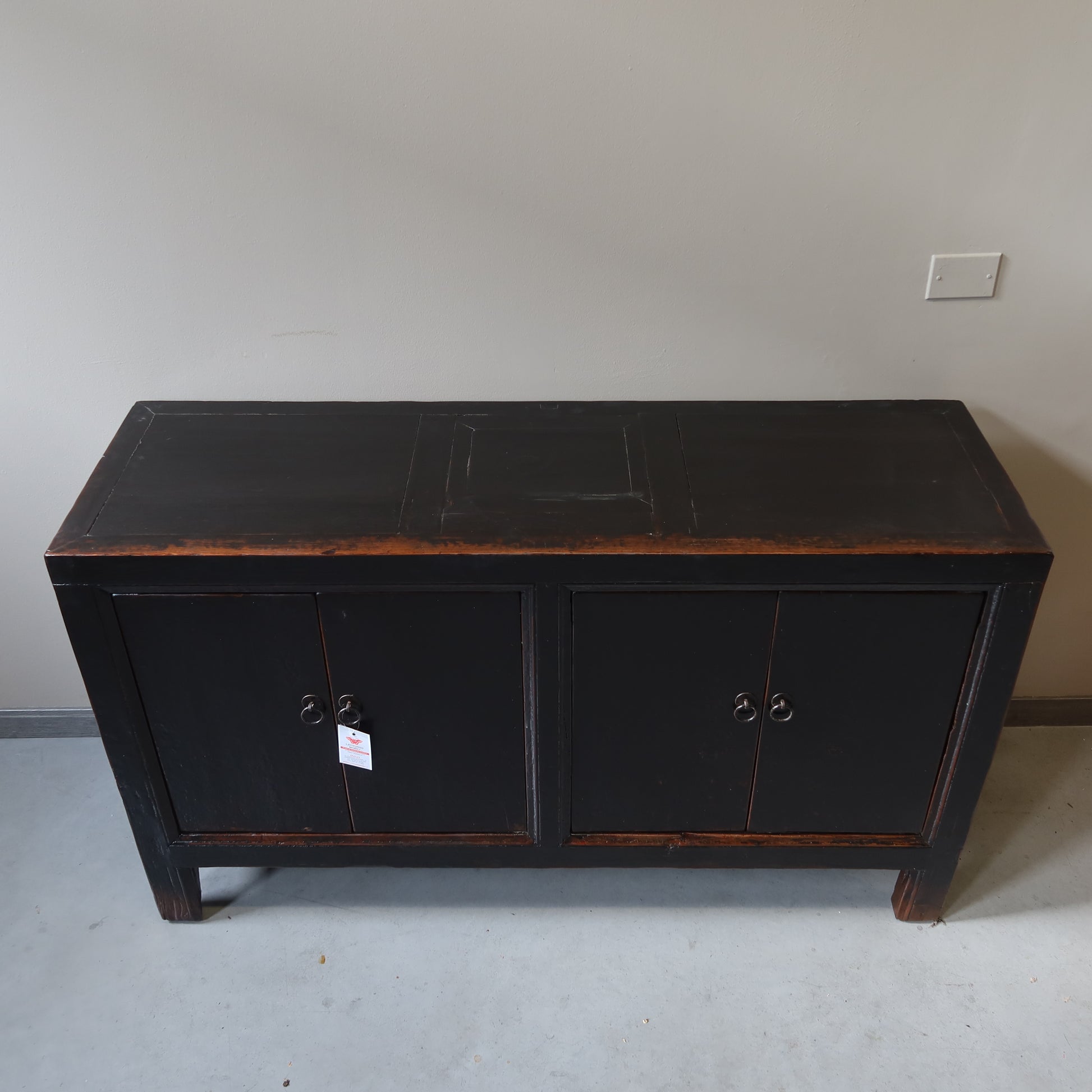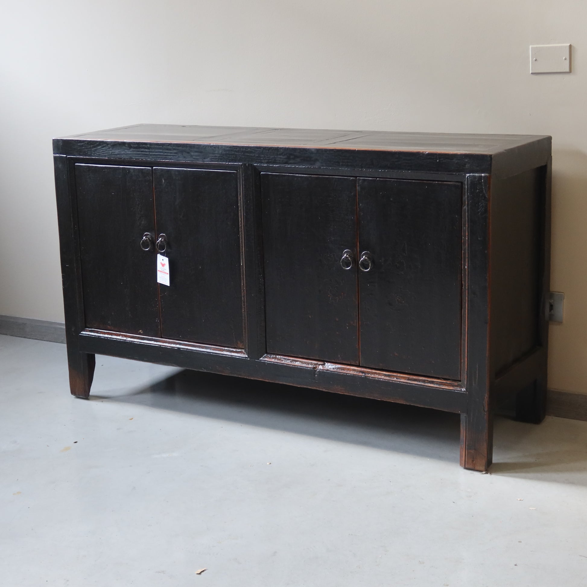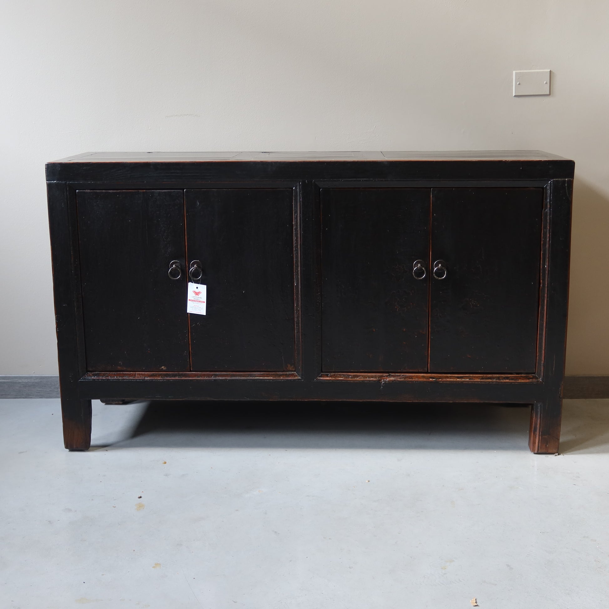 Rigorosa madia etnica in lacca scura testa di moro a quattro ante.