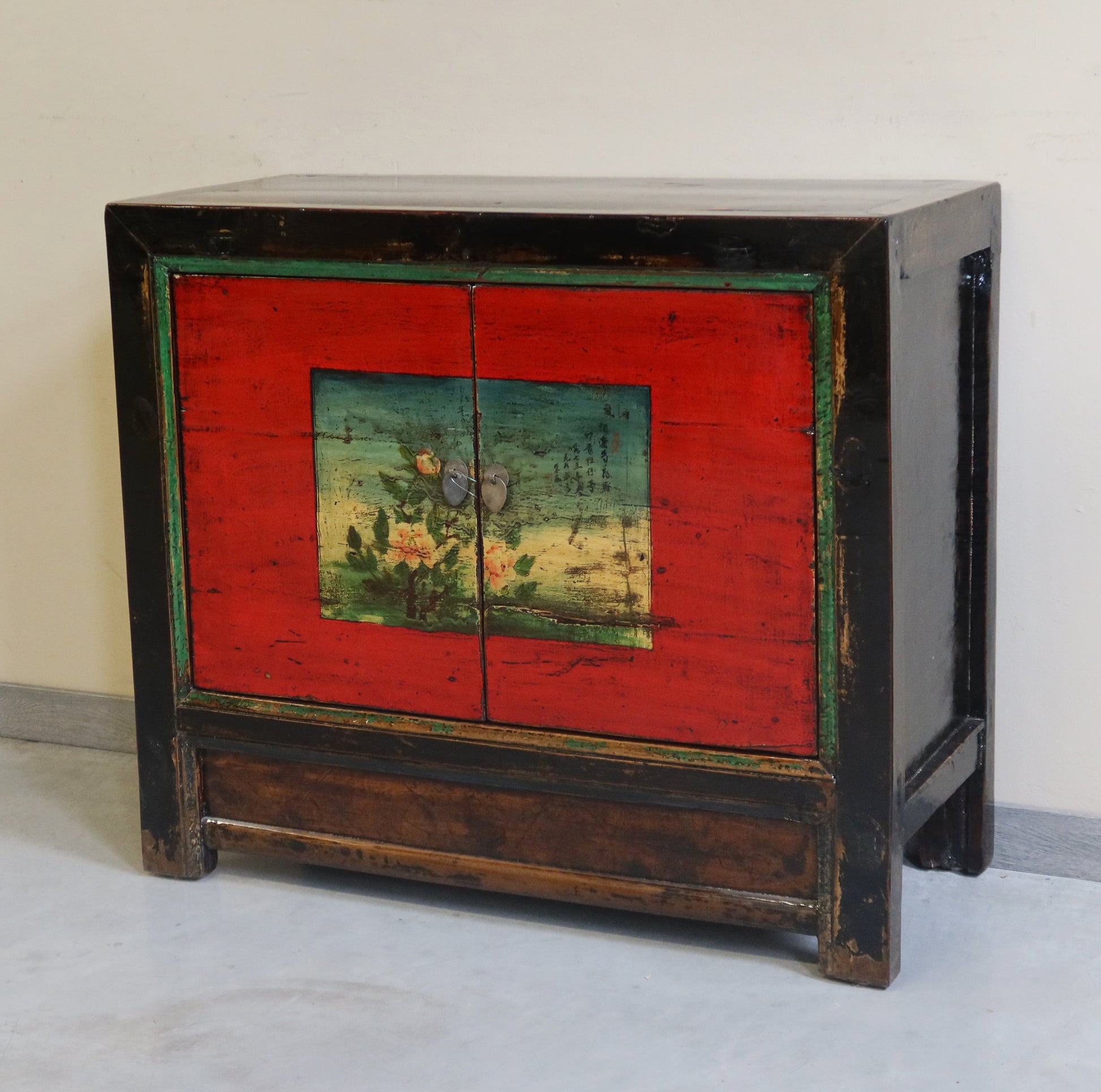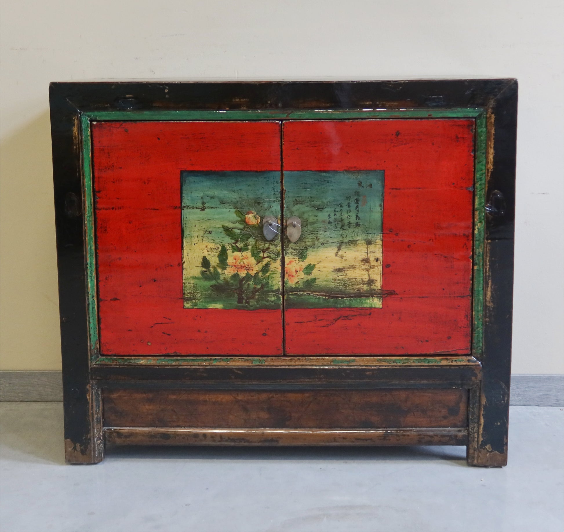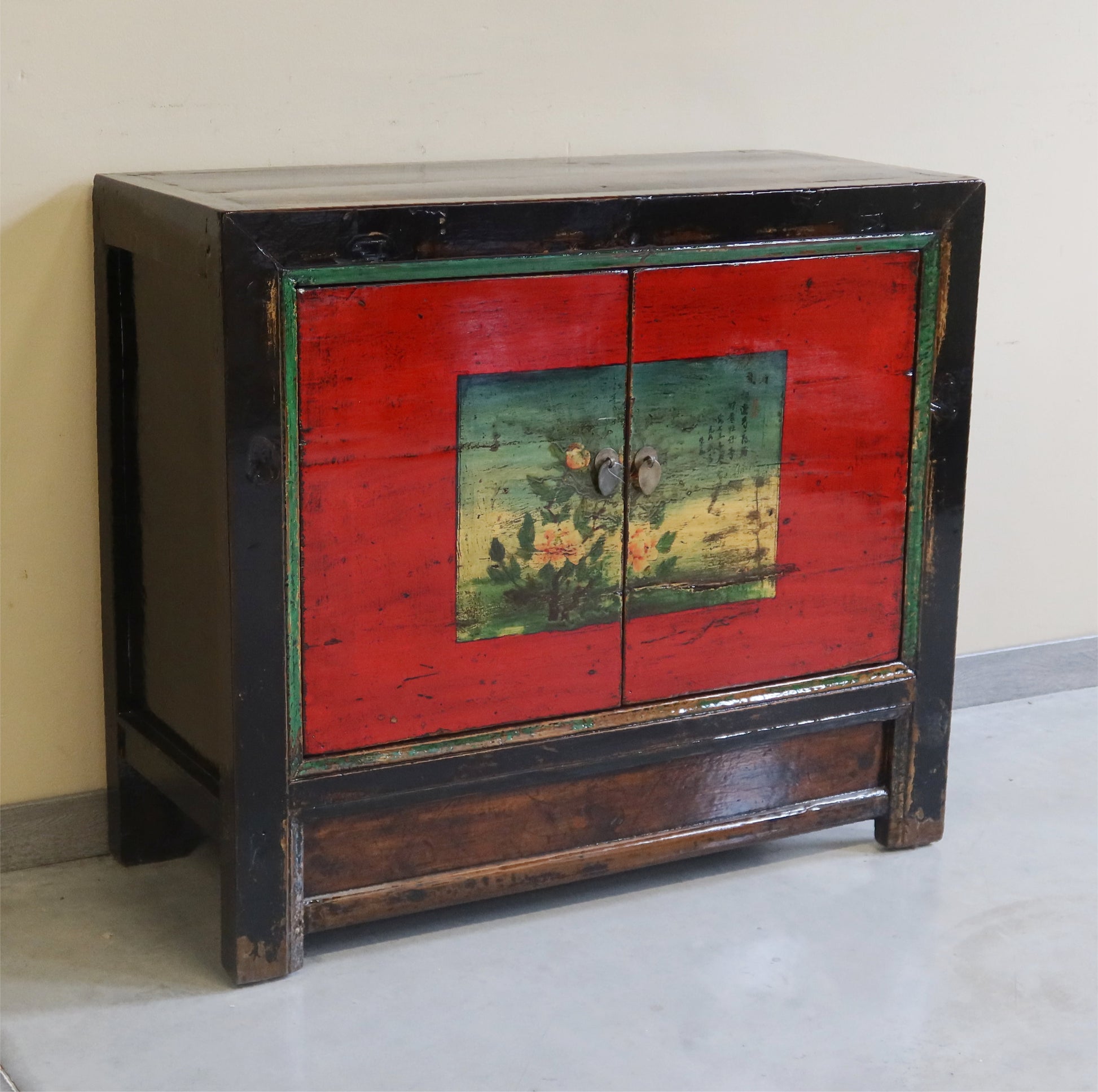 Piccola madia mongola con un pannello decorato suddiviso in due ante.