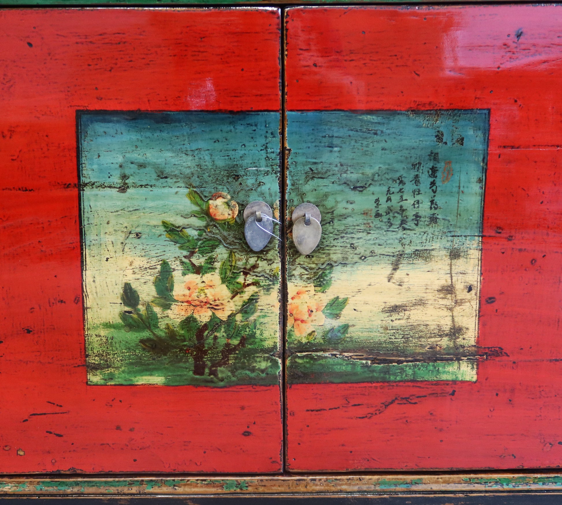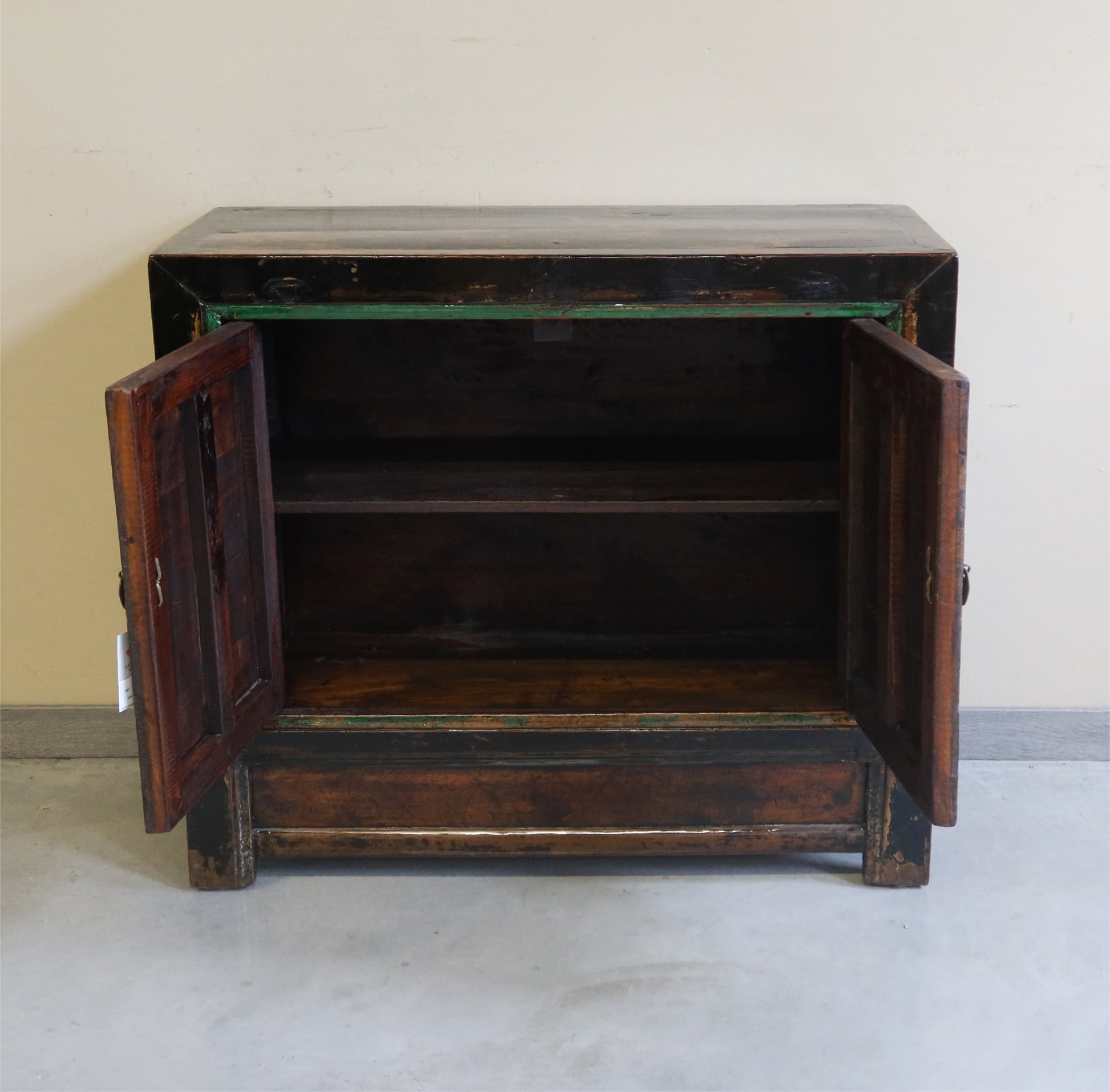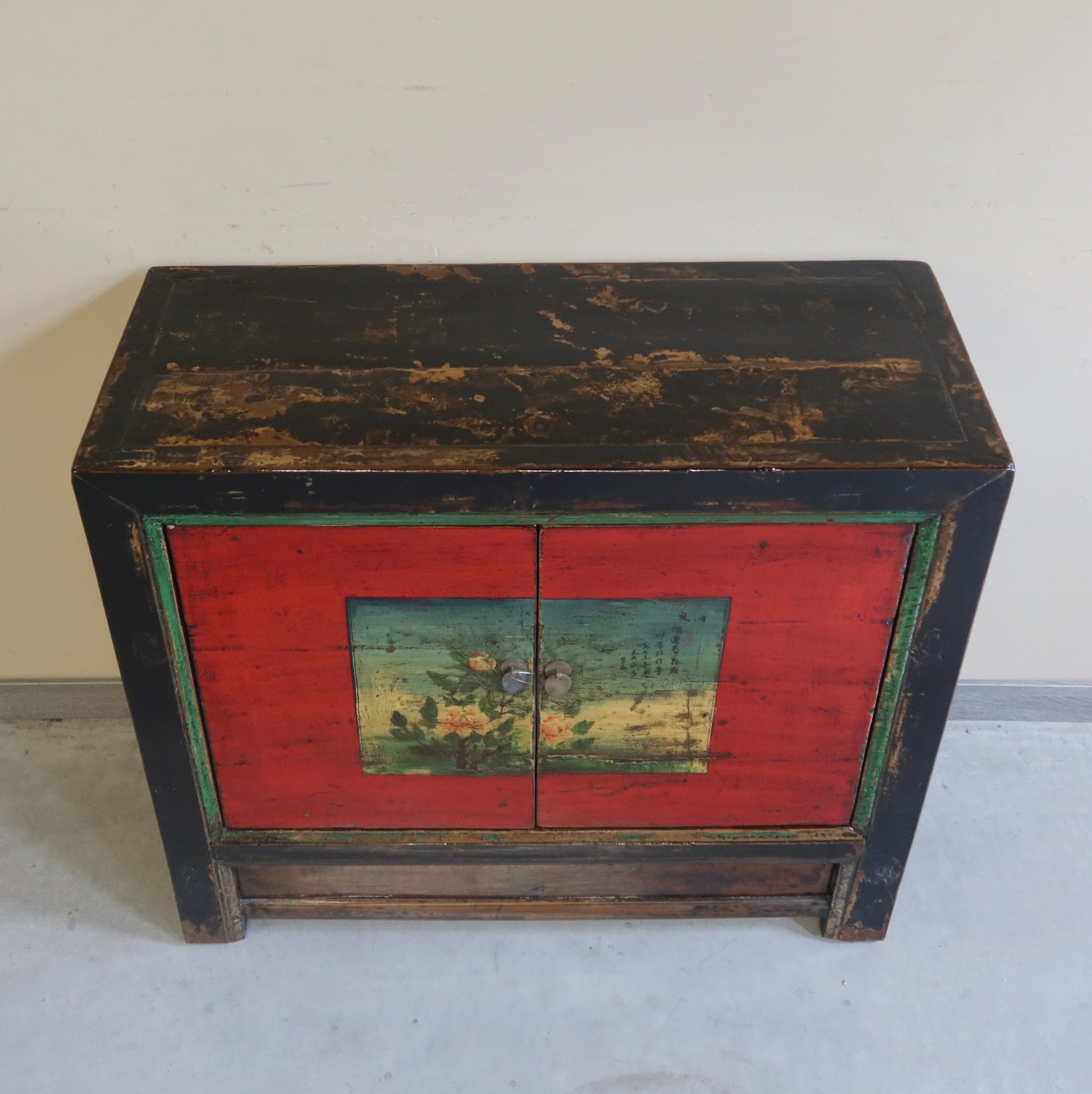 Piccola madia mongola con un pannello decorato suddiviso in due ante.