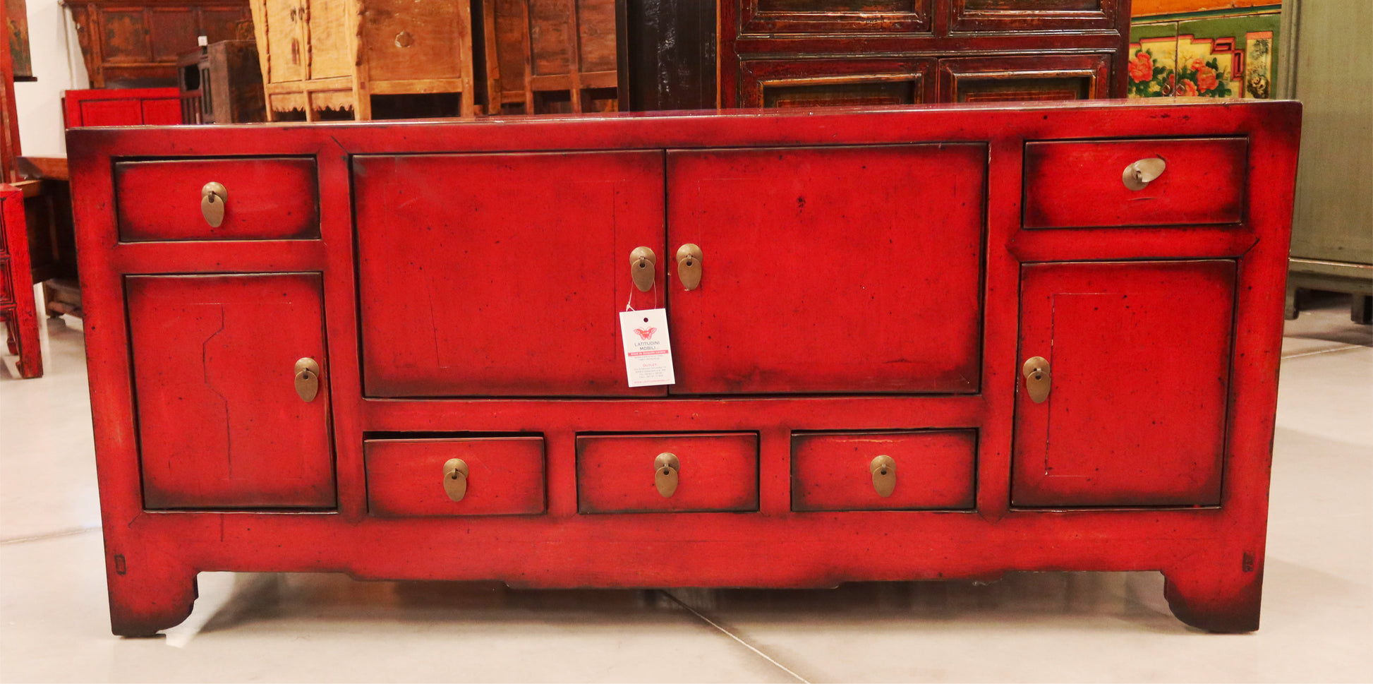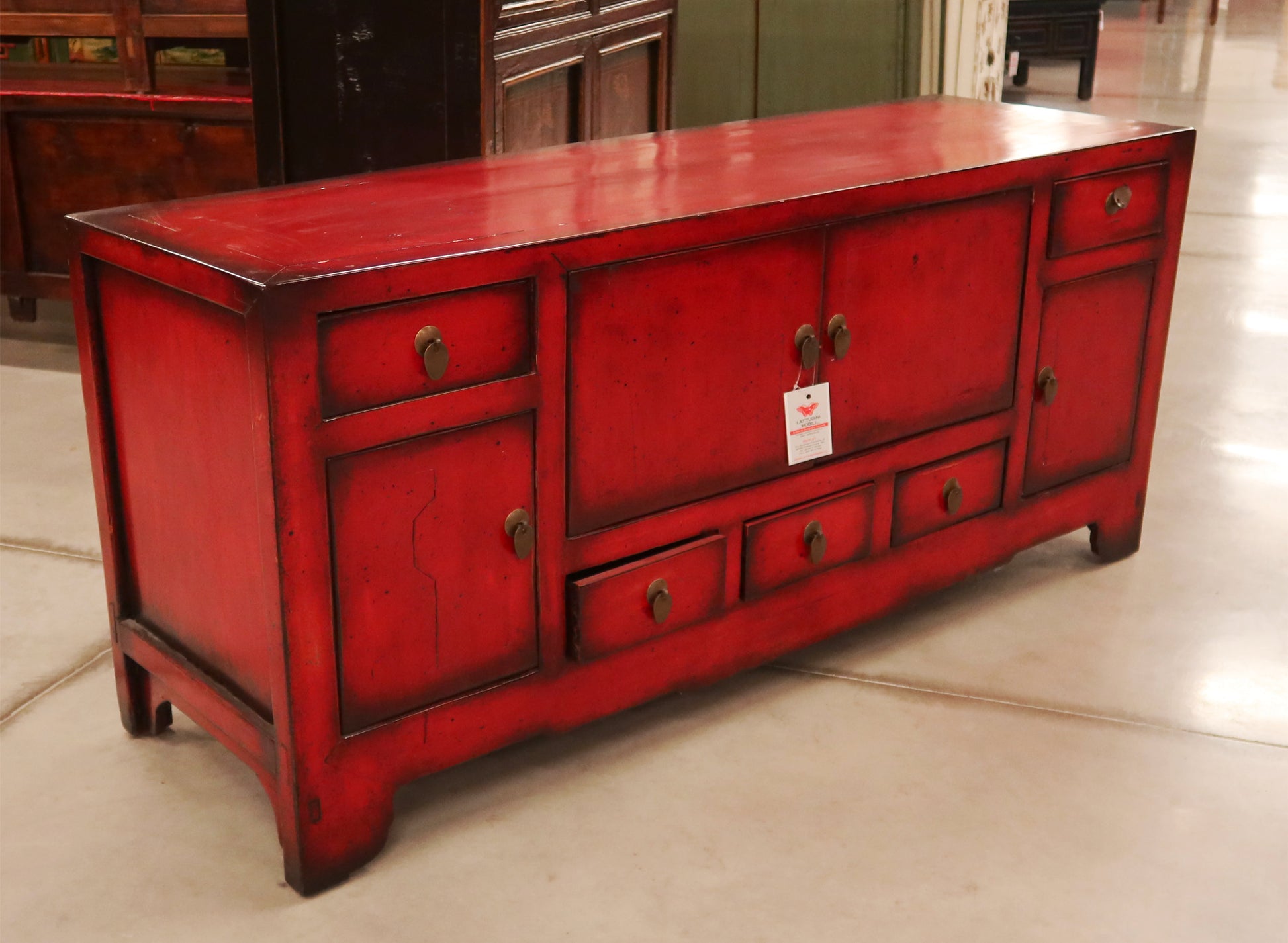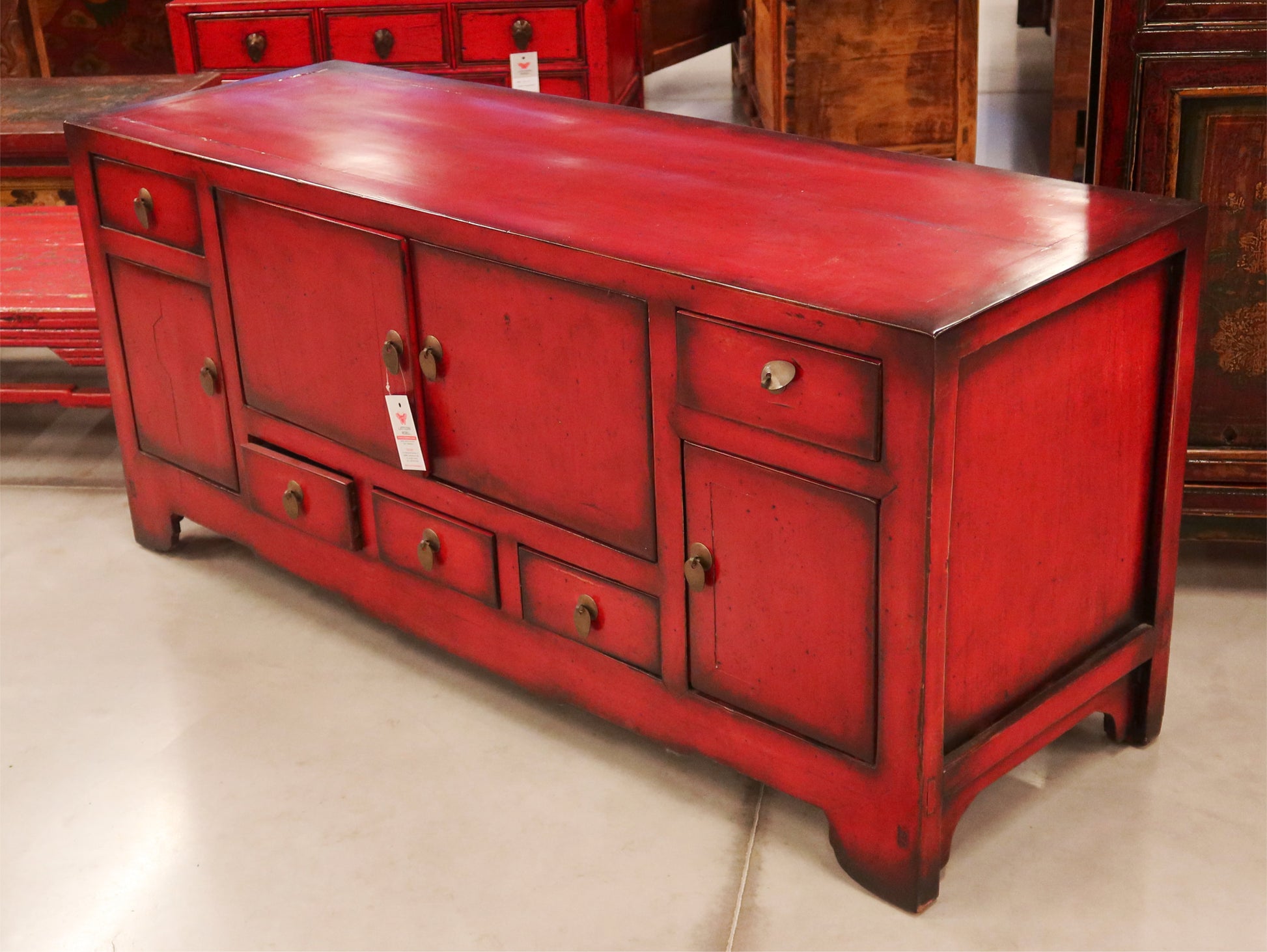MOBILE PORTA-TV ETNICO IN LACCA ROSSA