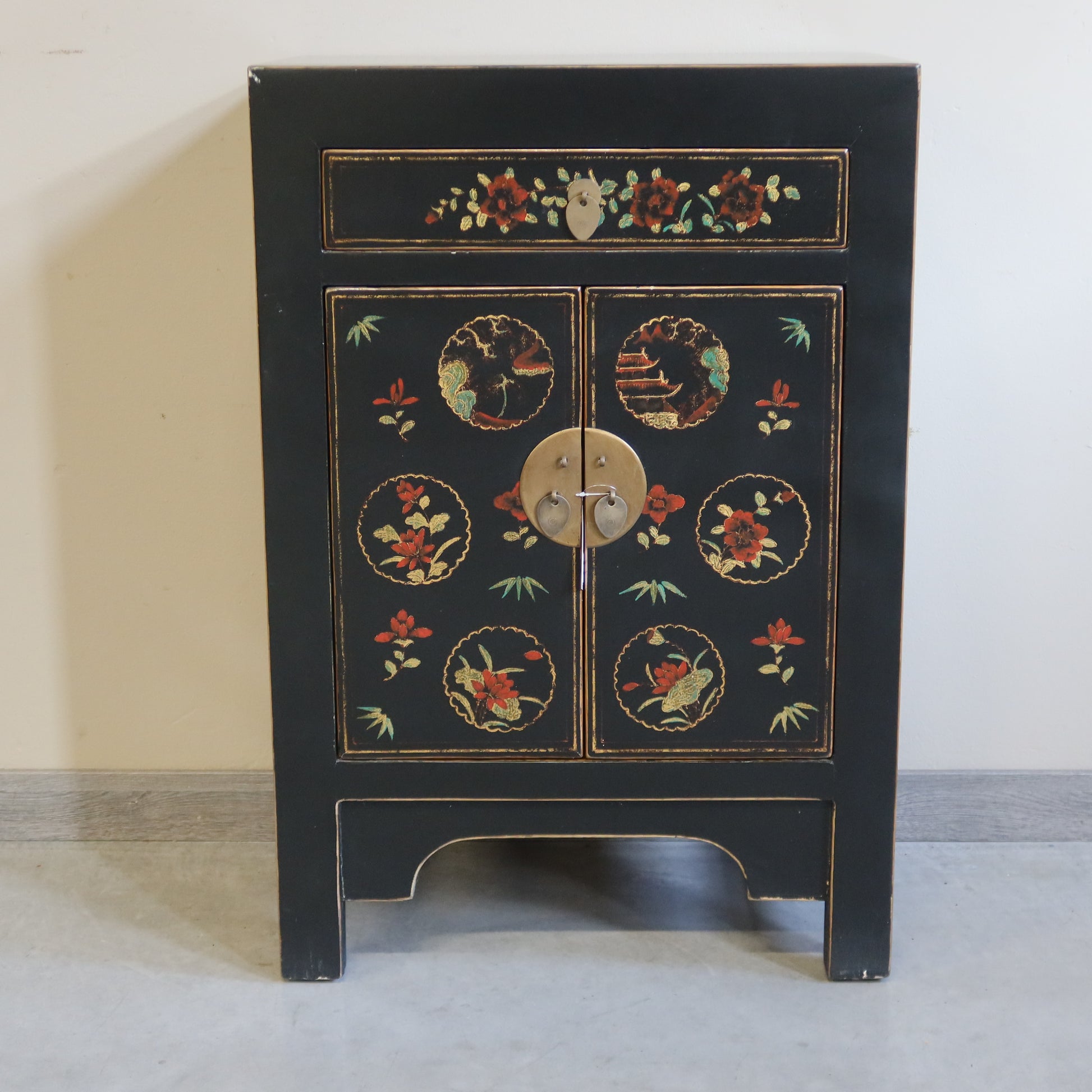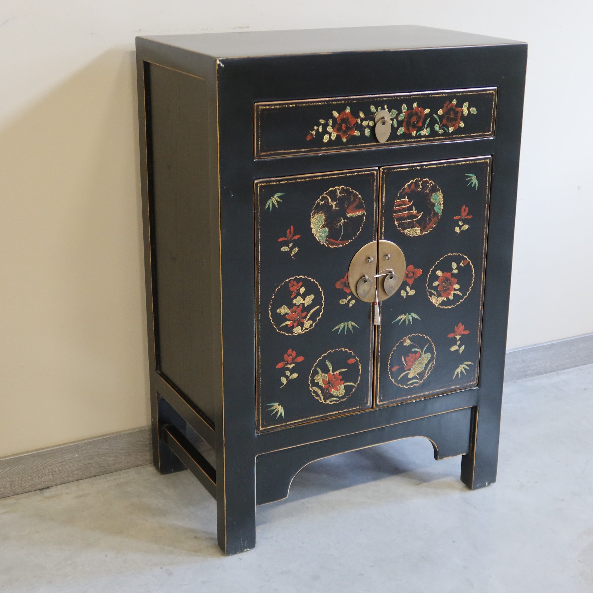 Caratteristico stipo cinese in lacca nera decorata. Provenienza regione dello Shanxi.