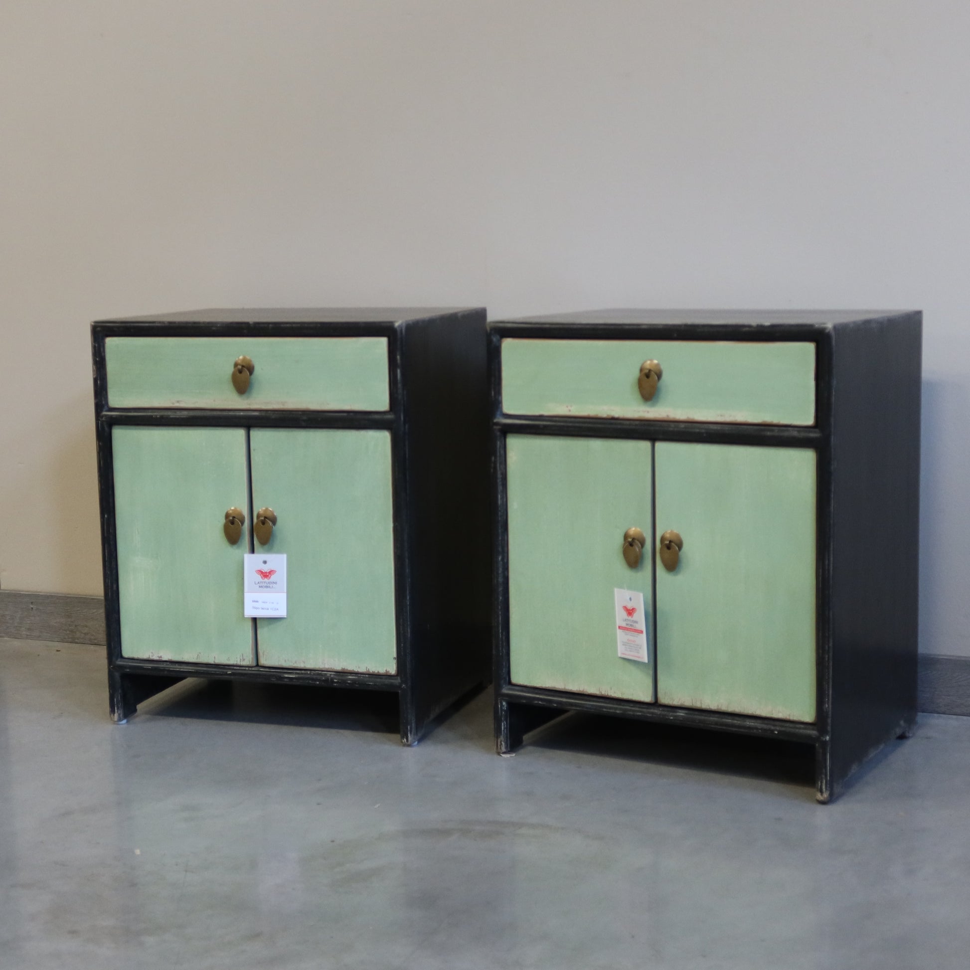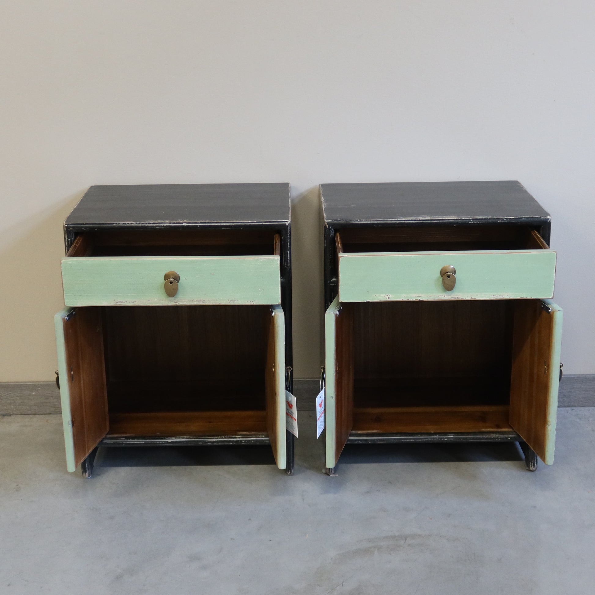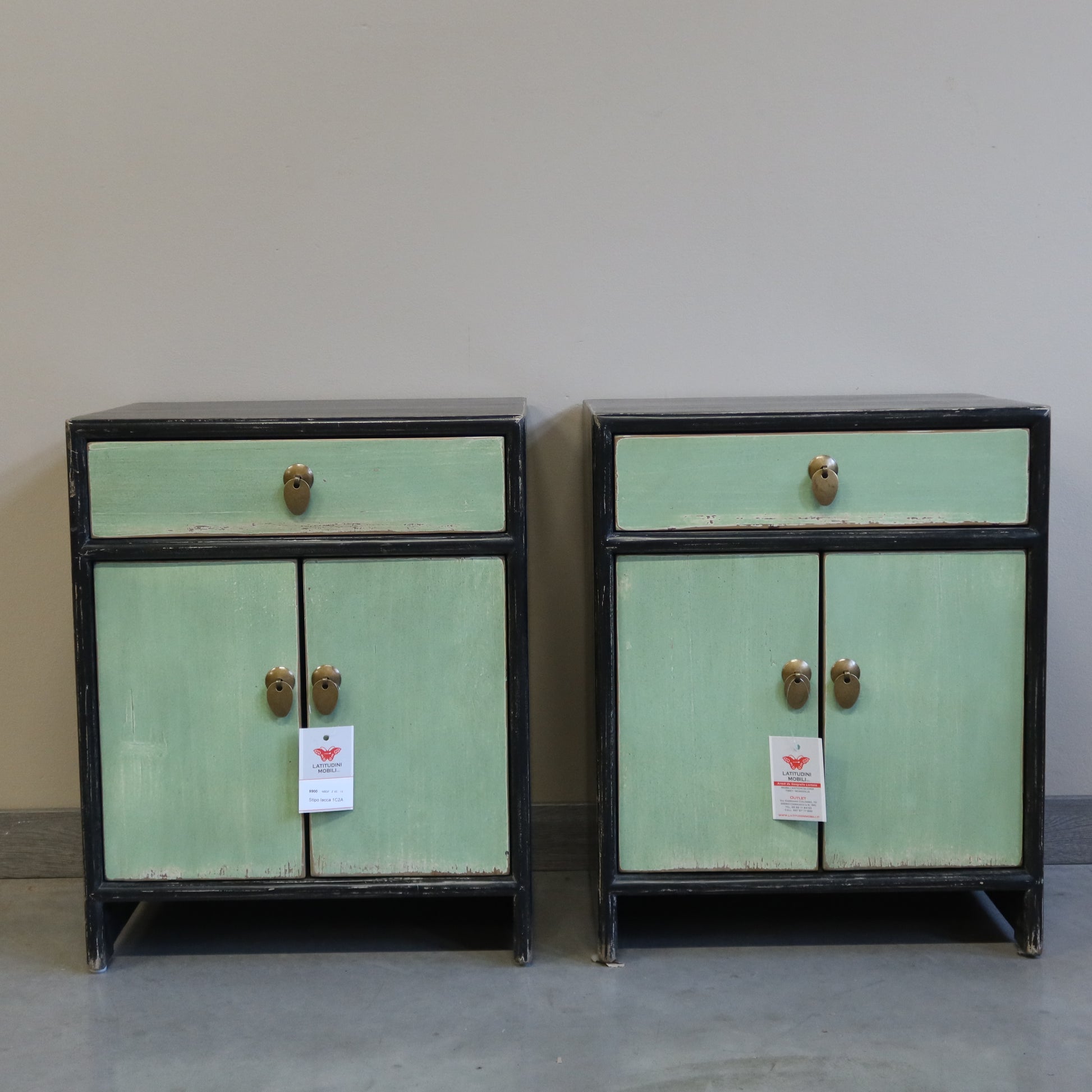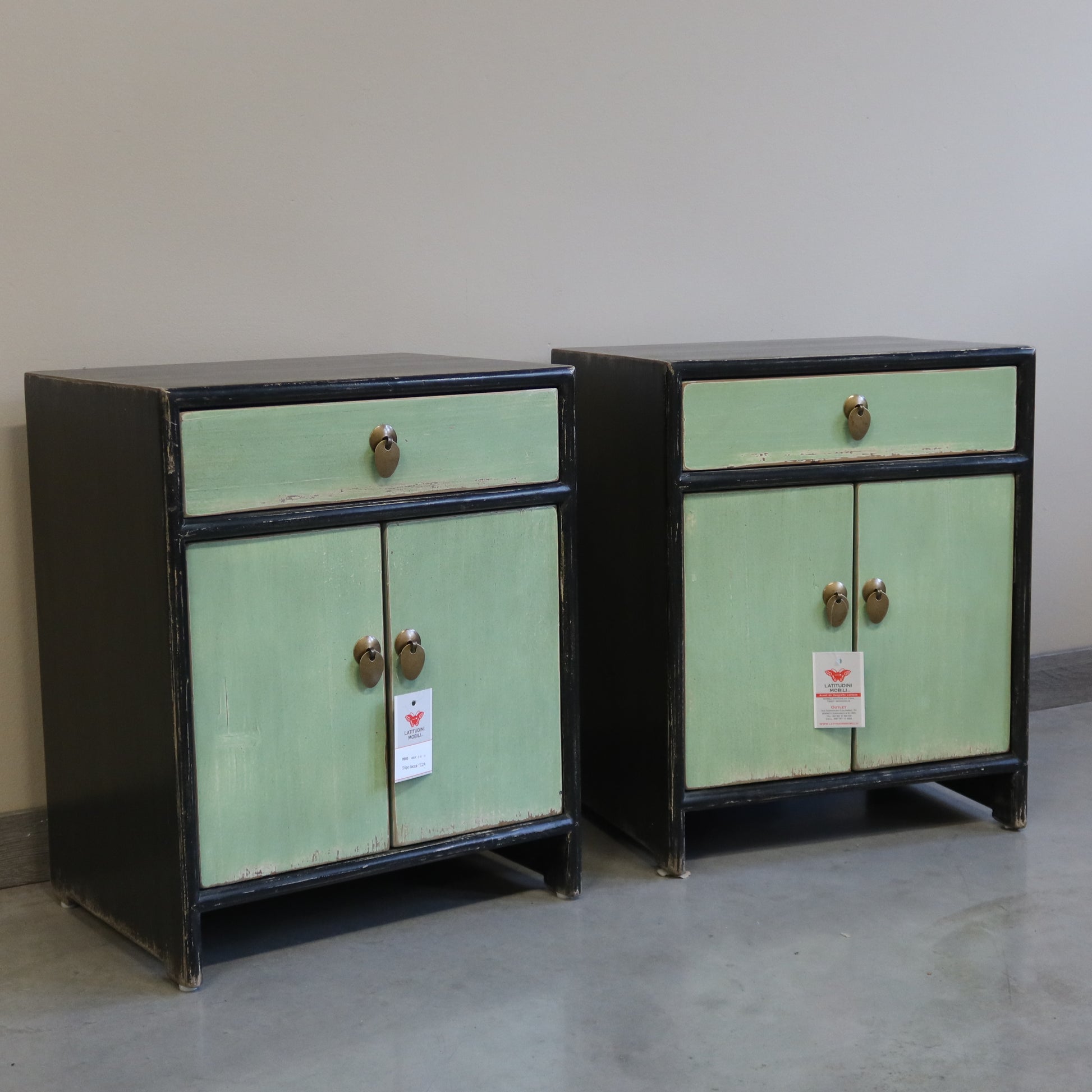 Rigoroso stipetto in lacca bicolore con cassetto e due antine. IL PREZZO INDICATO E' PER SINGOLO OGGETTO.