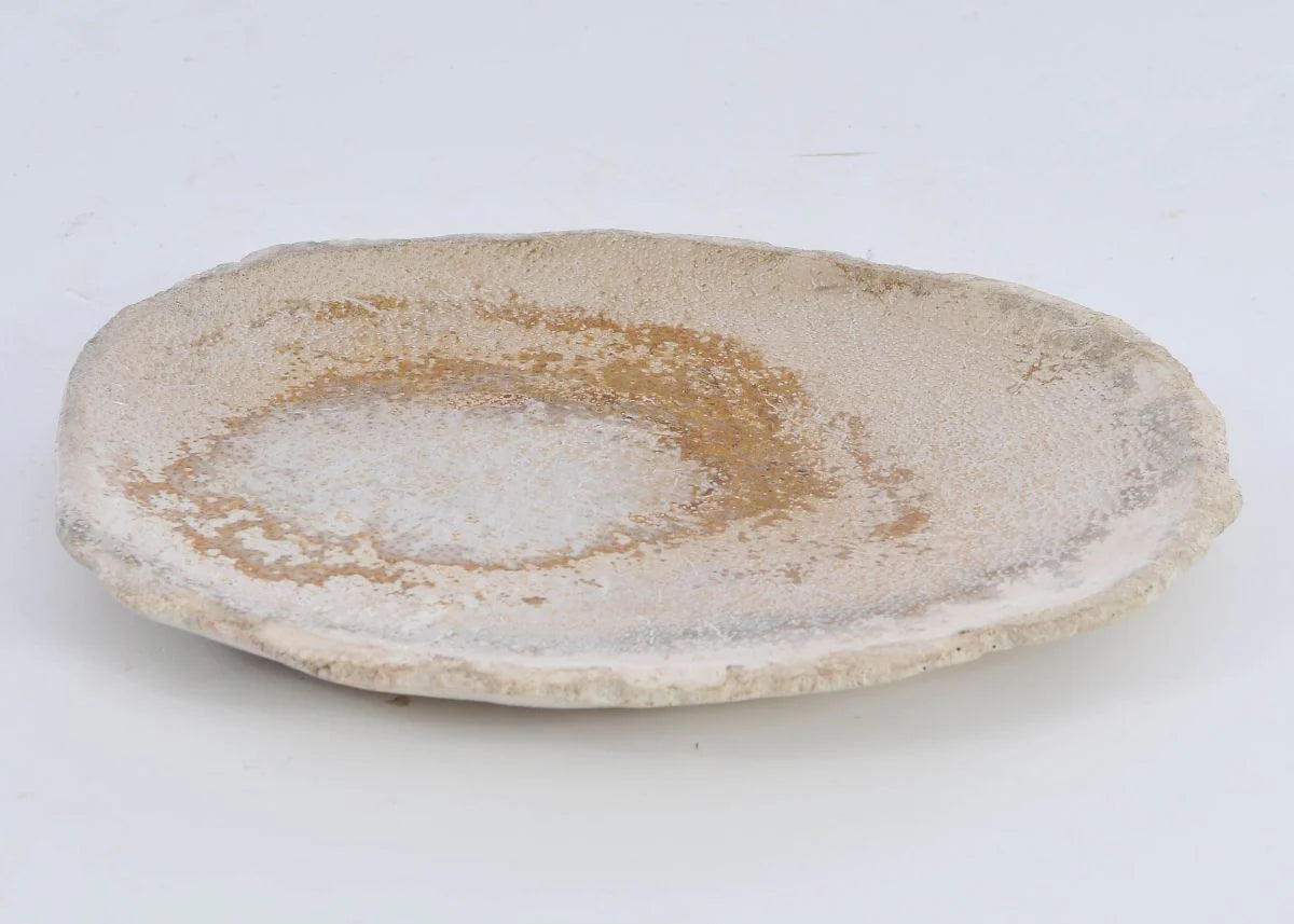 Un raffinato oggetto d'arredo in legno pietrificato, perfetto come vassoio d'ingresso per chiavi, gioielli o piccoli oggetti. La sua superficie levigata e le tonalità naturali donano un'eleganza unica e sofisticata.