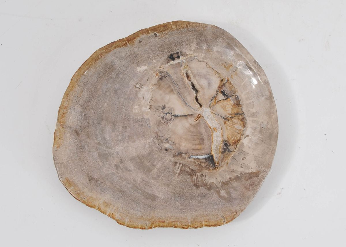 Un raffinato oggetto d'arredo in legno pietrificato, perfetto come vassoio d'ingresso per chiavi, gioielli o piccoli oggetti. La sua superficie levigata e le tonalità naturali donano un'eleganza unica e sofisticata.