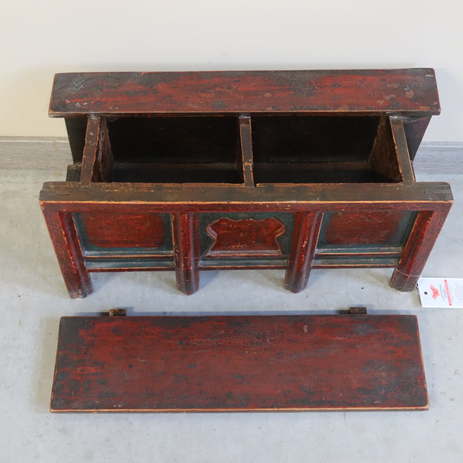 Piccolo mobiletto, una sorta di cassapanchina mignon con apertura dall'alto di mezzo ripiano