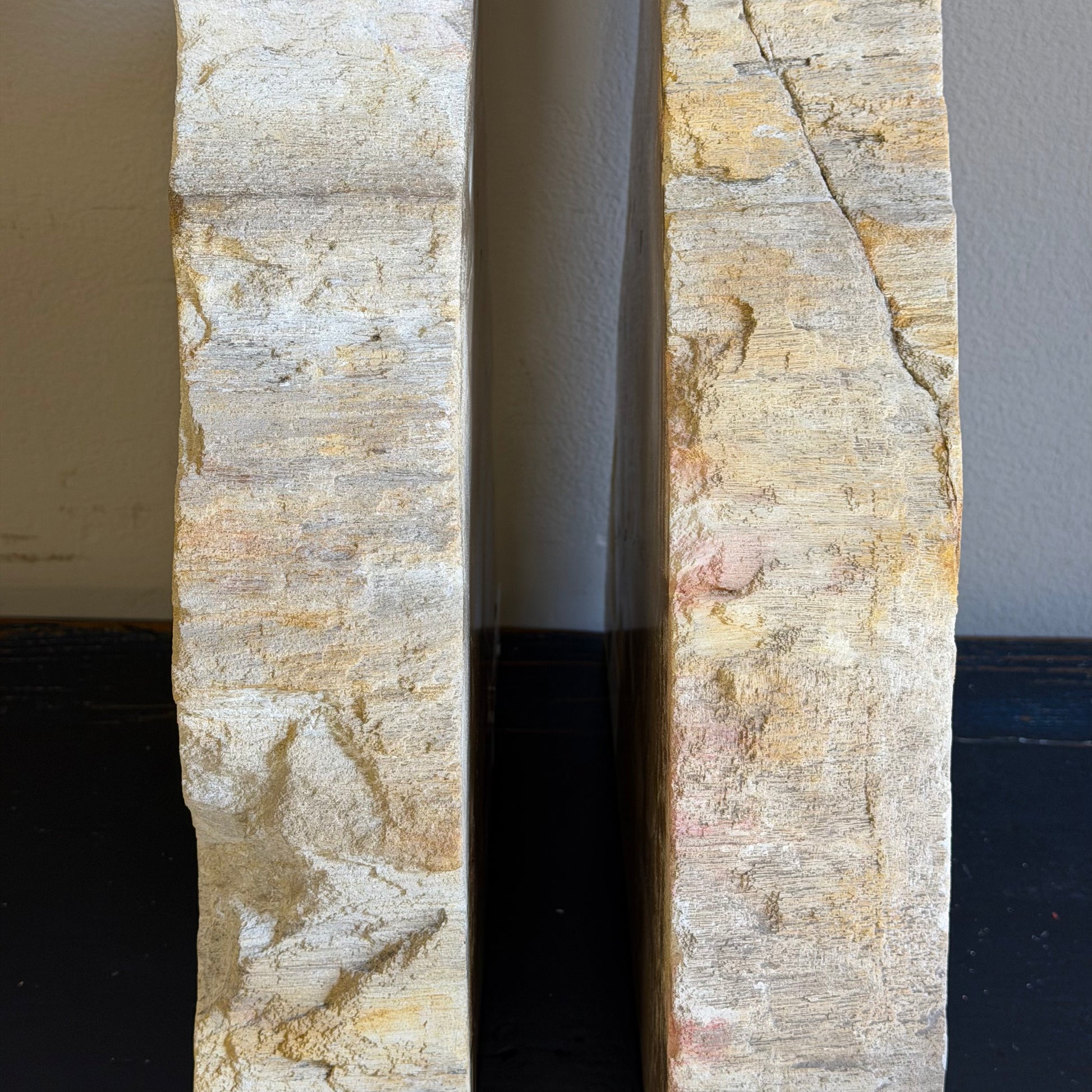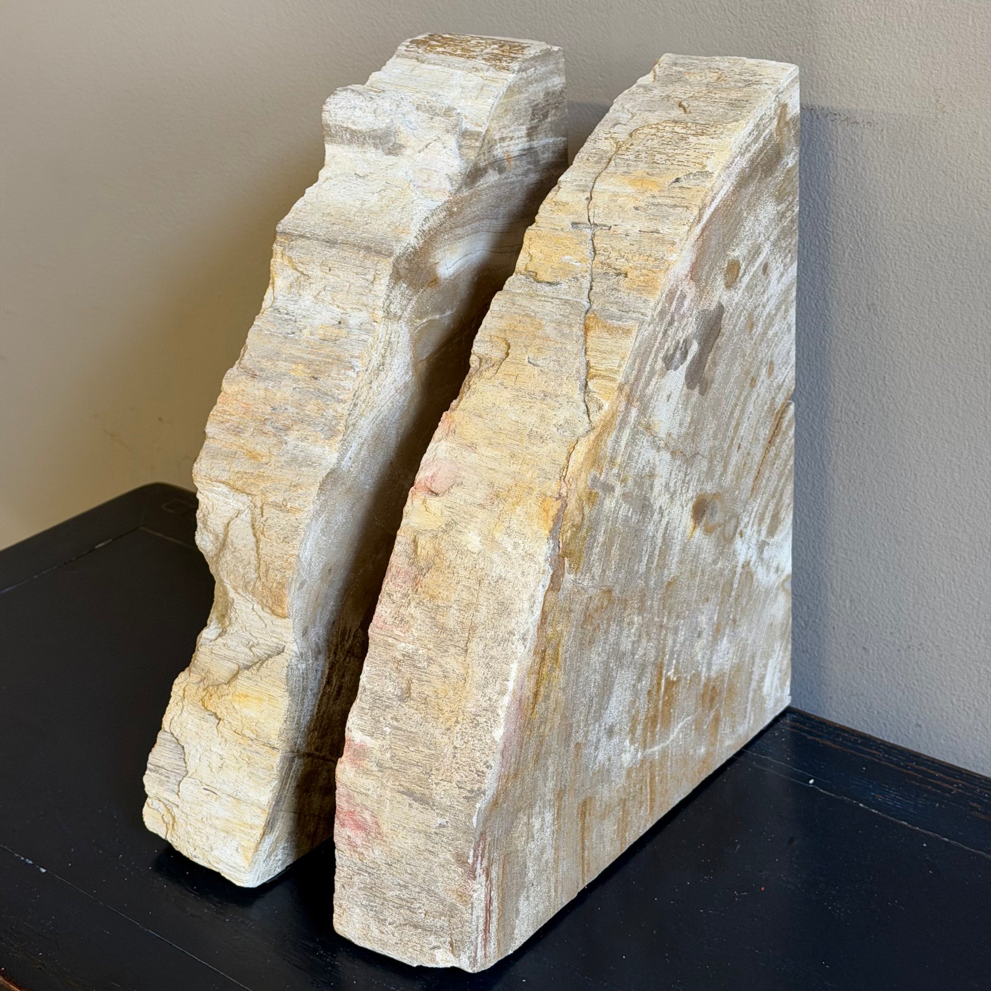 Realizzato in legno pietrificato, questo fermalibro offre stabilità e un design autentico.