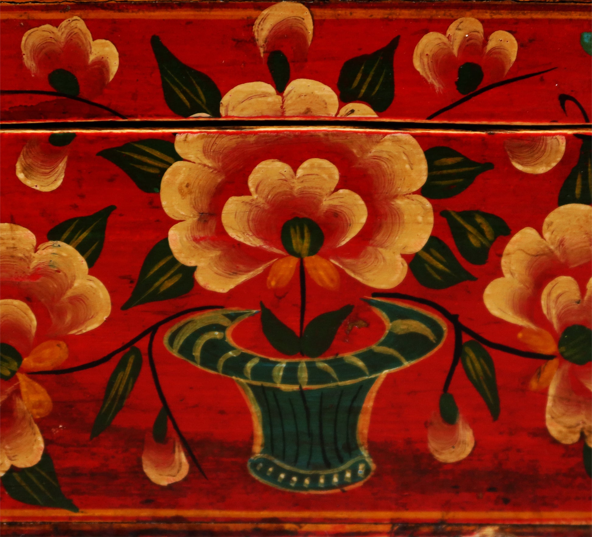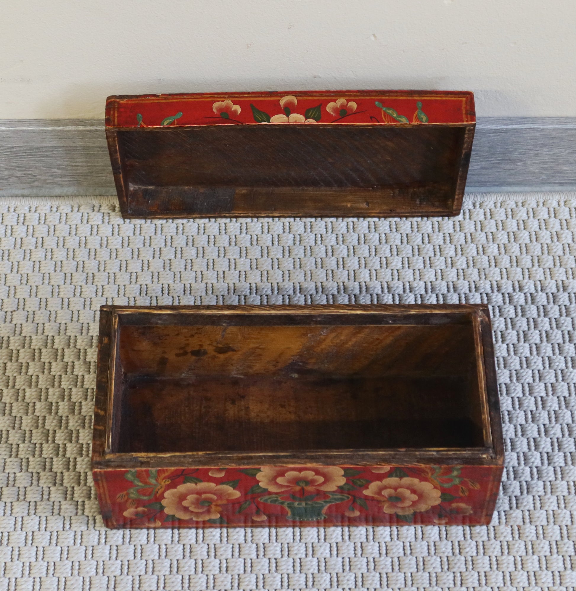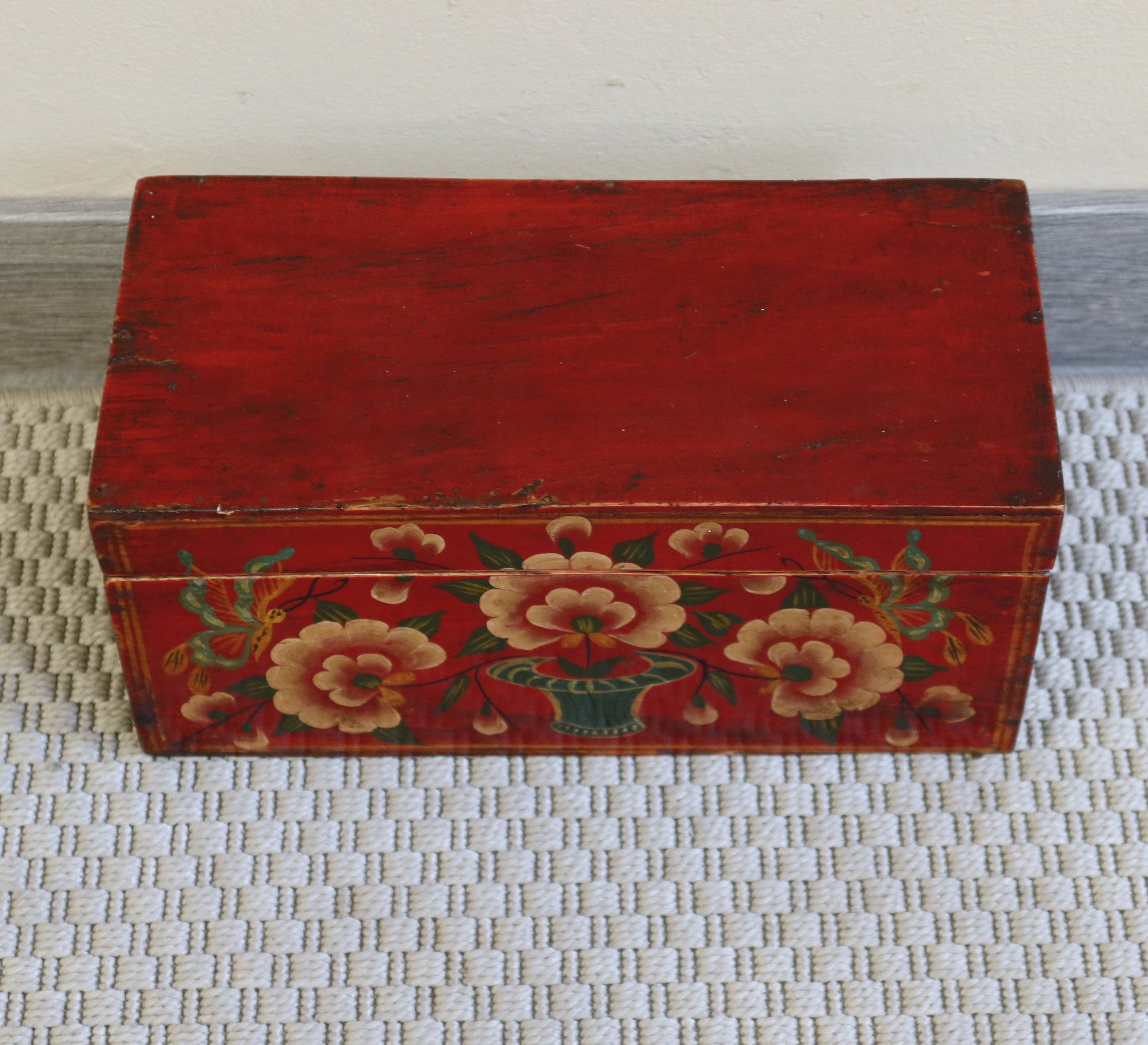 Semplice scatola a bauletto in lacca con decorazione policrome sul fronte. Provenienza regione della Mongolia.