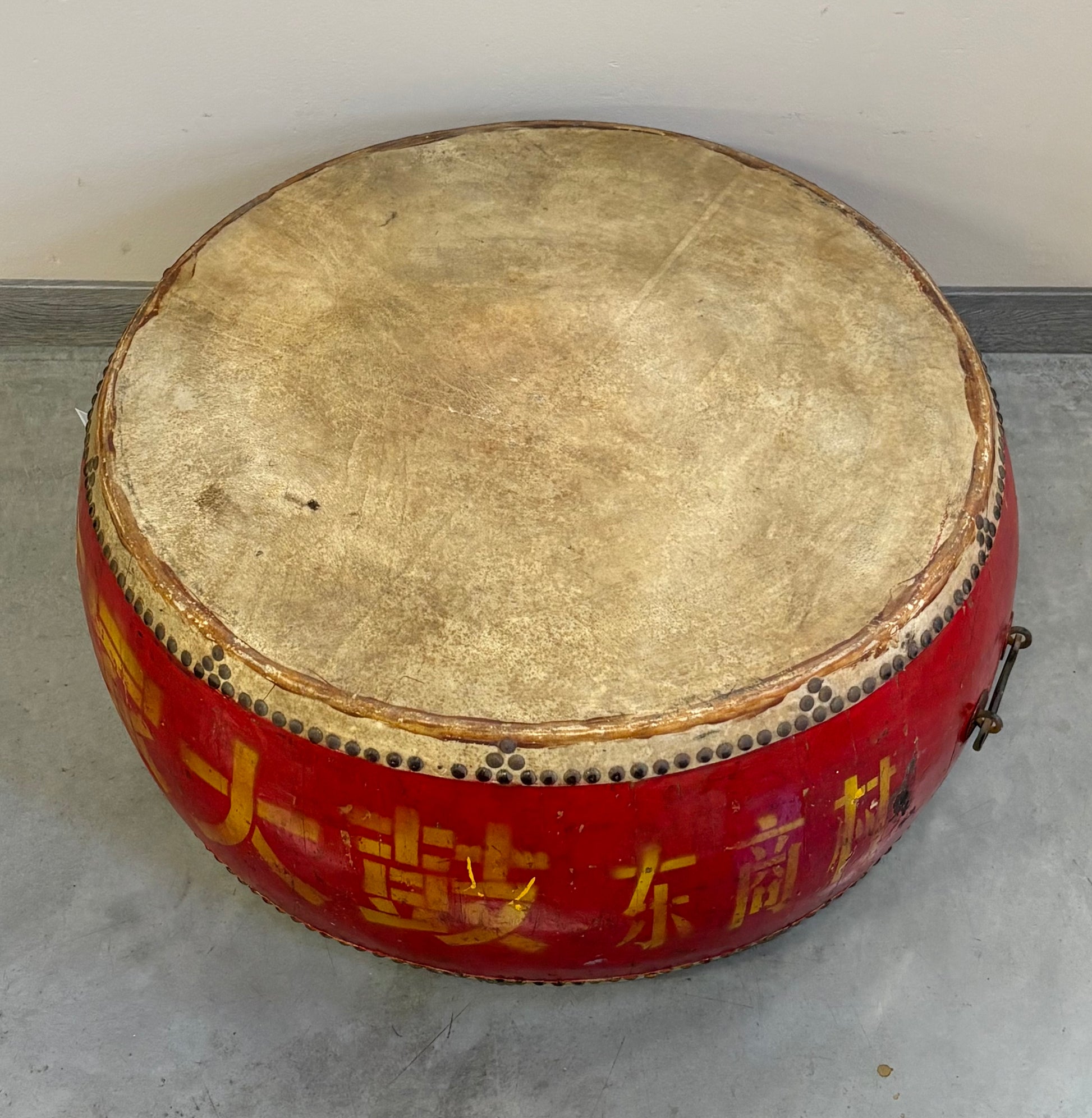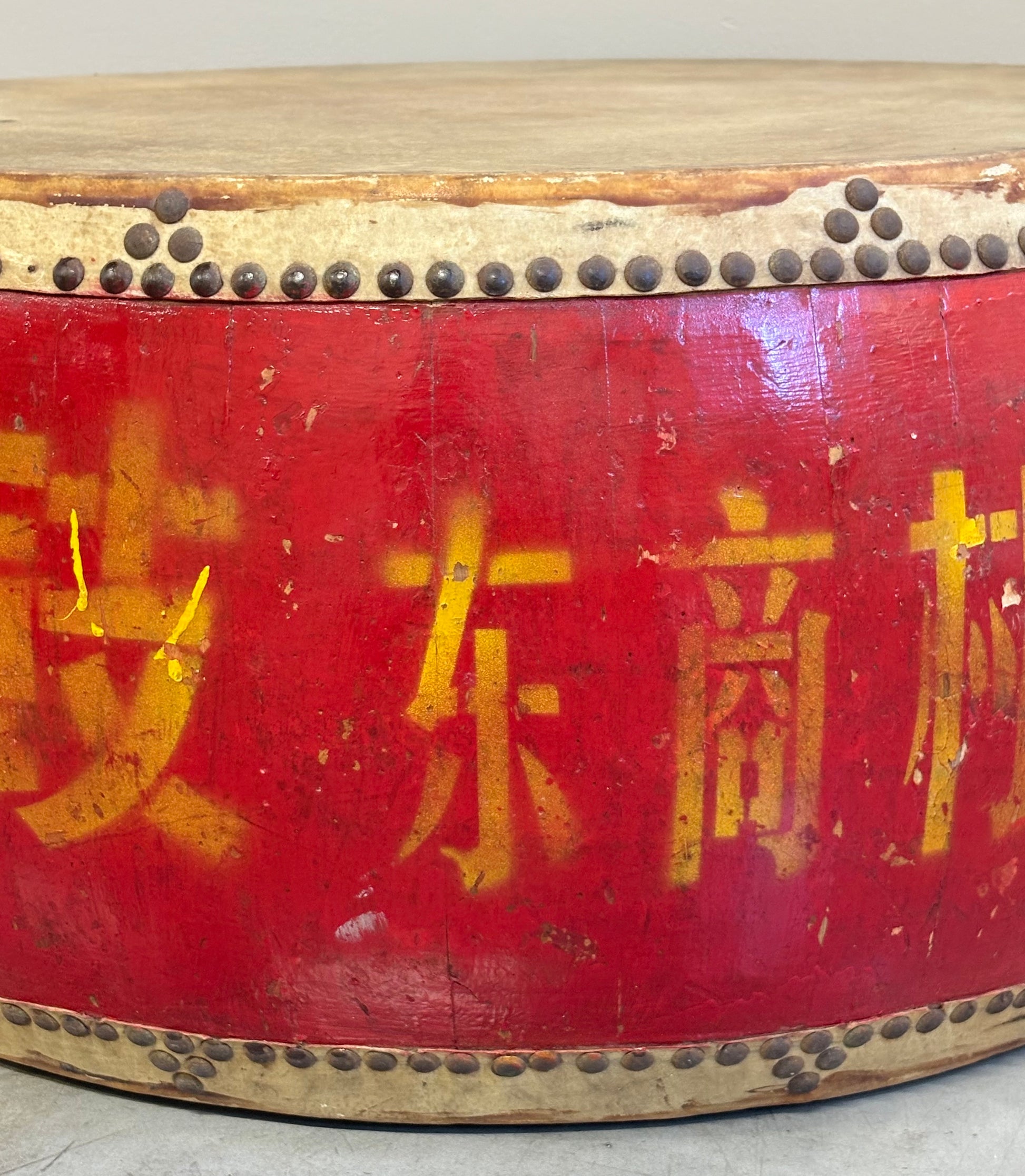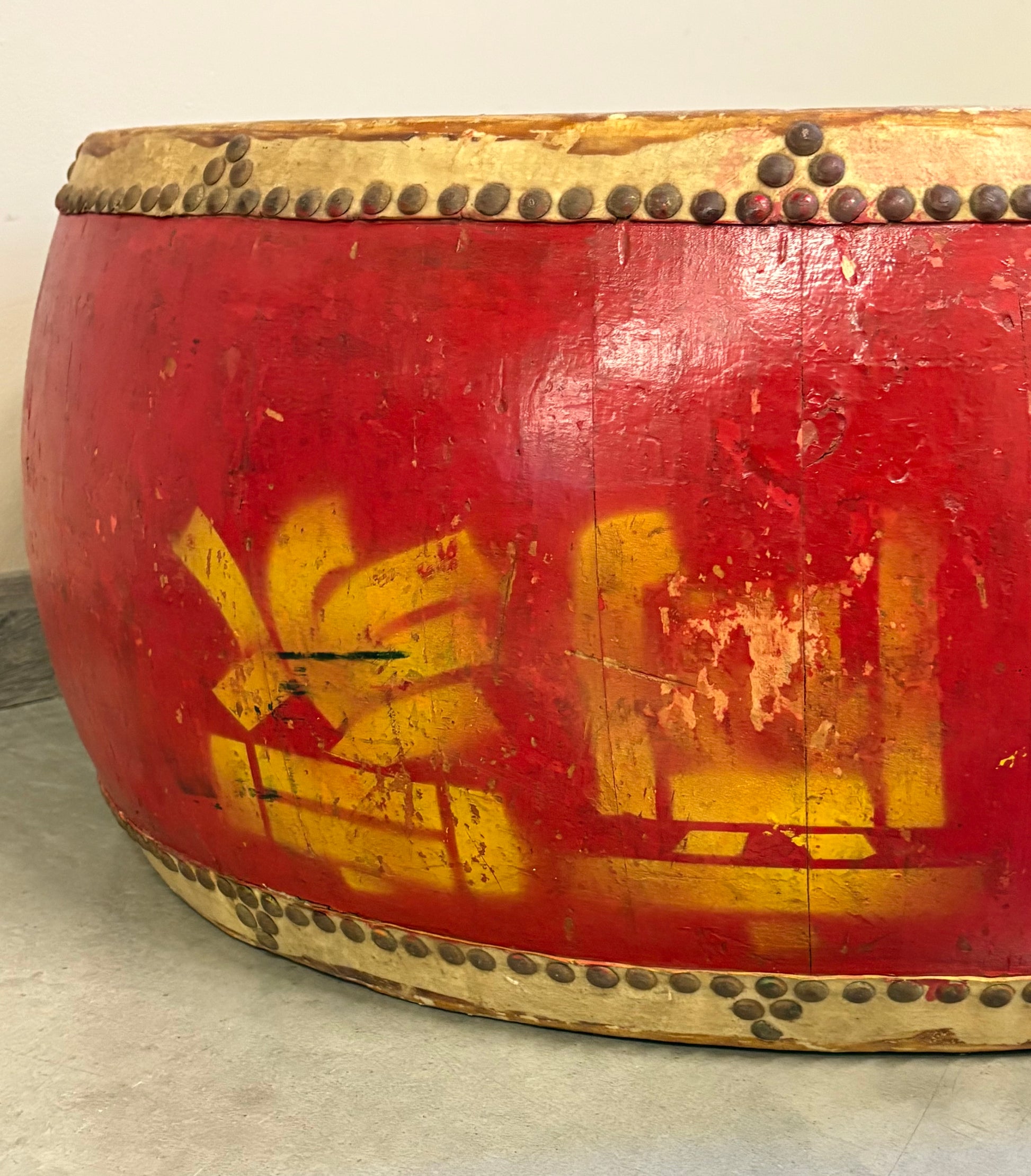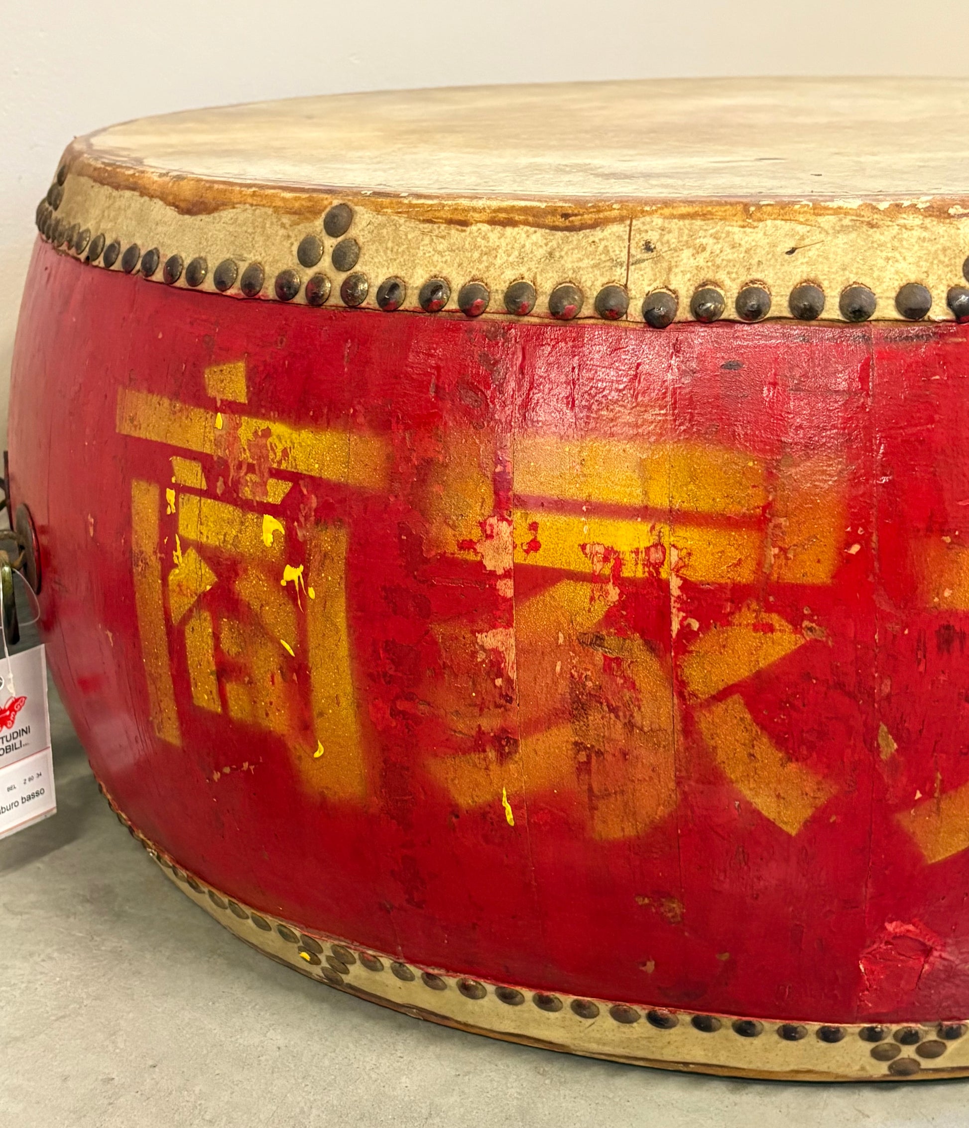 TAMBURO IN LACCA ROSSA CON IDEOGRAMMI