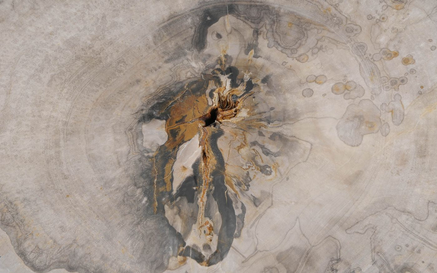Questo tavolino in legno pietrificato unisce design e storia. Il piano, ricavato da un albero vissuto 20 milioni di anni fa, mostra colori unici frutto della naturale mineralizzazione nel tempo.