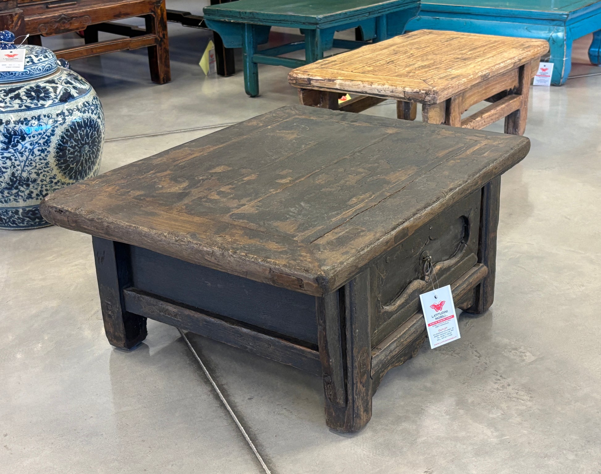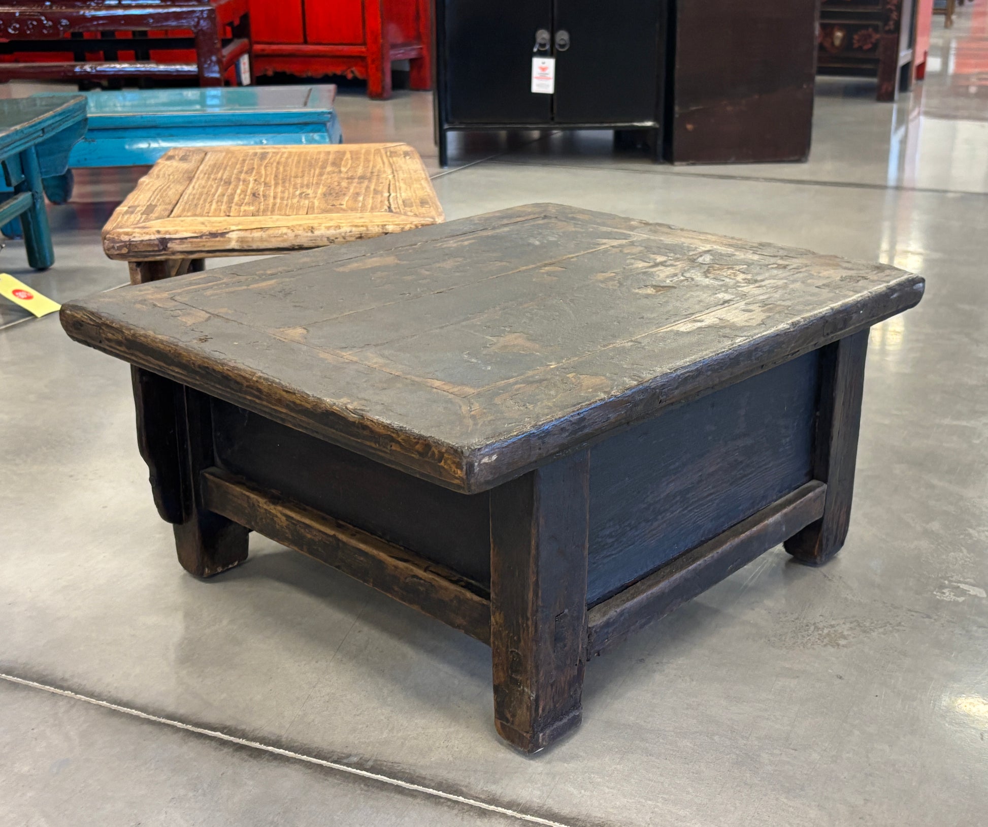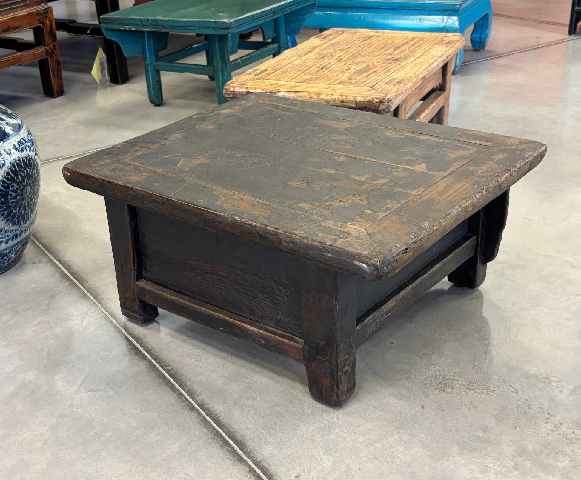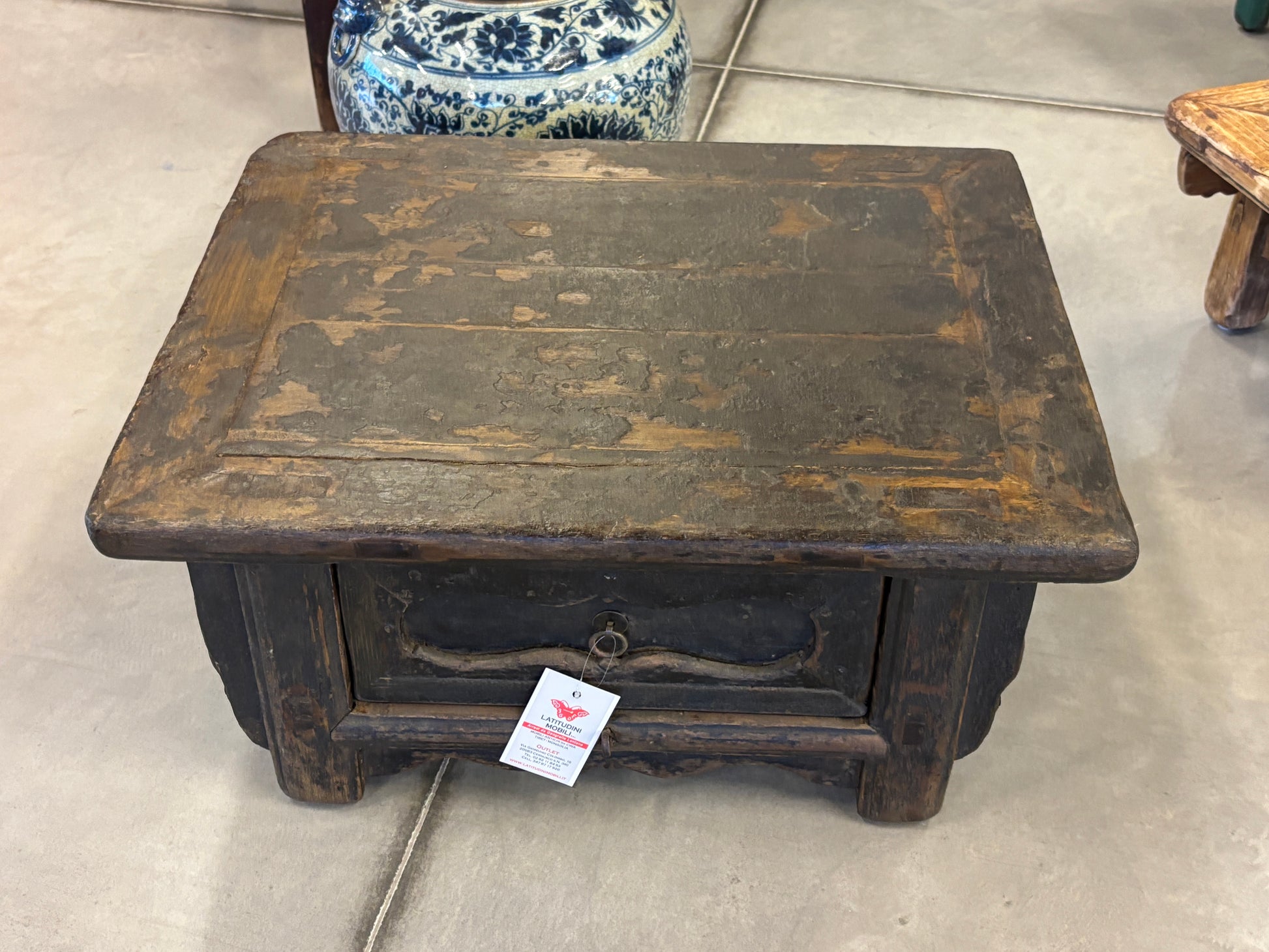 Altarino in patina in olmo cinese con caratteristico piano aggettante e fronte ad un cassetto. Provenienza regione di Pechino.