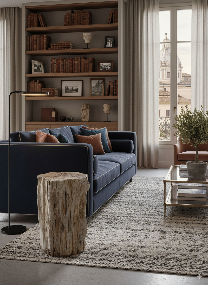 Tavolino decorativo in legno pietrificato massiccio, utilizzabile anche come sgabello o come comodino. Lavorato e lucidato per esaltarne la texture e le venature naturali, ogni pezzo è unico per colori e sfumature. Ideale come elemento d’arredo singolo o abbinato ad altri per un effetto armonioso.